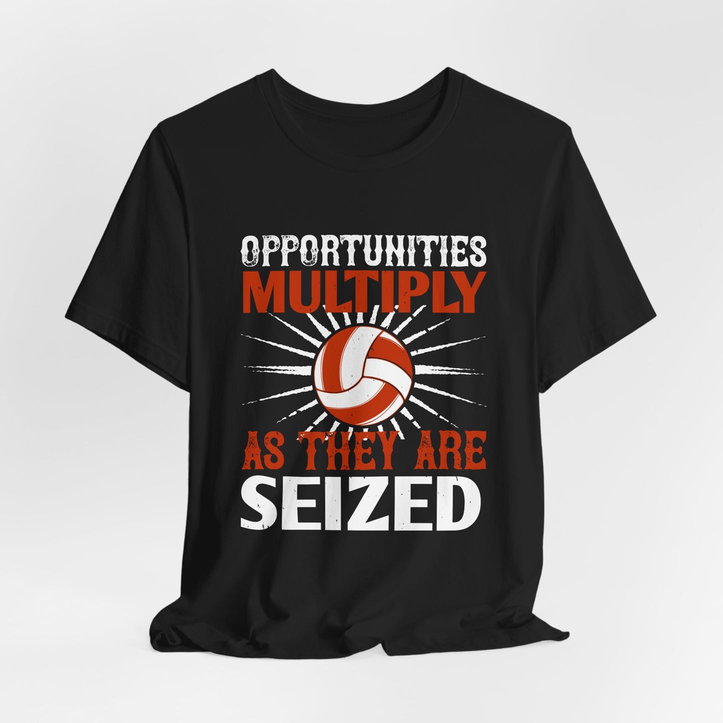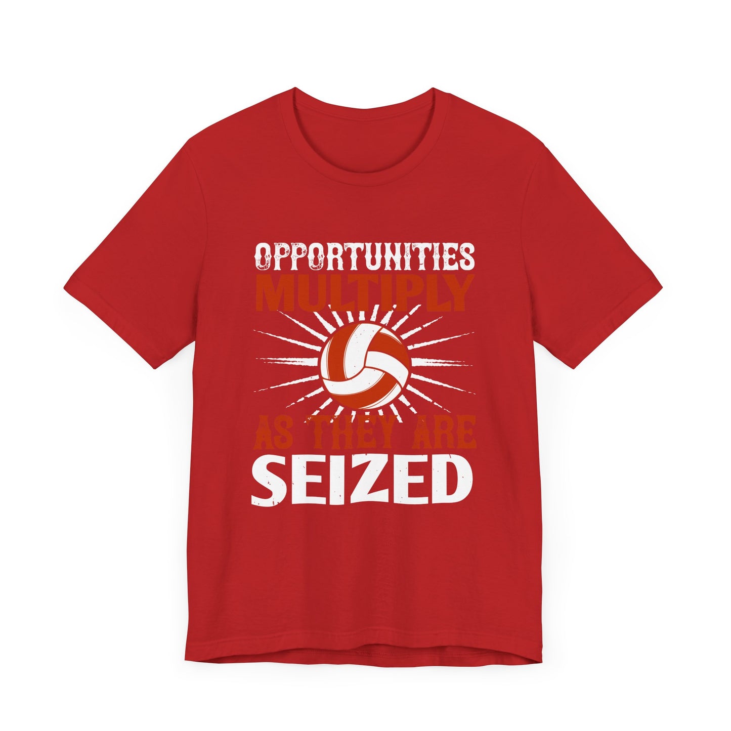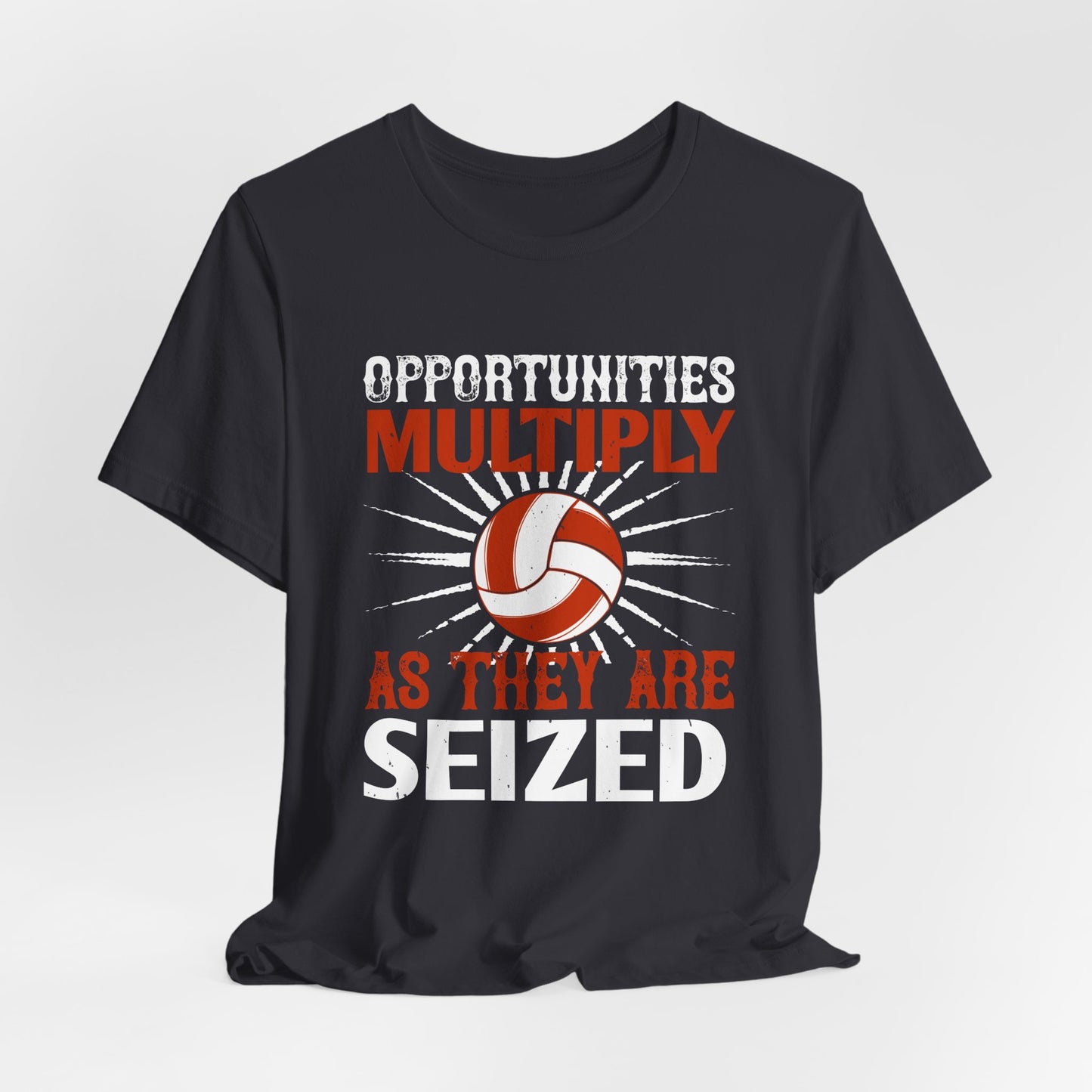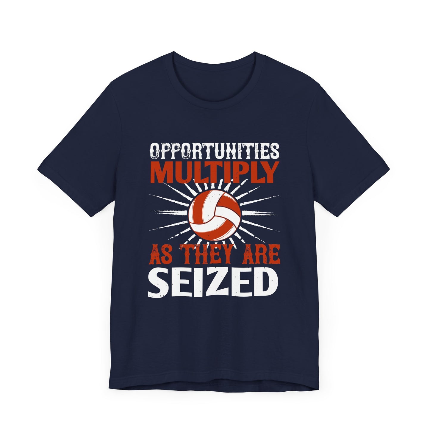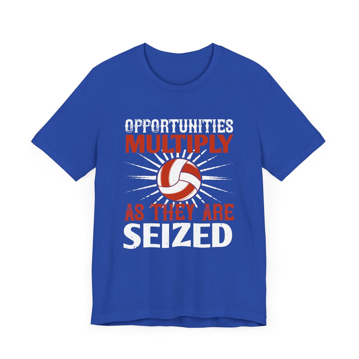 Embrace the mindset of opportunity with the "Volleyball: Opportunities Multiply as They Are Seized" Unisex Jersey Short Sleeve Tee. Wear it as a reminder that every moment on the court is a chance to excel and grow!