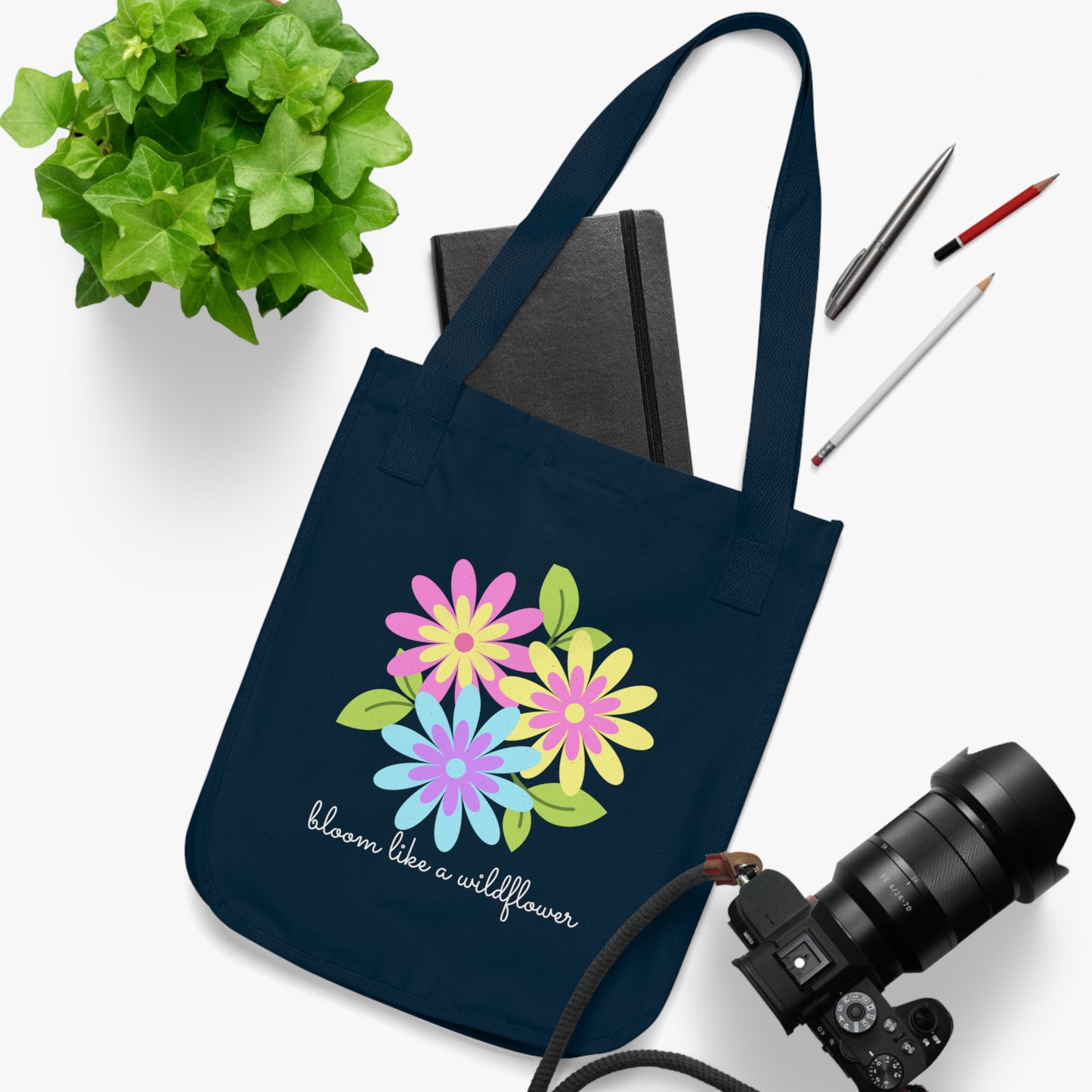 - Vibrant Design: Featuring the inspiring phrase "Bloom Like A Wildflower" surrounded by delicate flowers, this tote brings a touch of nature wherever you go.
