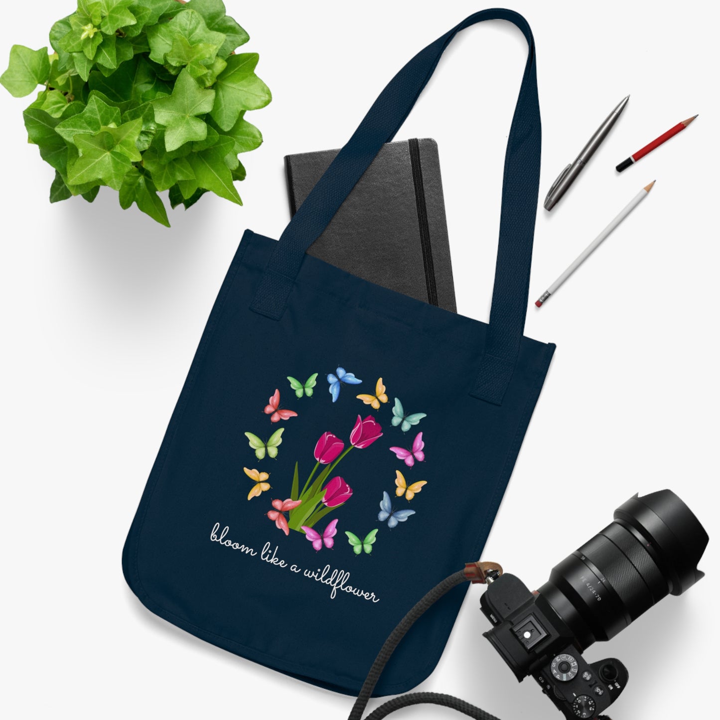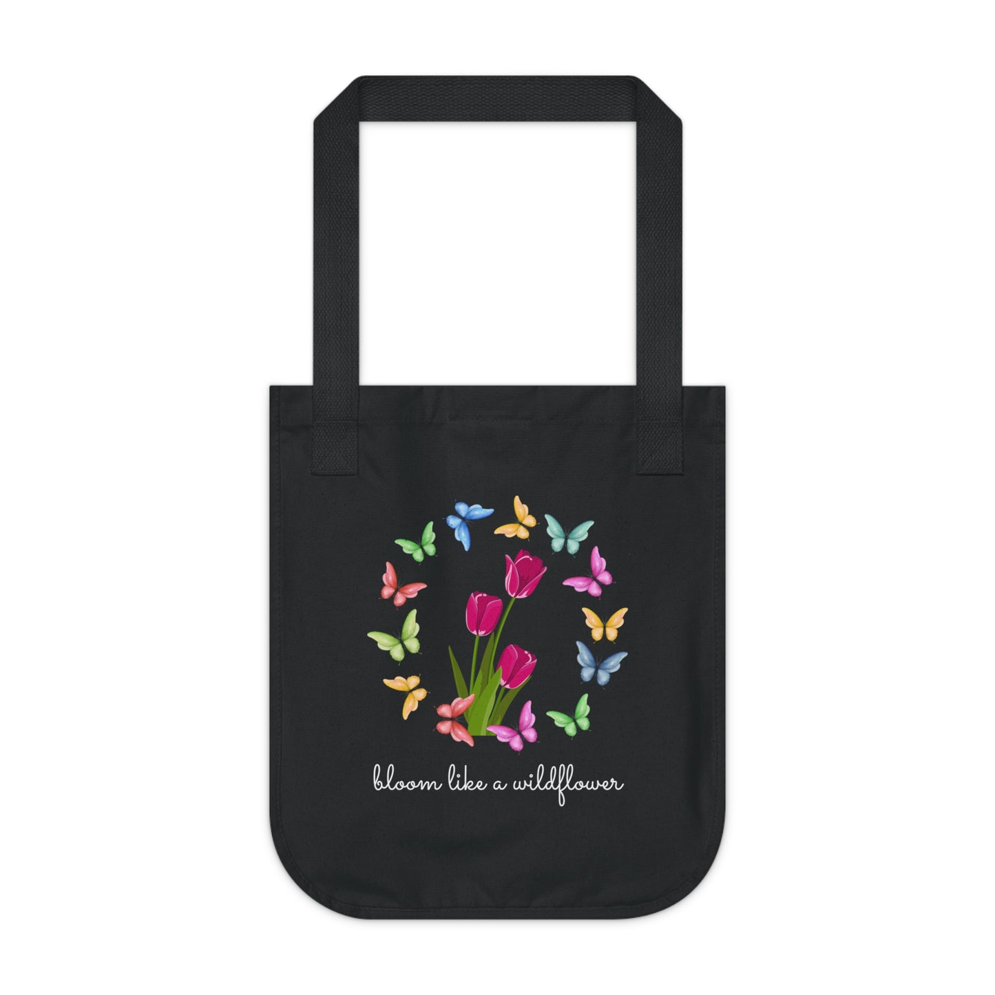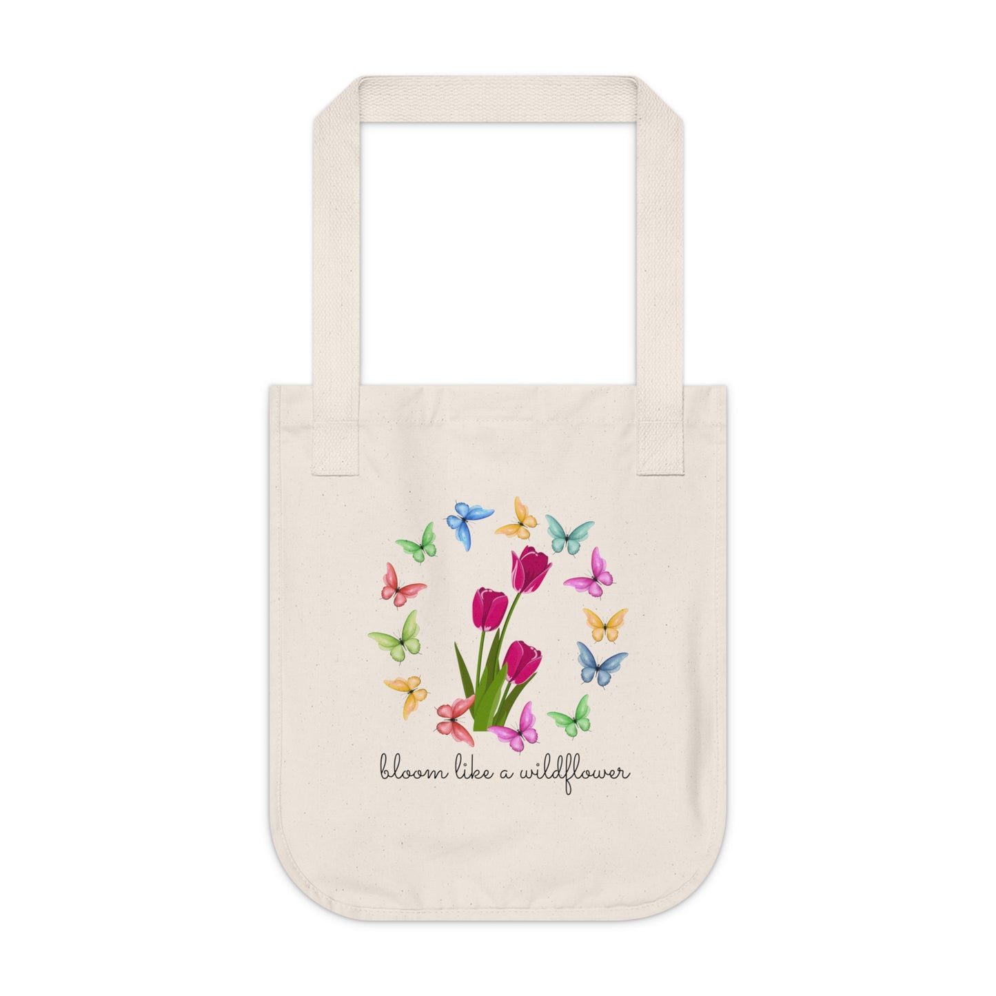 Butterfly & Flowers - Organic Canvas Tote Bag - 10161