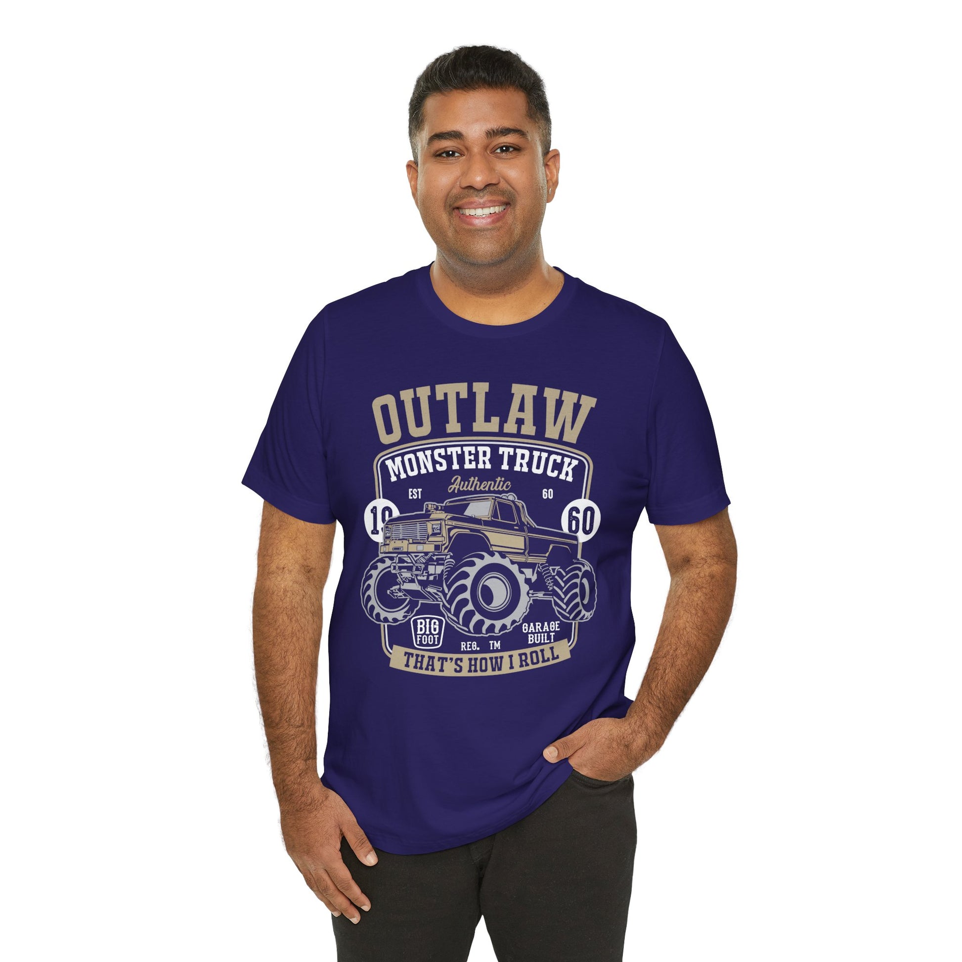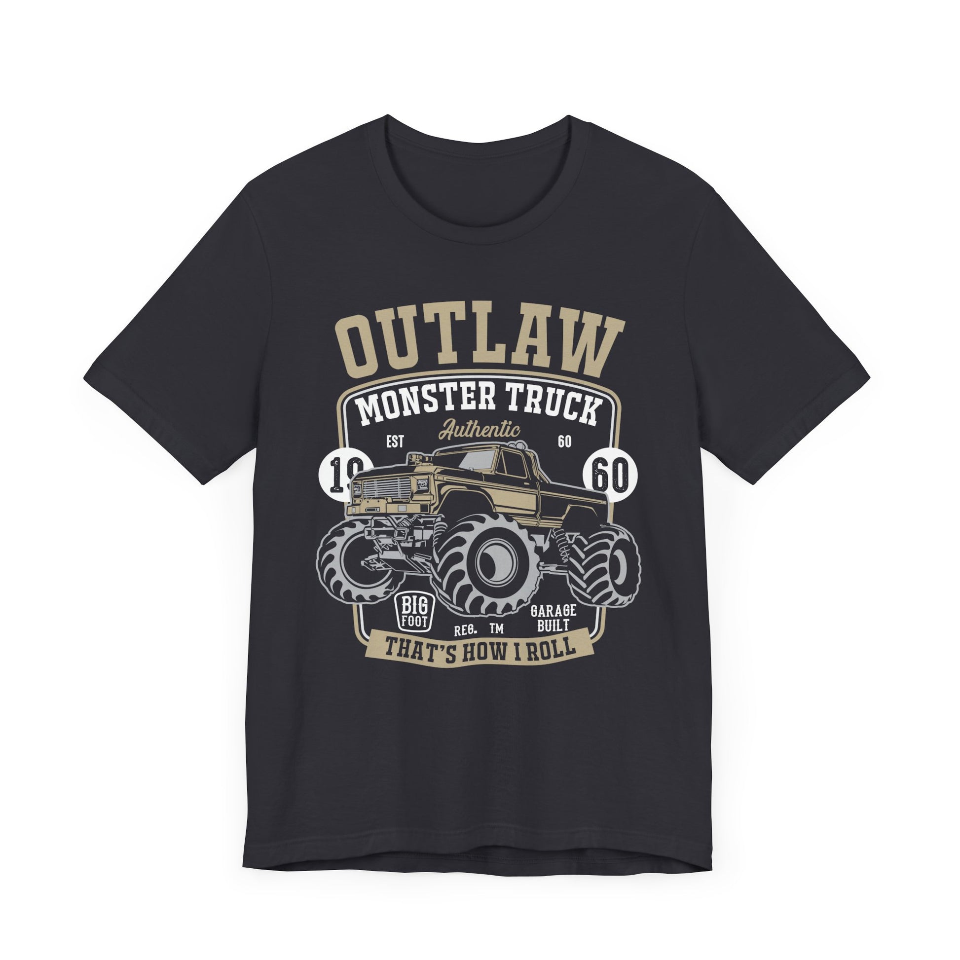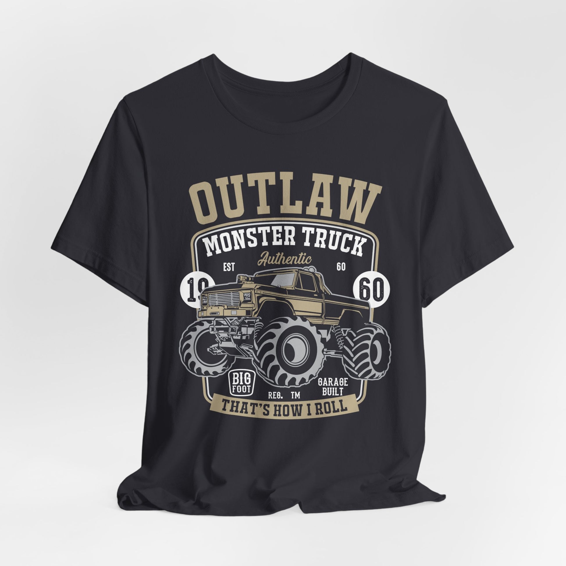 Rev up your style with the Outlaw, Monster Truck, 1960, That's How I Roll tee, made for those who live large and fearless! Whether you’re a monster truck fan or someone who loves to break boundaries, this ultra-comfortable, unisex tee is perfect for making a bold statement. Featuring a rugged design inspired by the iconic 1960 monster truck era, this shirt is all about power, performance, and the rebellious spirit of going off the beaten path.