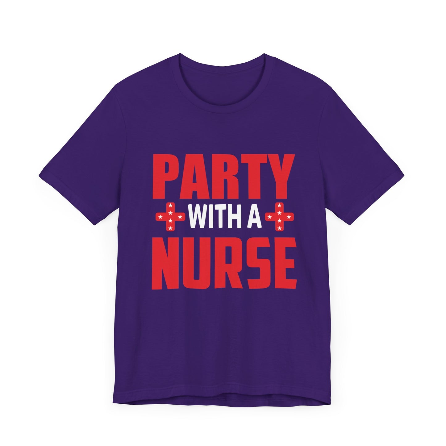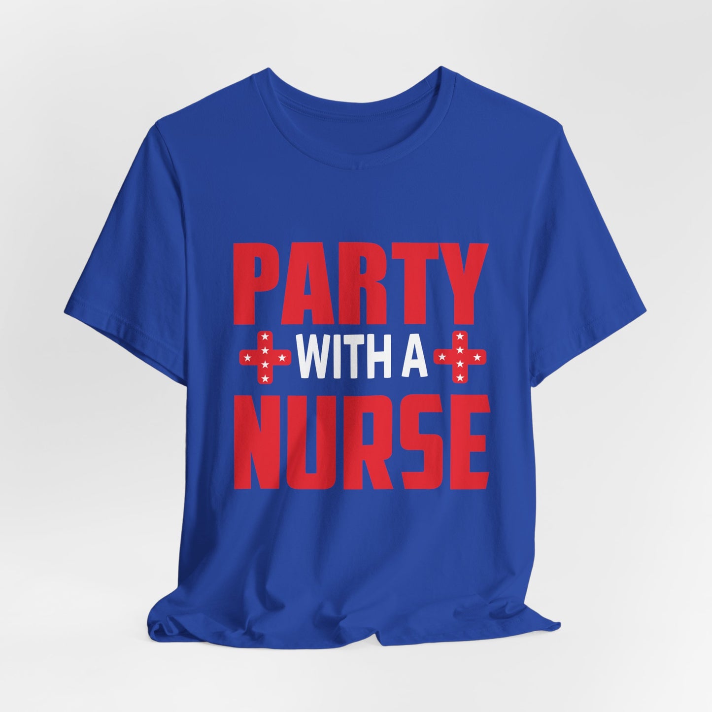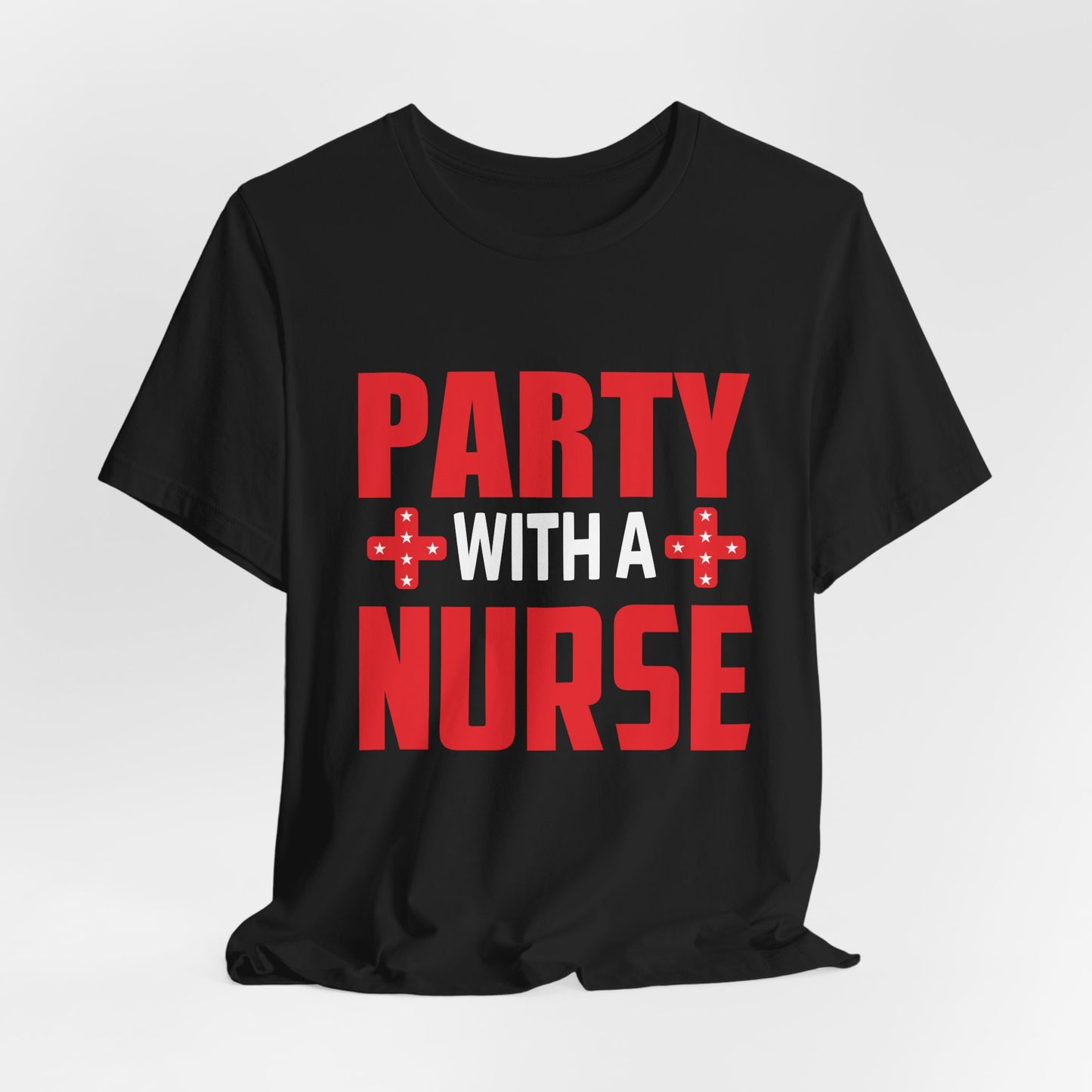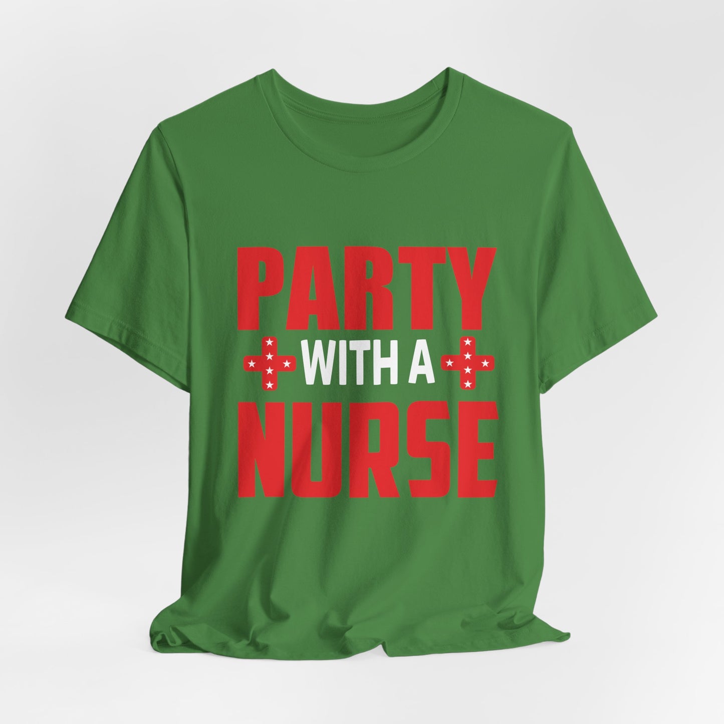 Celebrate your dual passions for nursing and social fun with our "Party With A Nurse" tee. Whether you're treating yourself or gifting it to a fellow nurse, this t-shirt is a stylish and festive way to show off your personality. Get yours today and party in style!