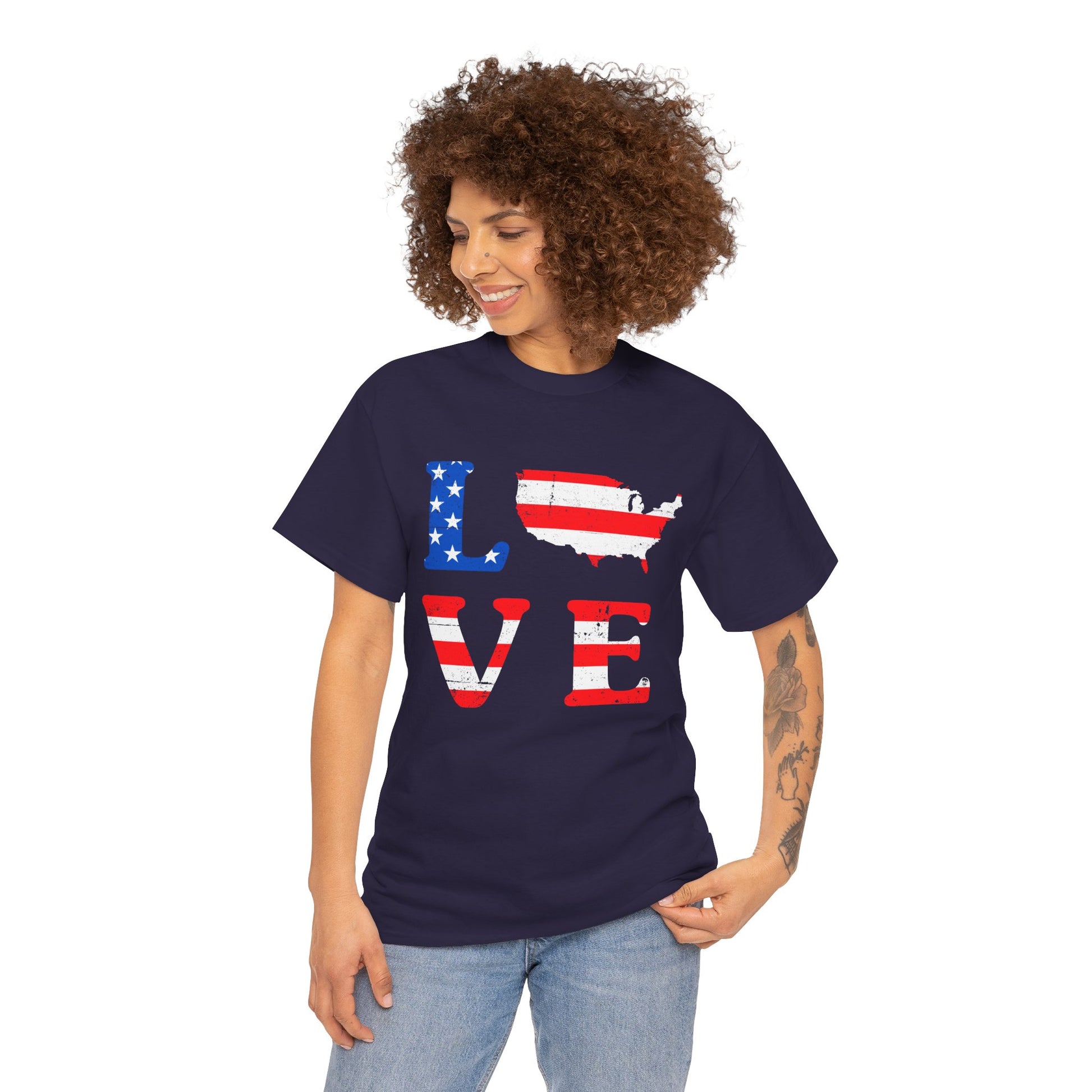 Patriotic Love Tee | Unisex Heavy Cotton T-Shirt, USA Love Shirt, 4th of July Gift, Casual Wear, Independence Day Apparel - 13696
