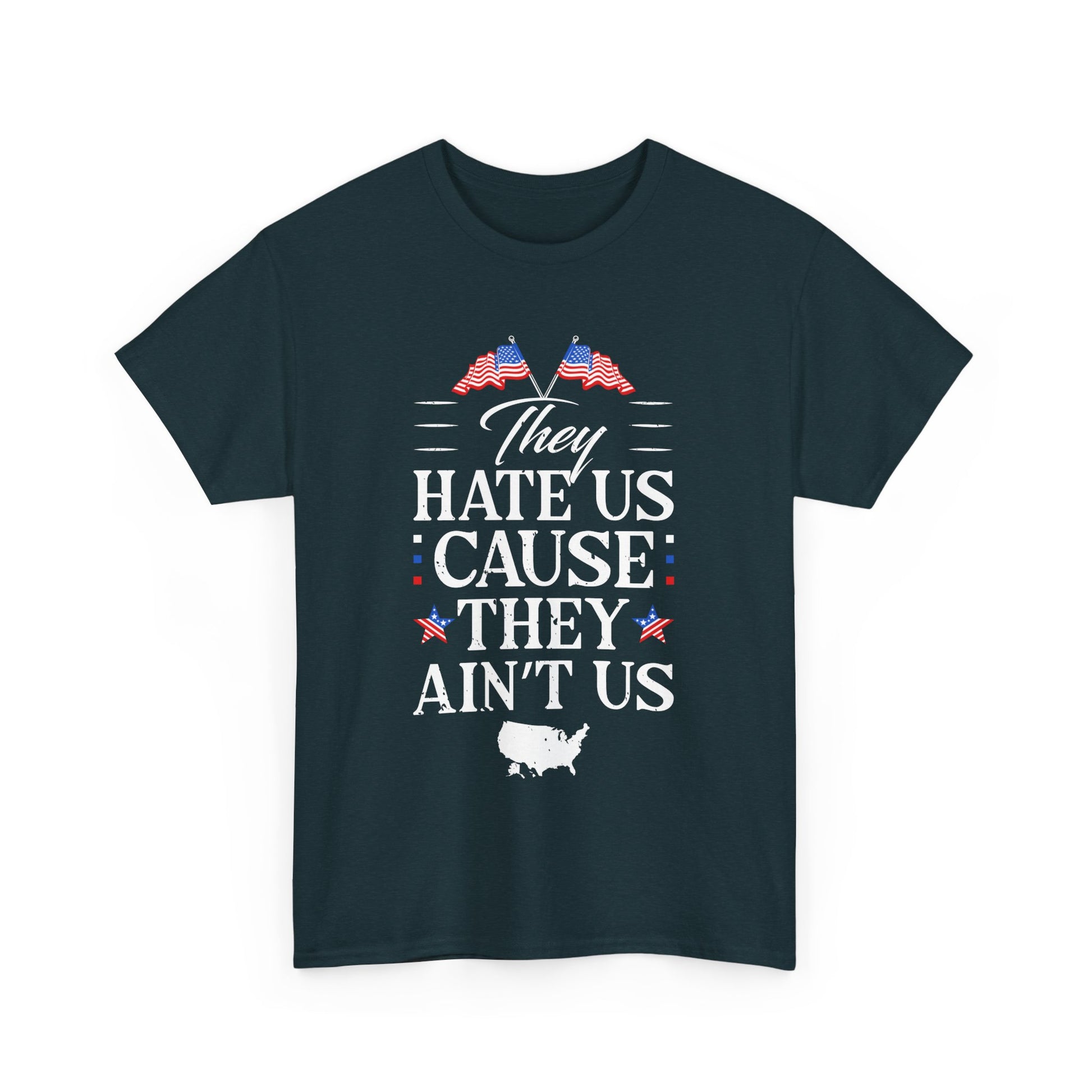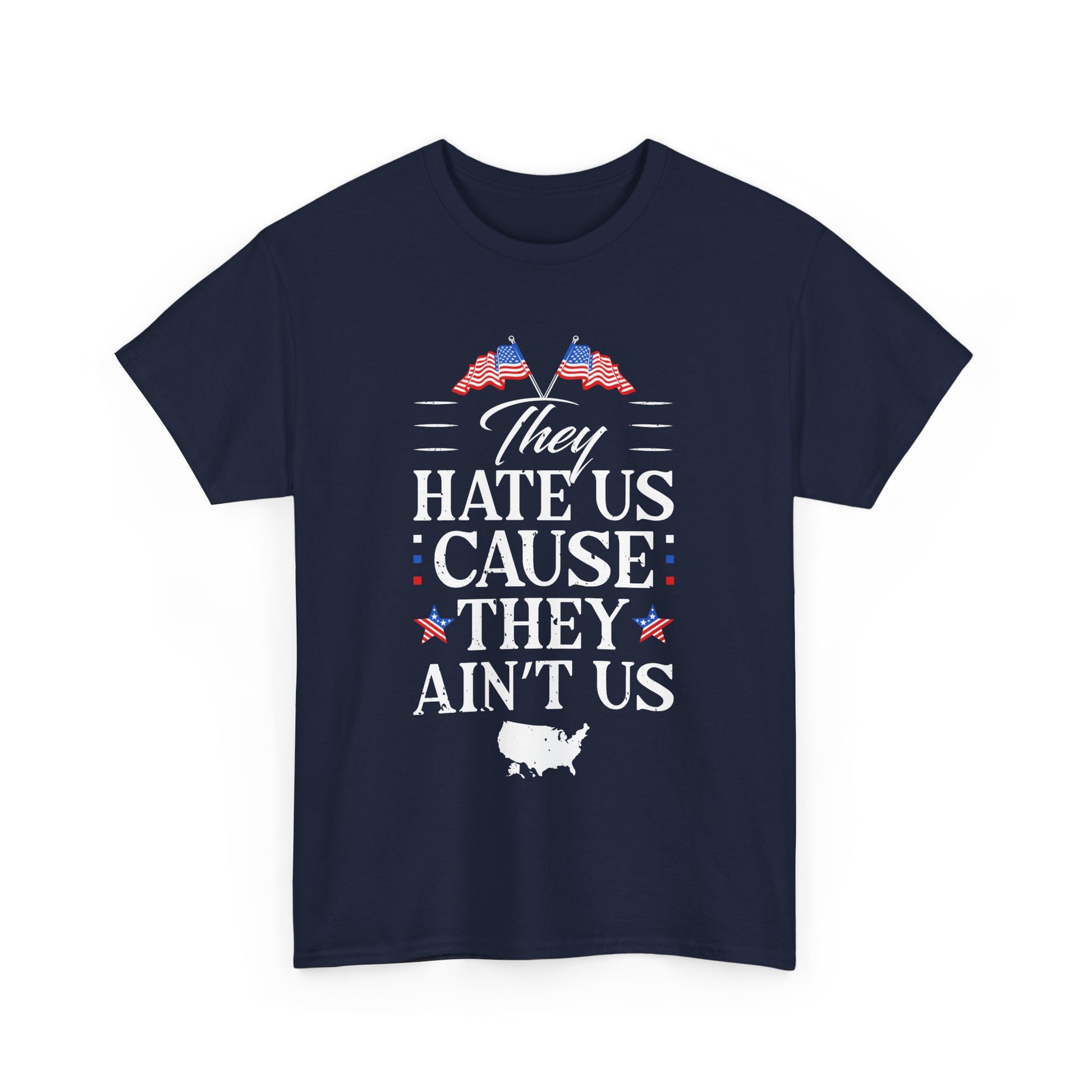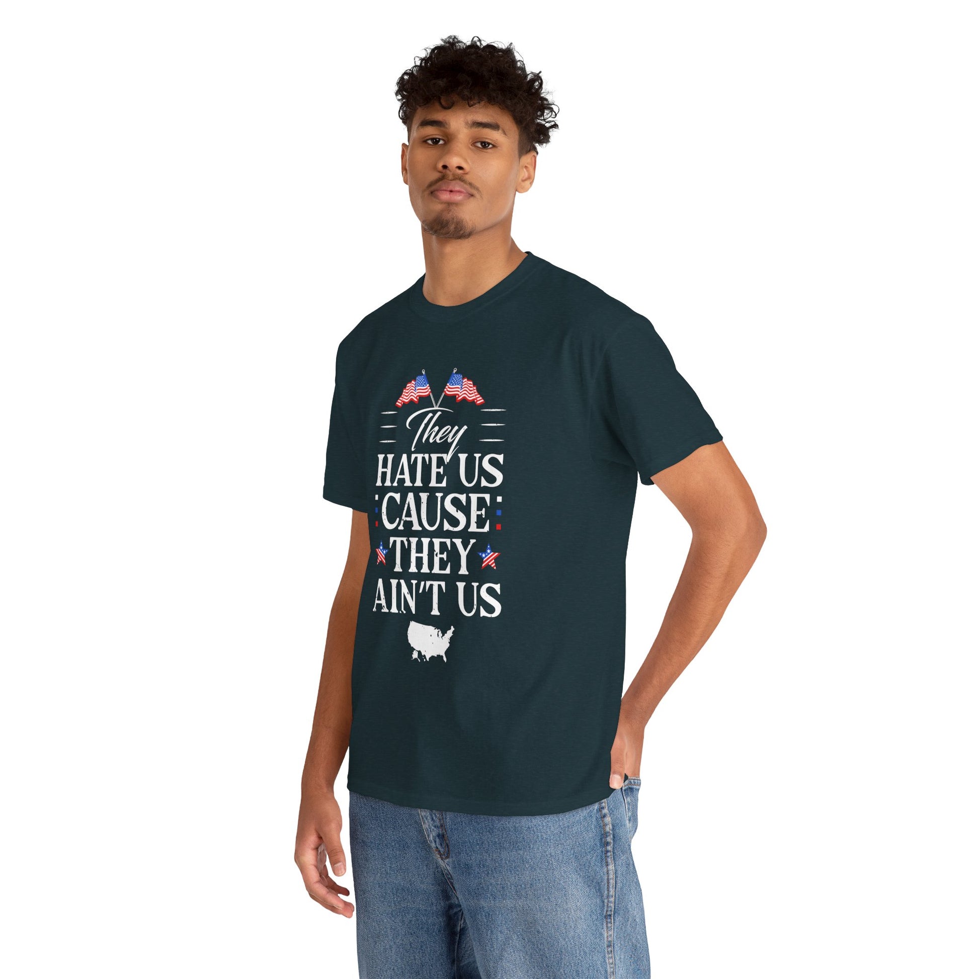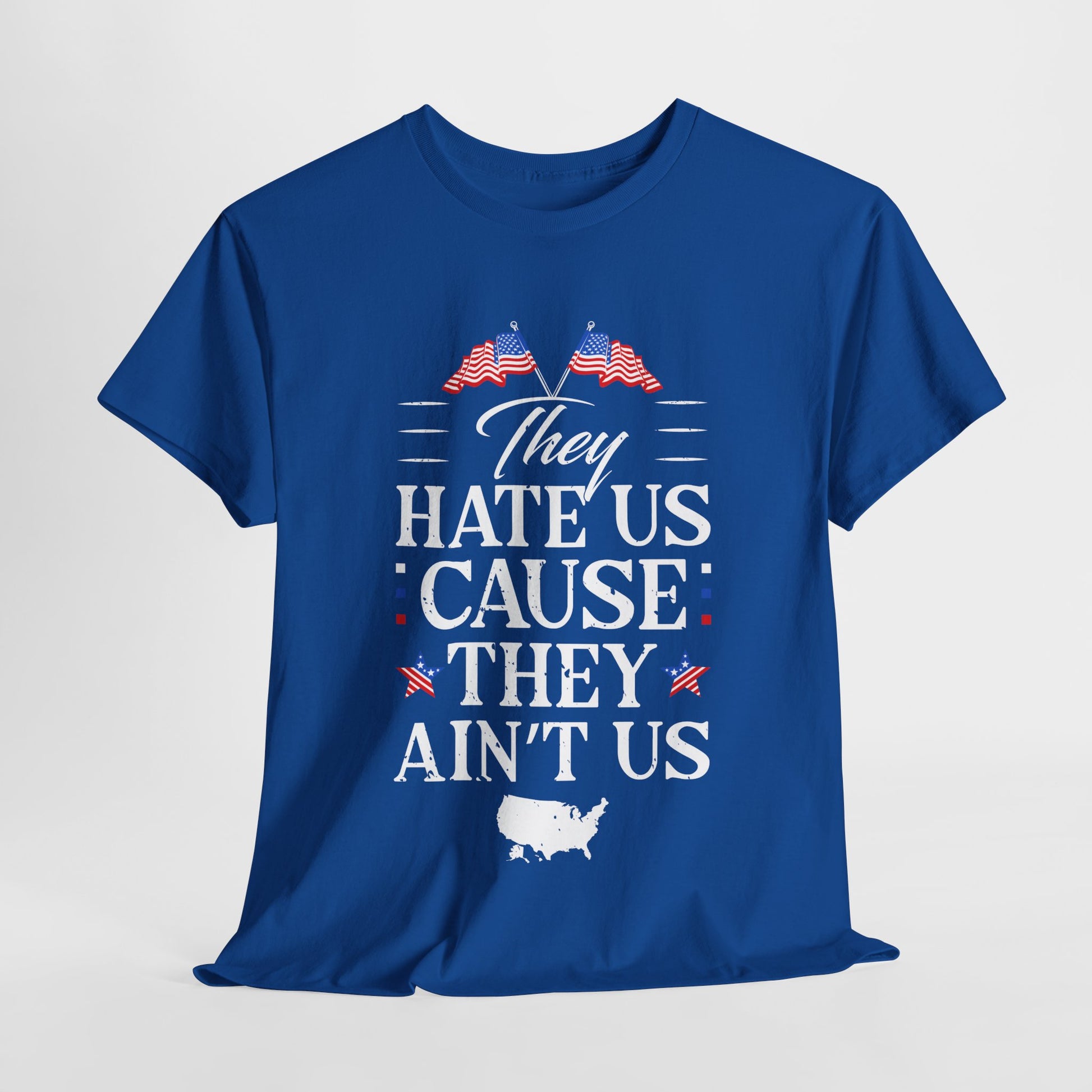 Patriotic Unisex Heavy Cotton Tee - 'They Hate Us Cause They Ain't Us' - Gift for Freedom Lovers, Casual Wear, Independence Day - 13651