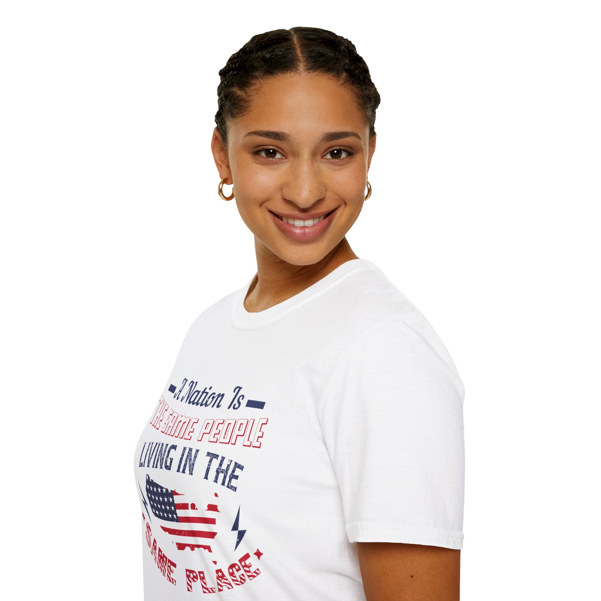 Patriotic Unisex T-Shirt - 'A Nation Is The Same People Living In The Same Place' - Ideal for Holidays, Celebrations, and Everyday Wear - 13791