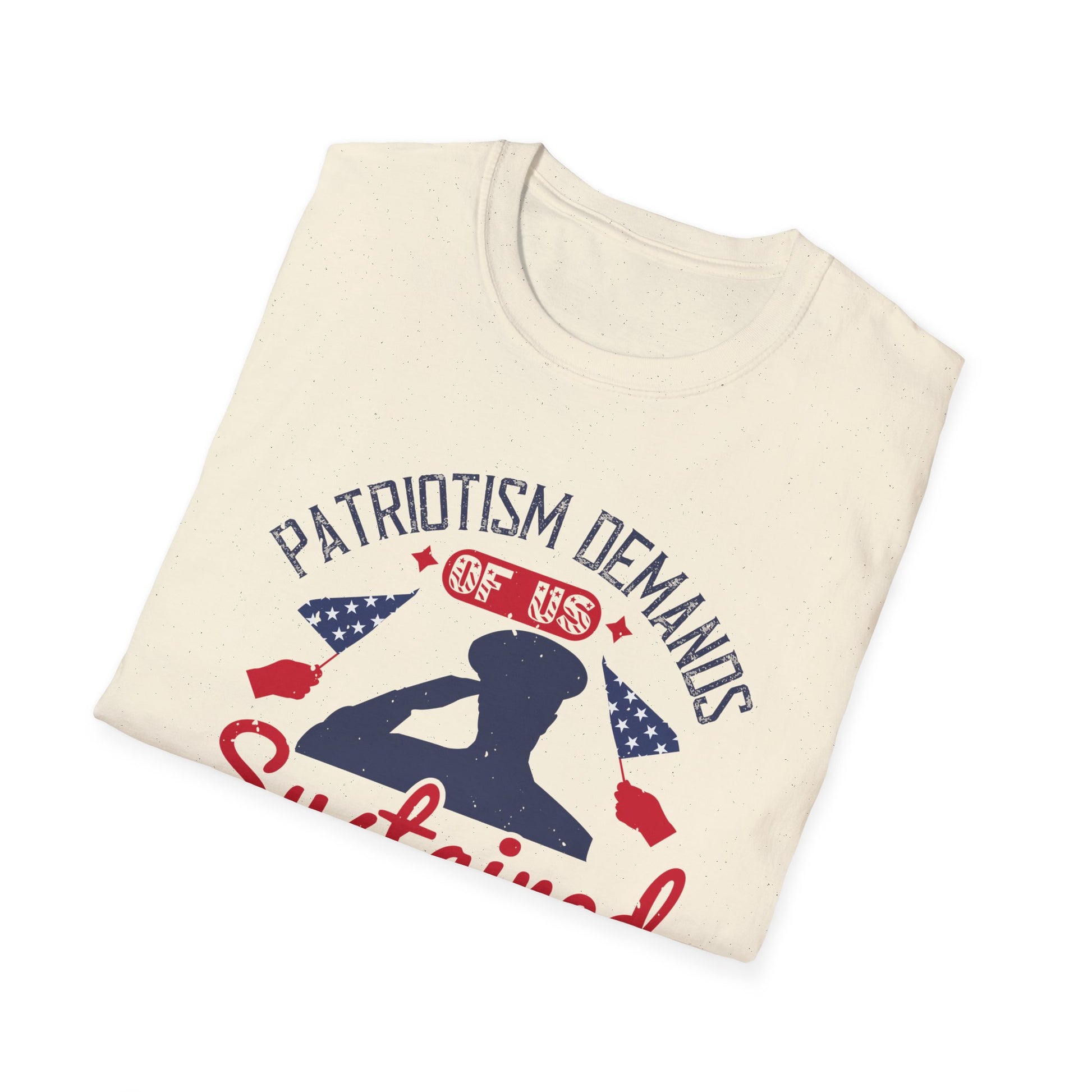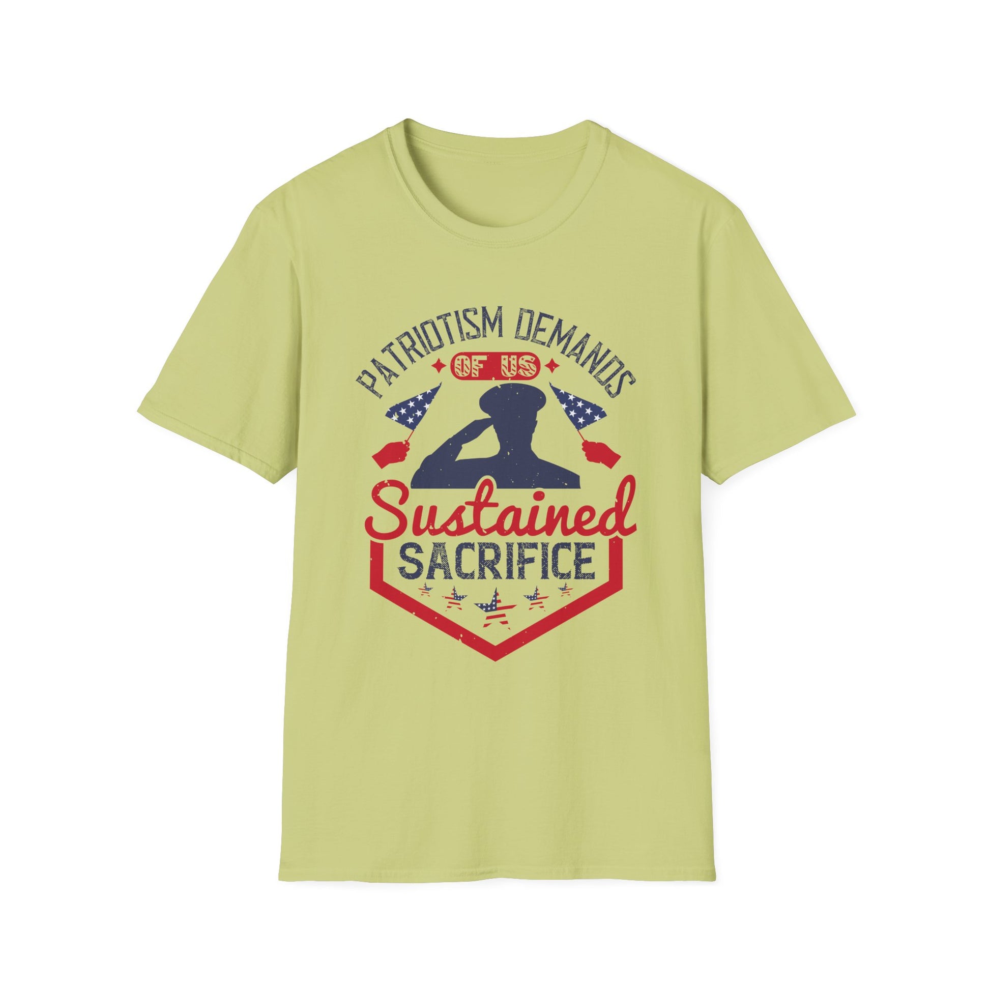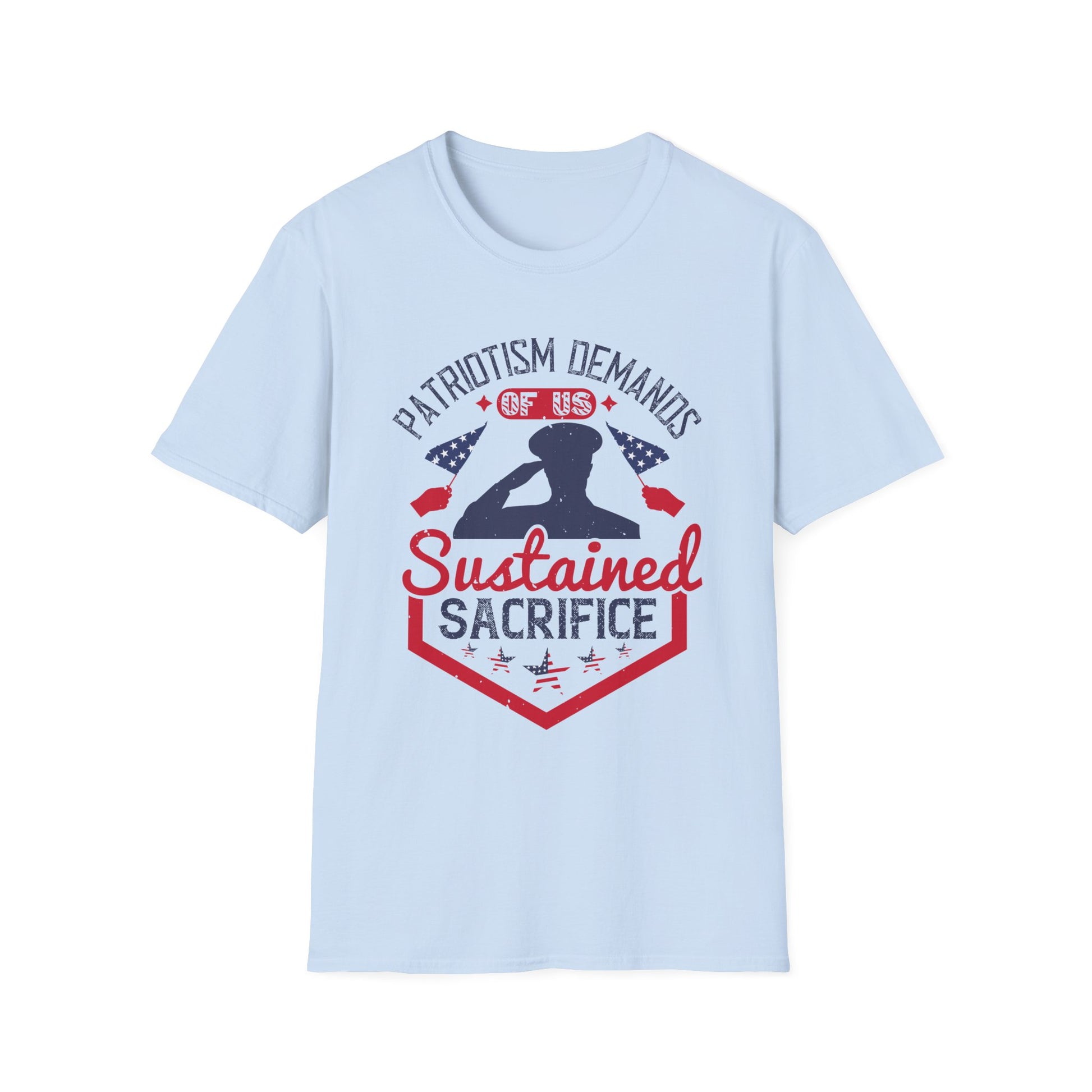 Wear your values with pride in our "Patriotism Demands of Us Sustained Sacrifice" Unisex Softstyle T-Shirt. This thoughtfully designed tee honors the quiet strength and enduring spirit of those who serve and stand for something greater than themselves. Made from soft, lightweight fabric for everyday comfort, it’s perfect for veterans, patriots, and anyone who believes freedom isn’t free. Ideal for Memorial Day, Veterans Day, or as a meaningful gift, this shirt is a subtle yet powerful tribute to the true cost of liberty.