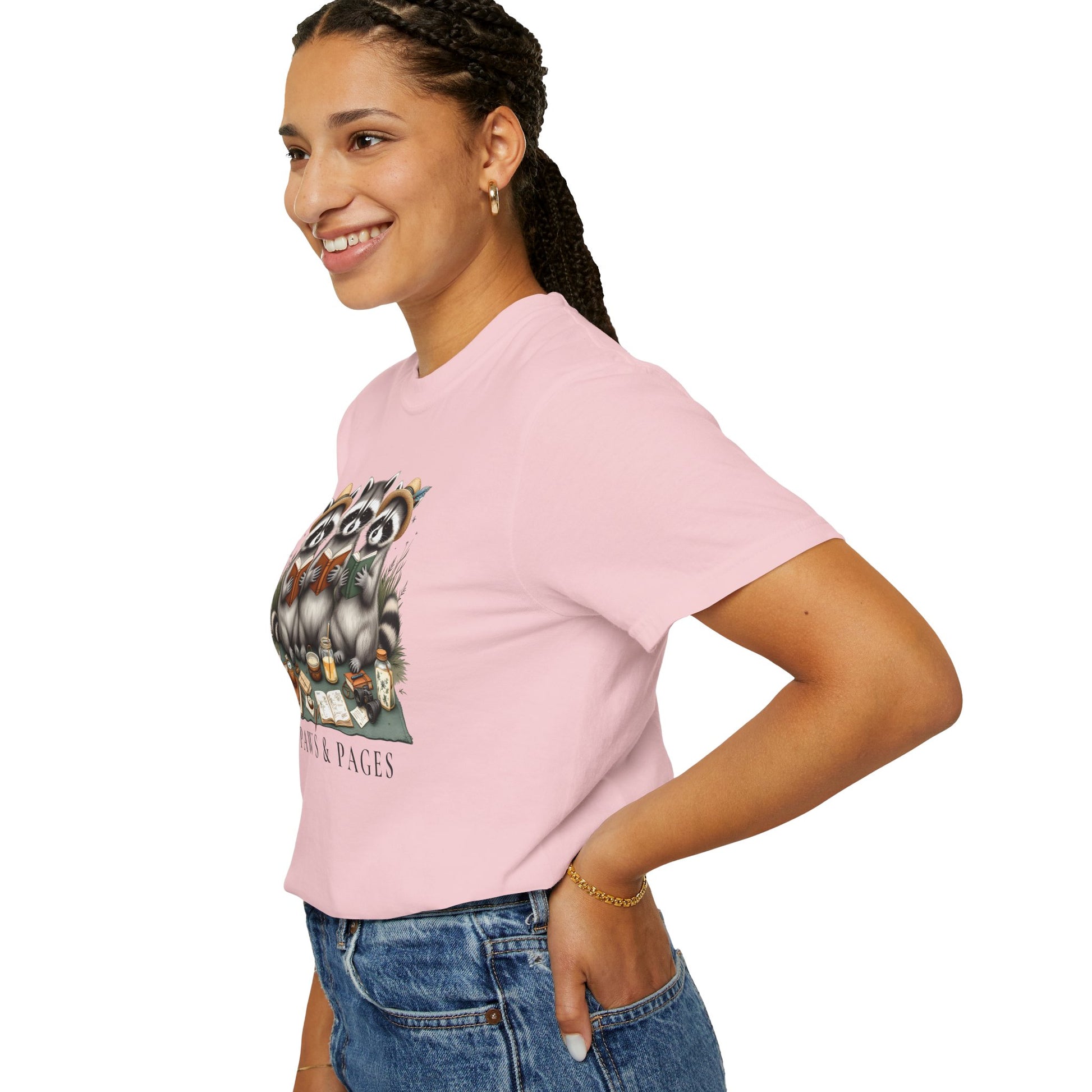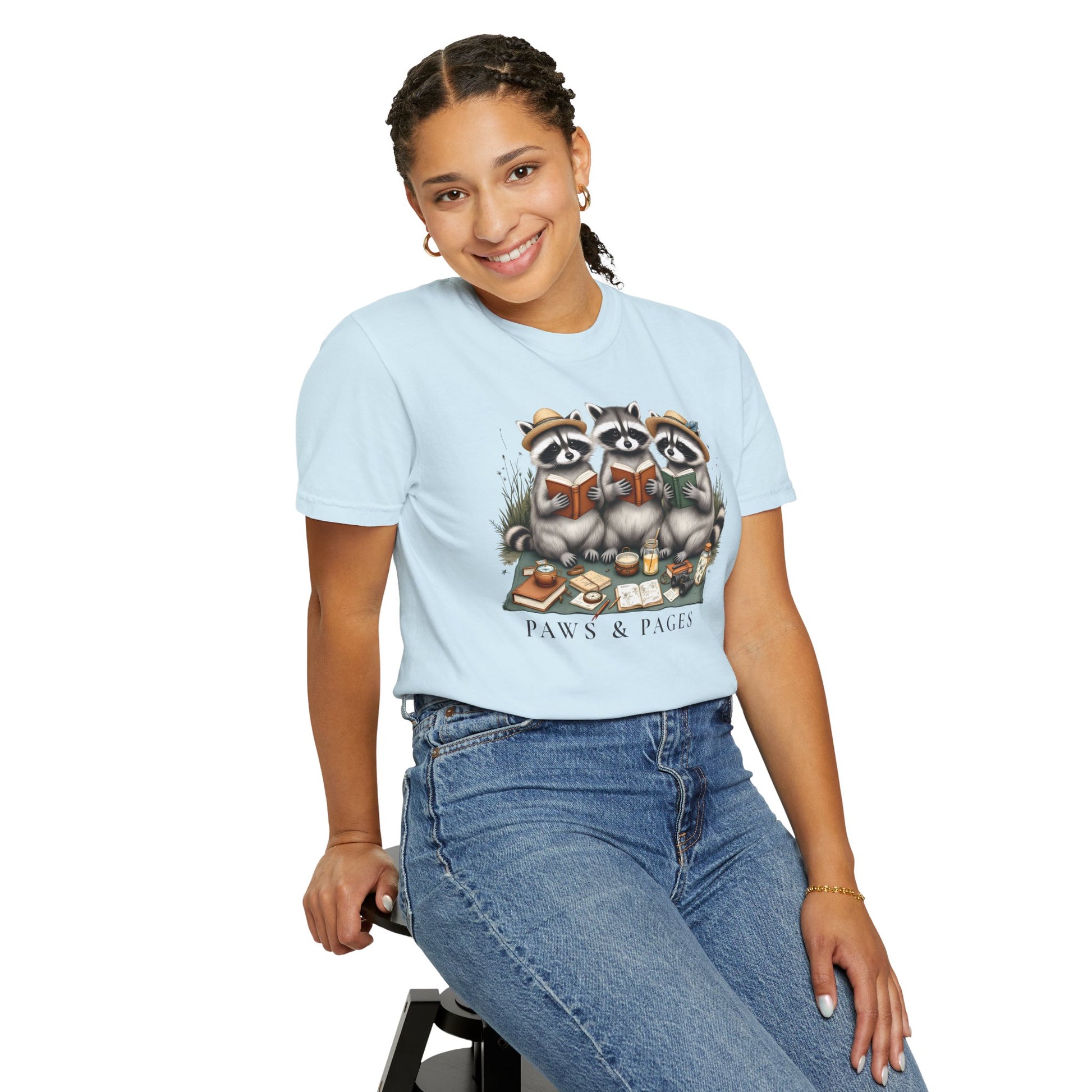 Paws & Pages Raccoon Reading T-Shirt – Cute Book Lover Graphic Tee, Cozy Reader Gift Shirt - 14816