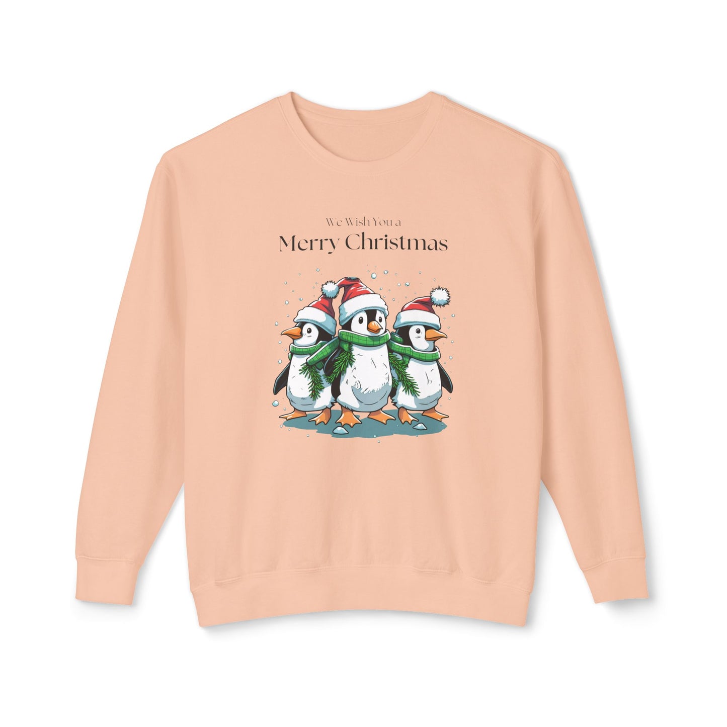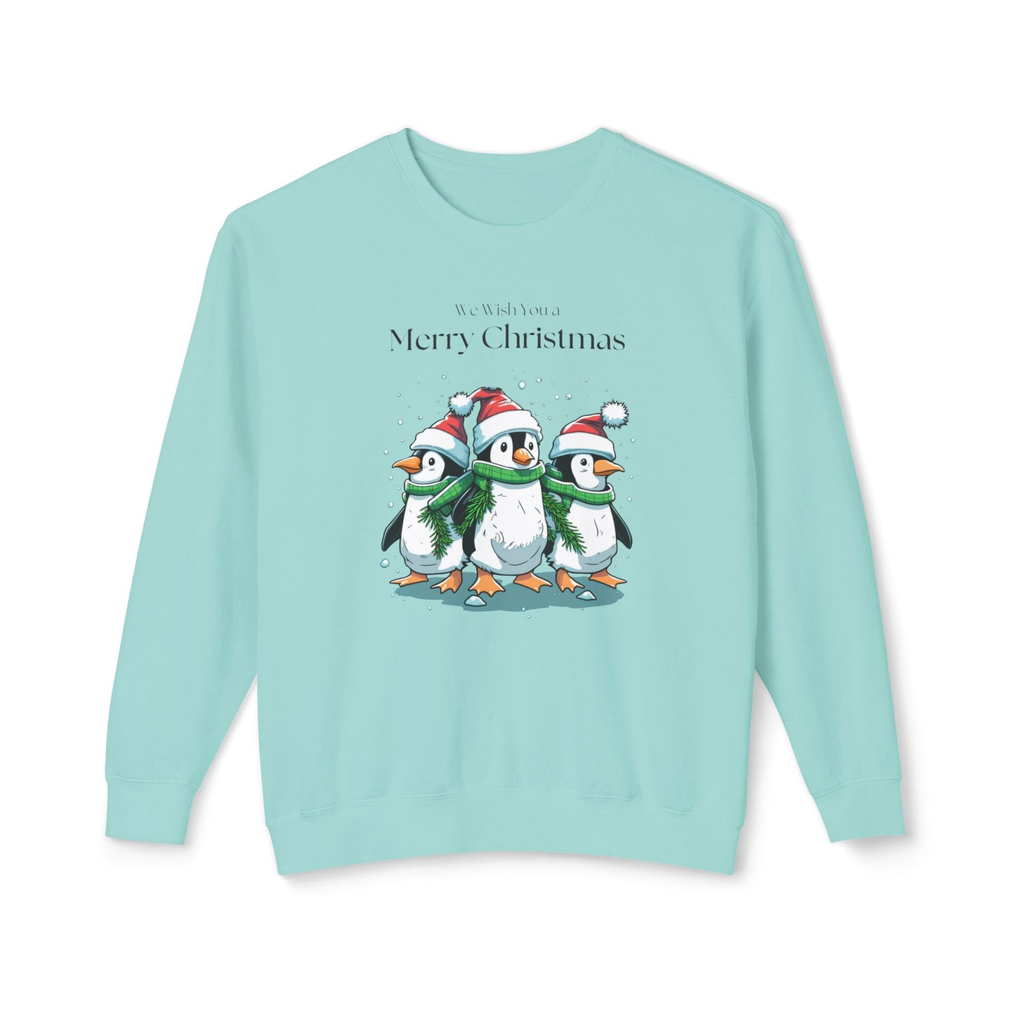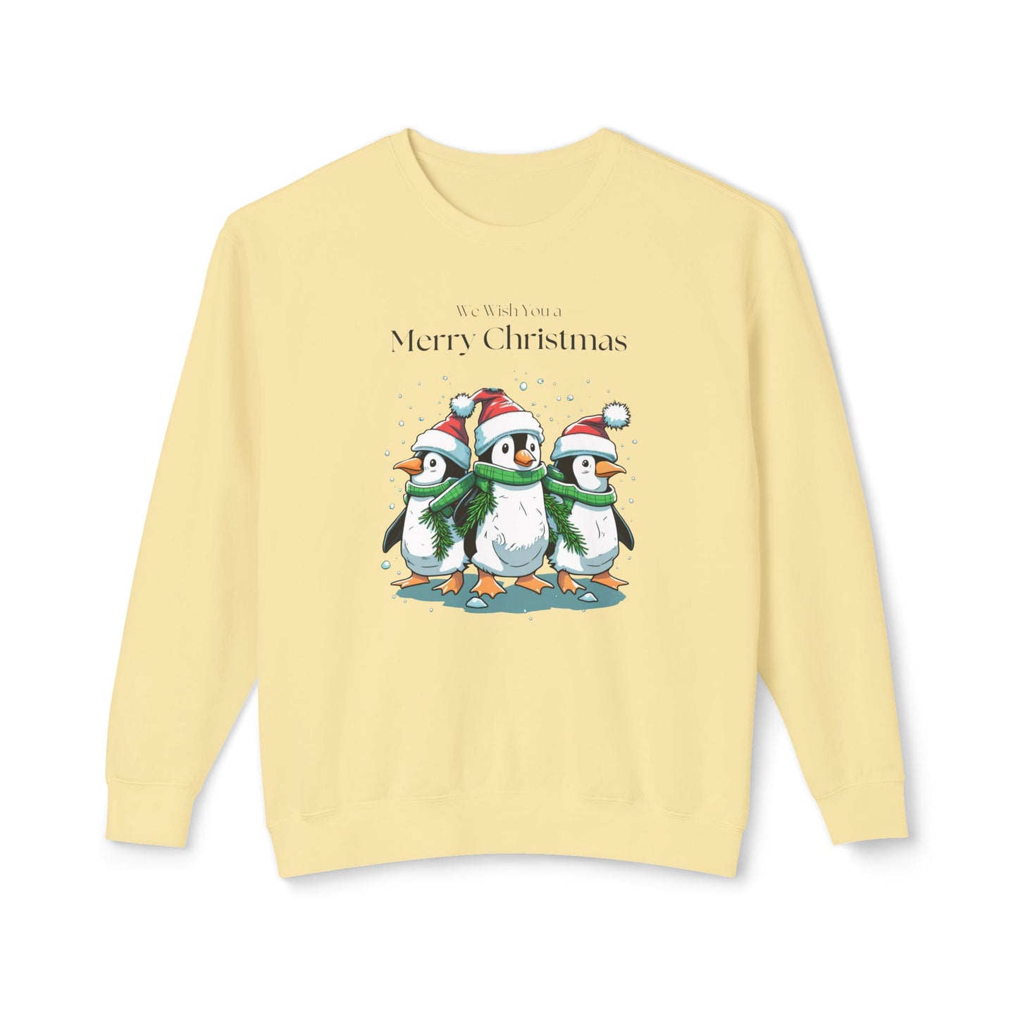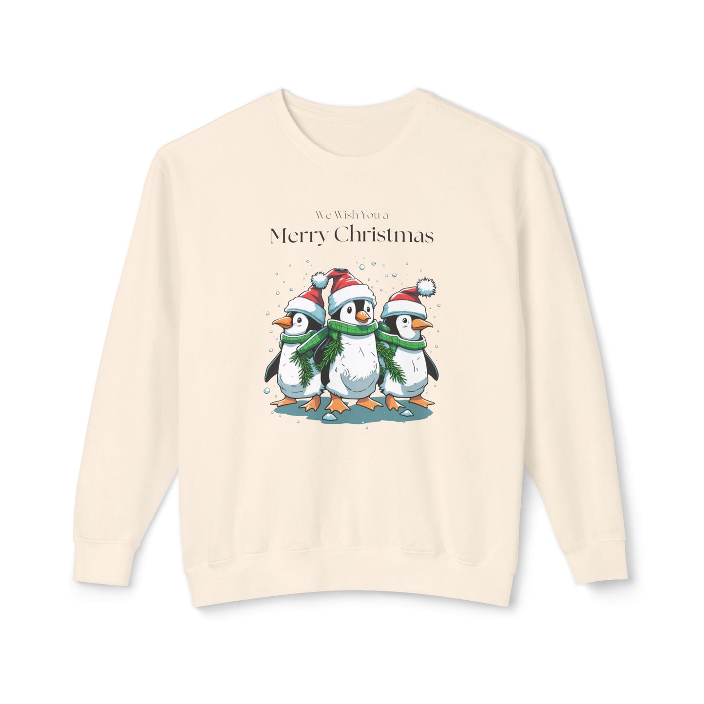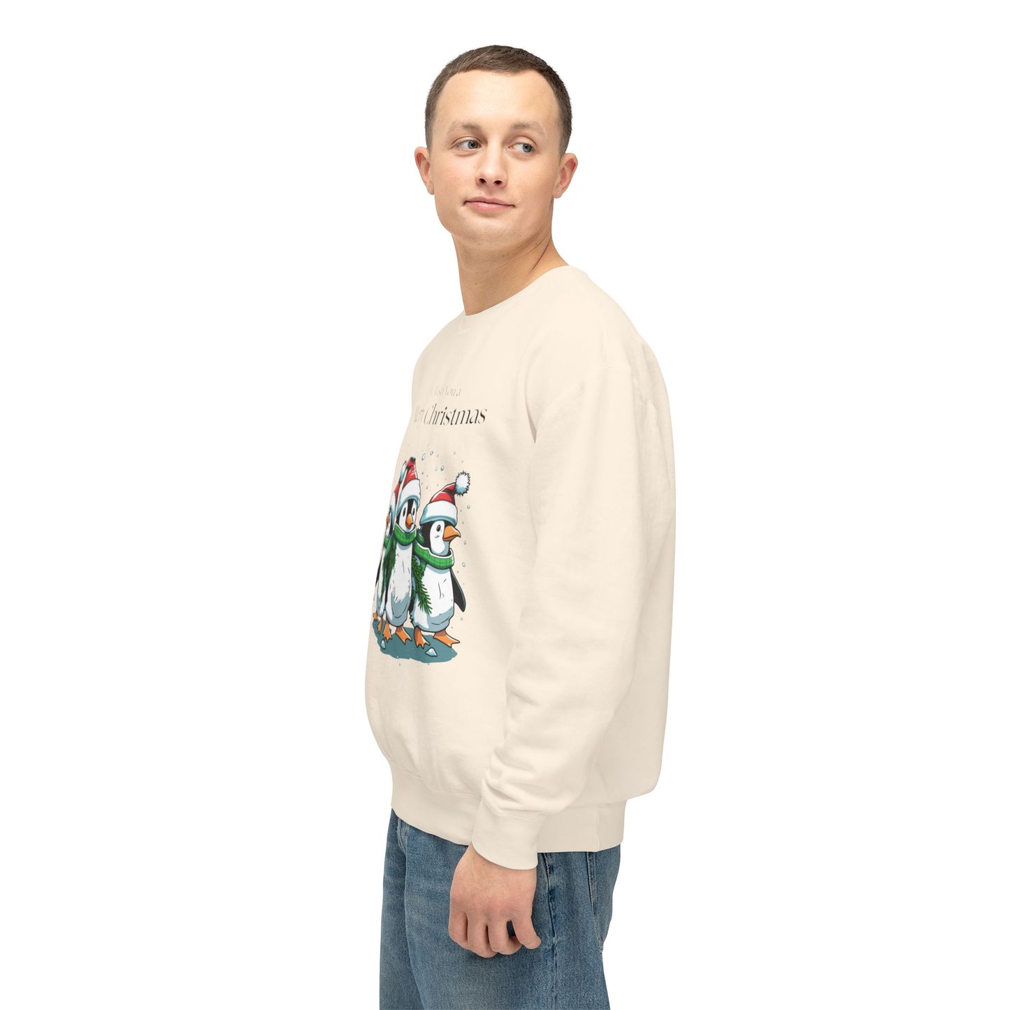 Penguins, We Wish You a Merry Christmas - Unisex Lightweight Crewneck Sweatshirt - 10173