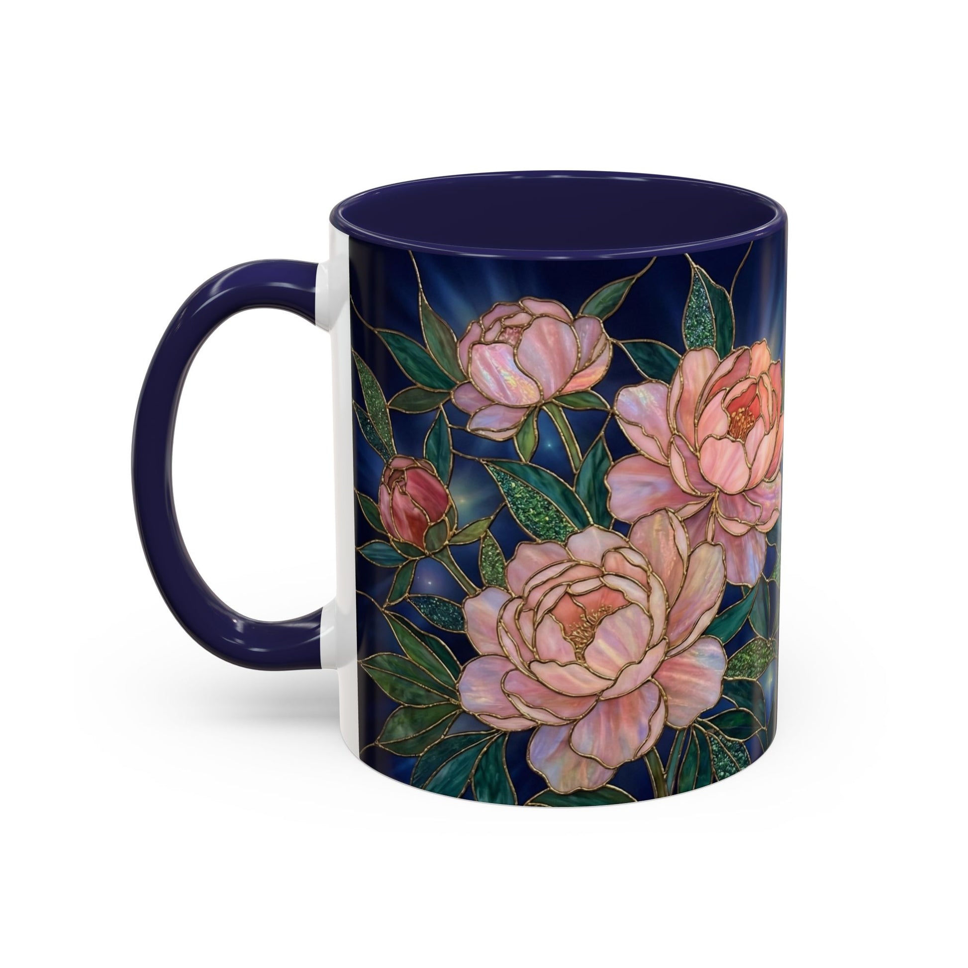 Peony Floral Coffee Mug — Stained Glass Design (11/15oz) -14580