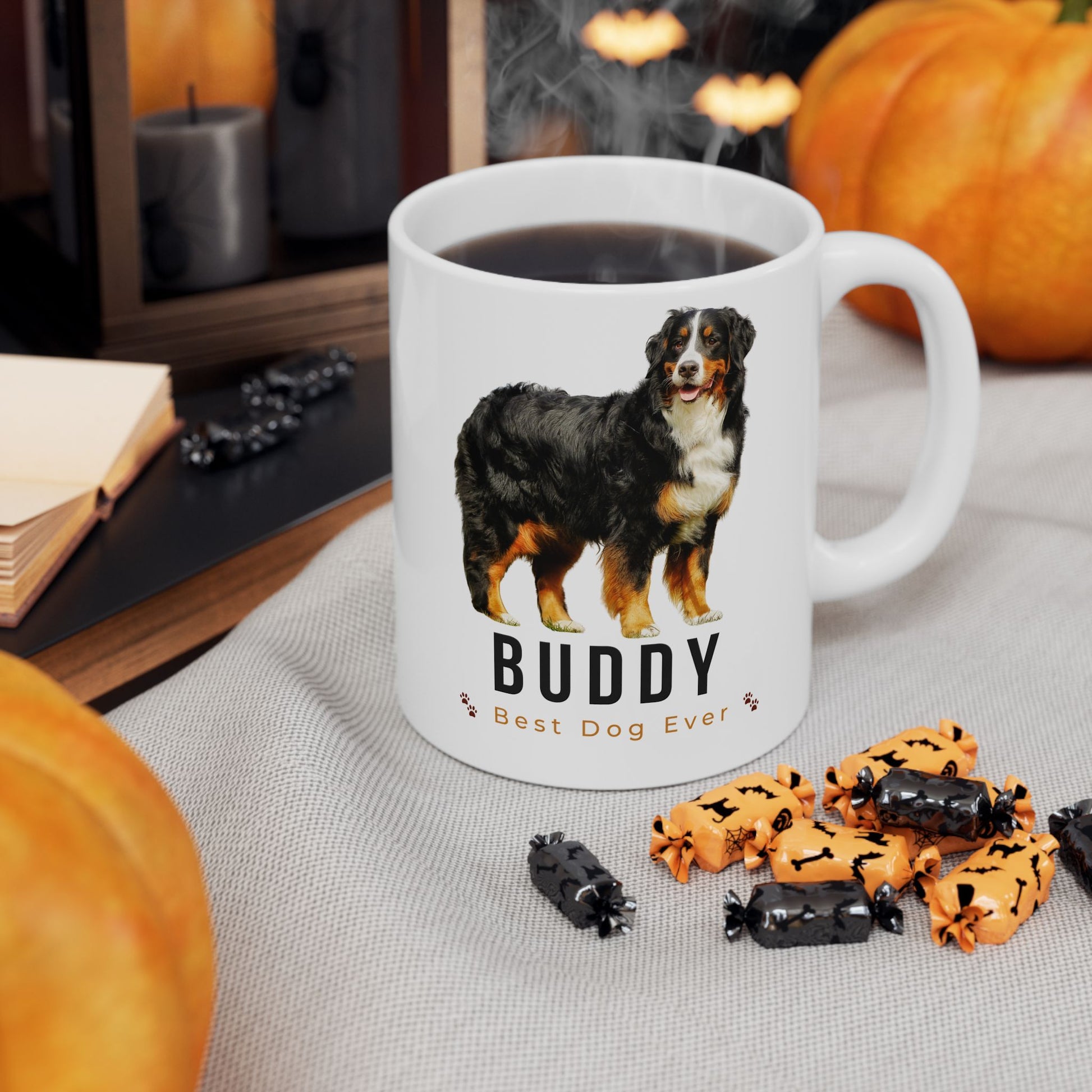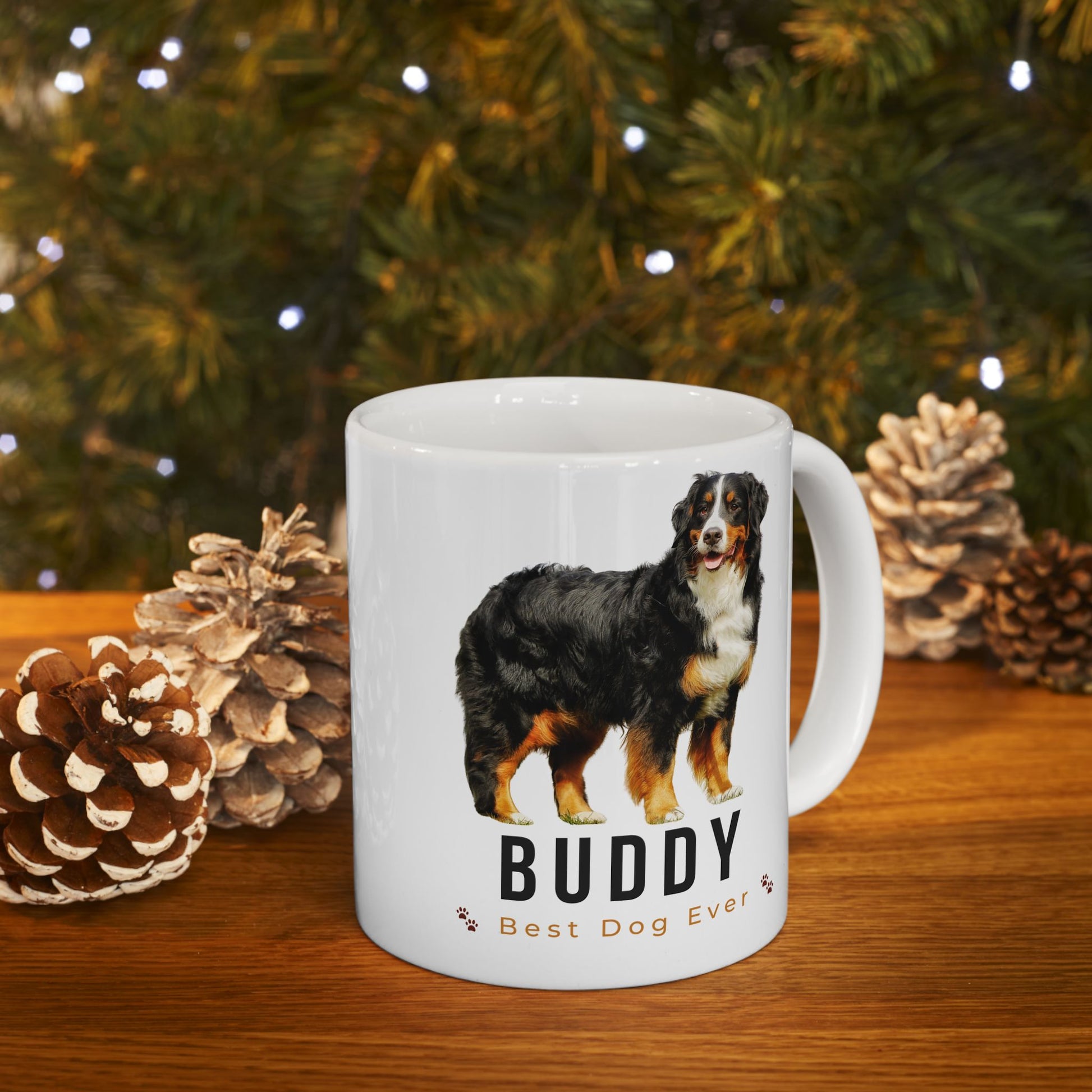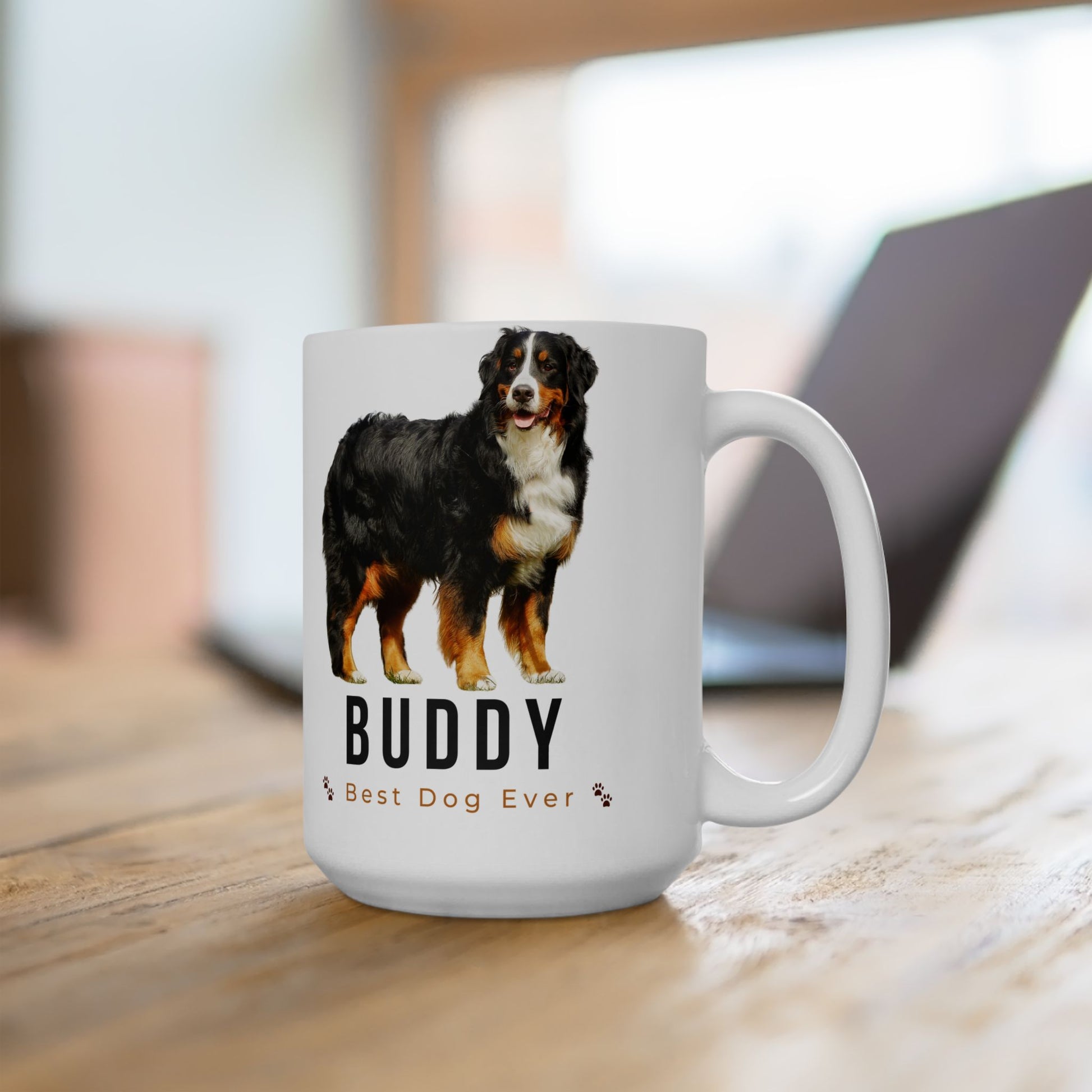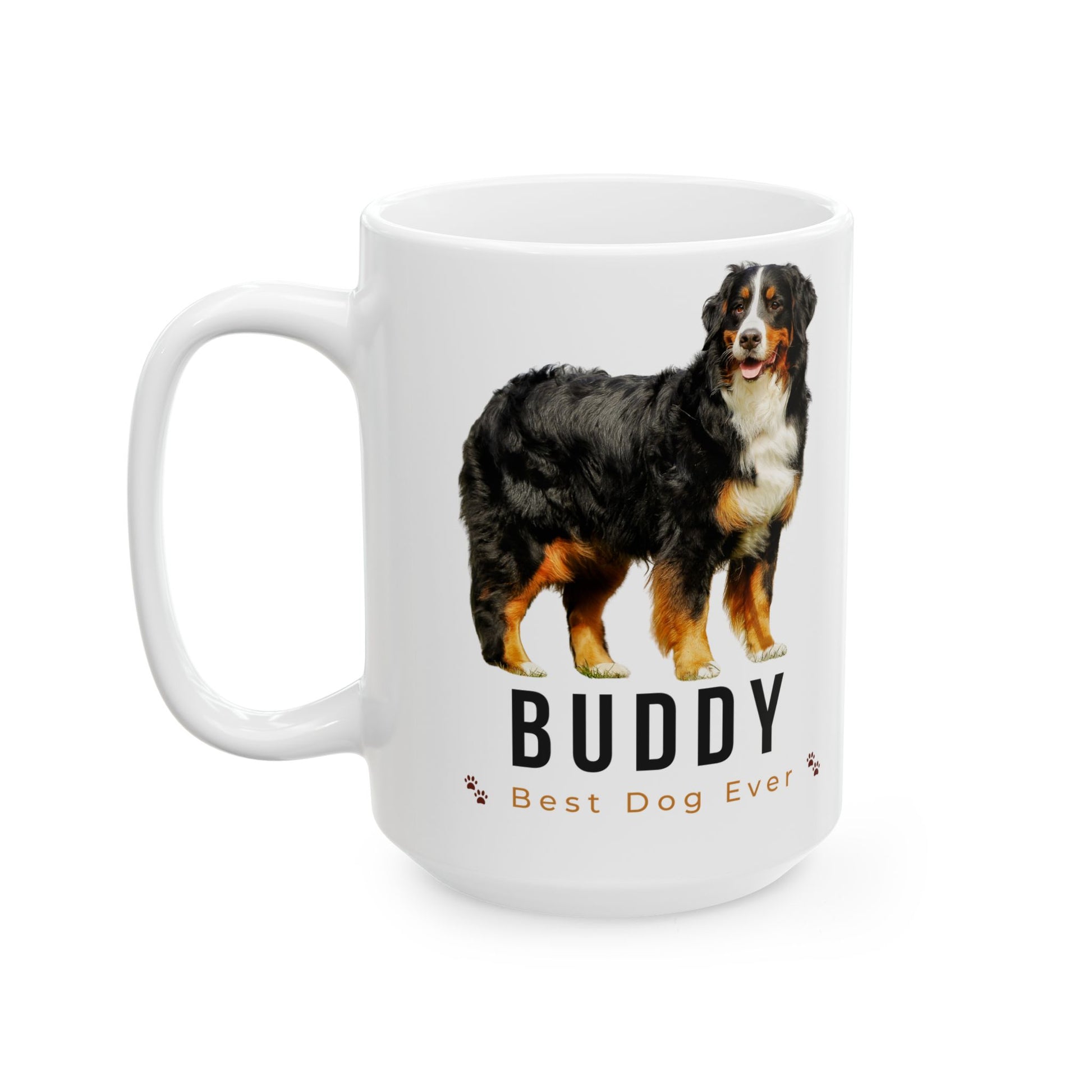 Personalized Bernese Mountain Dog Mug – Custom Dog Name “Best Dog Ever” Paw Print Coffee Cup Gift (11oz, 15oz) - 14836