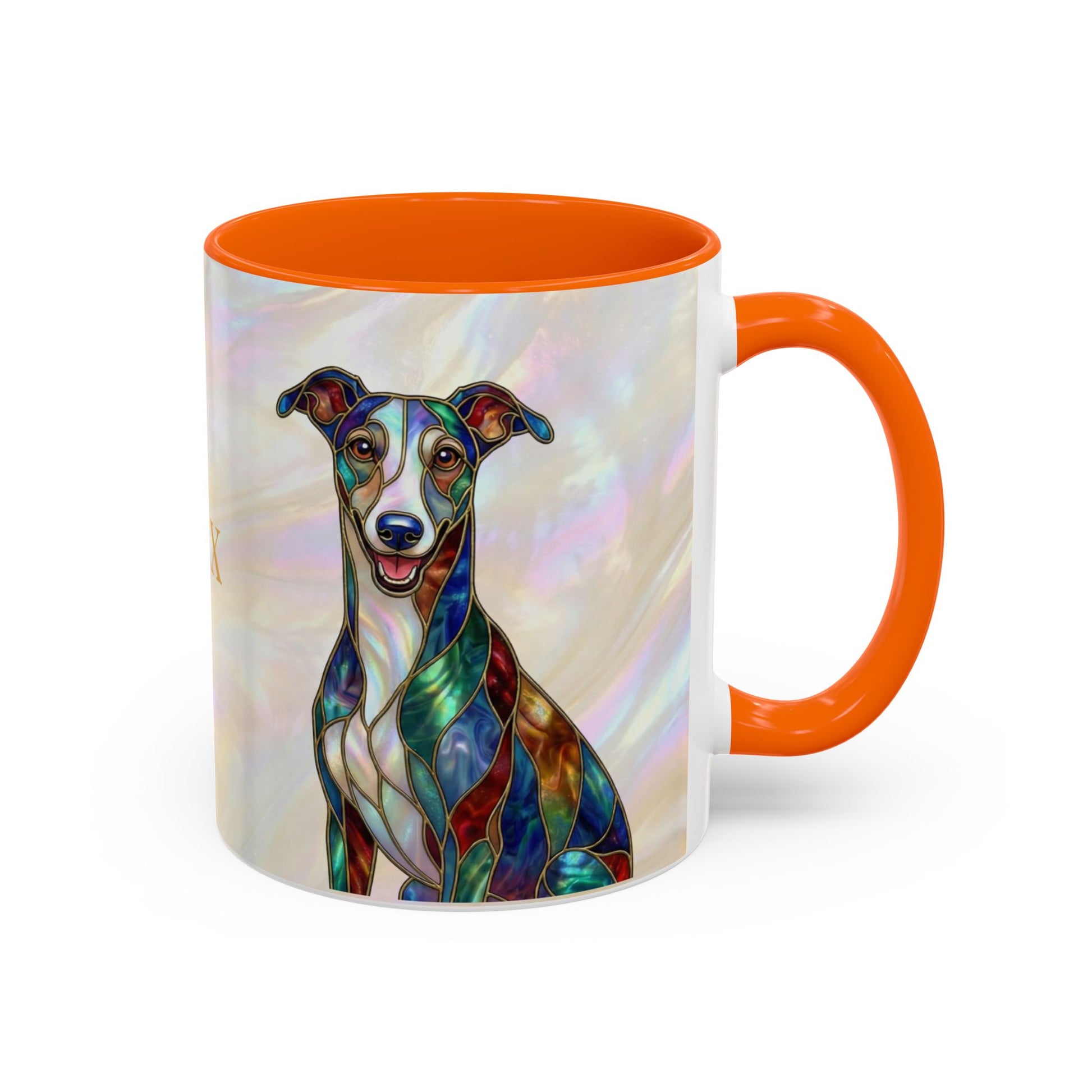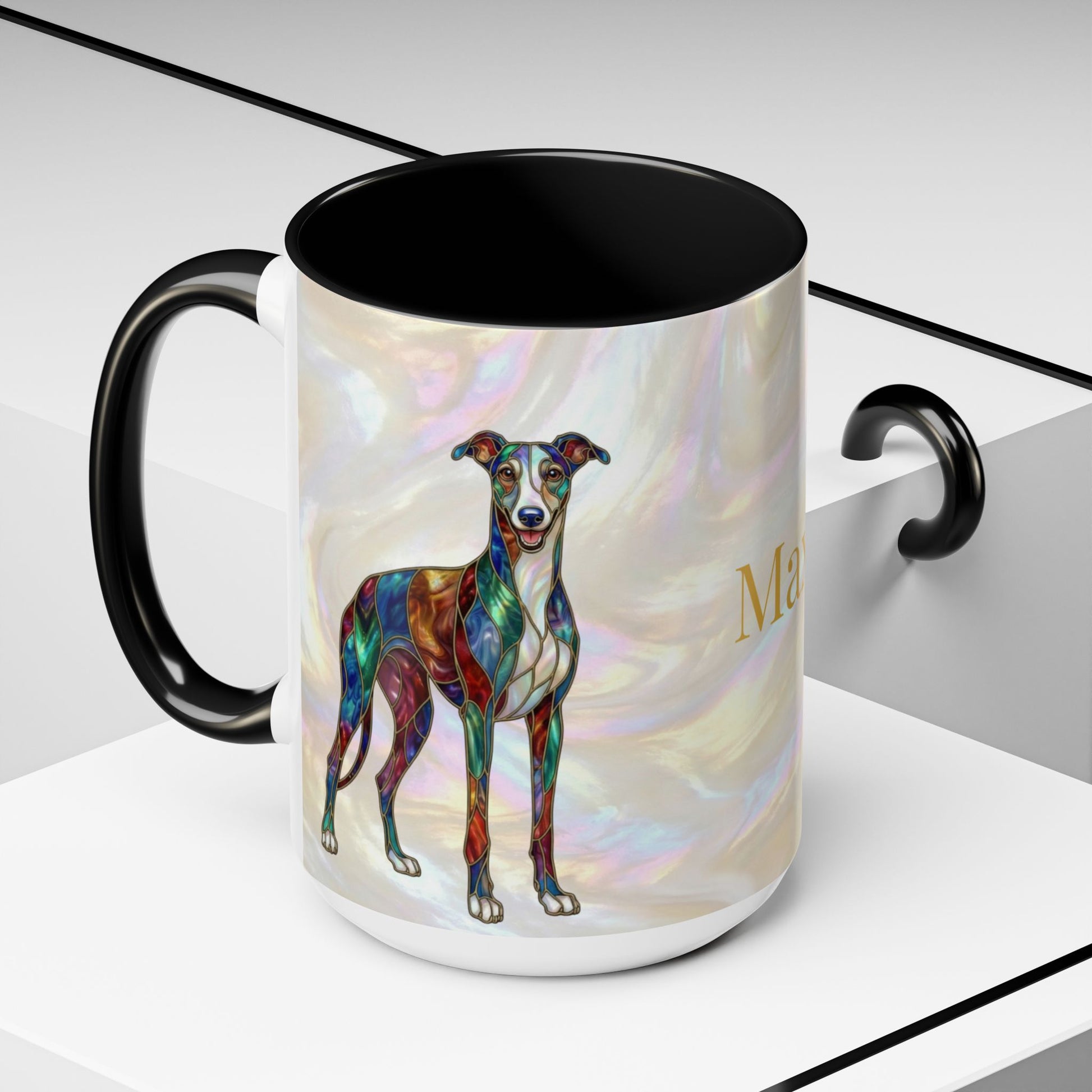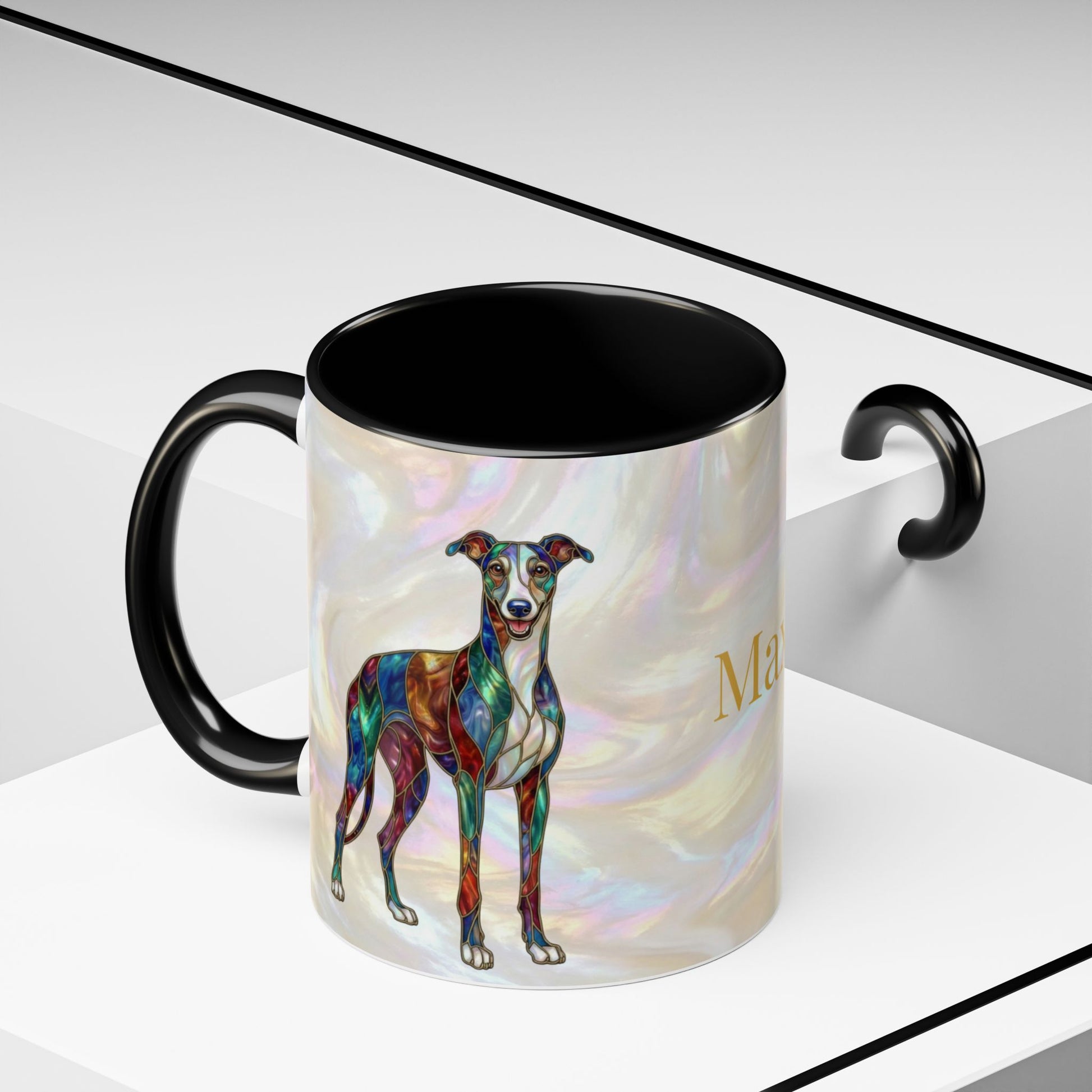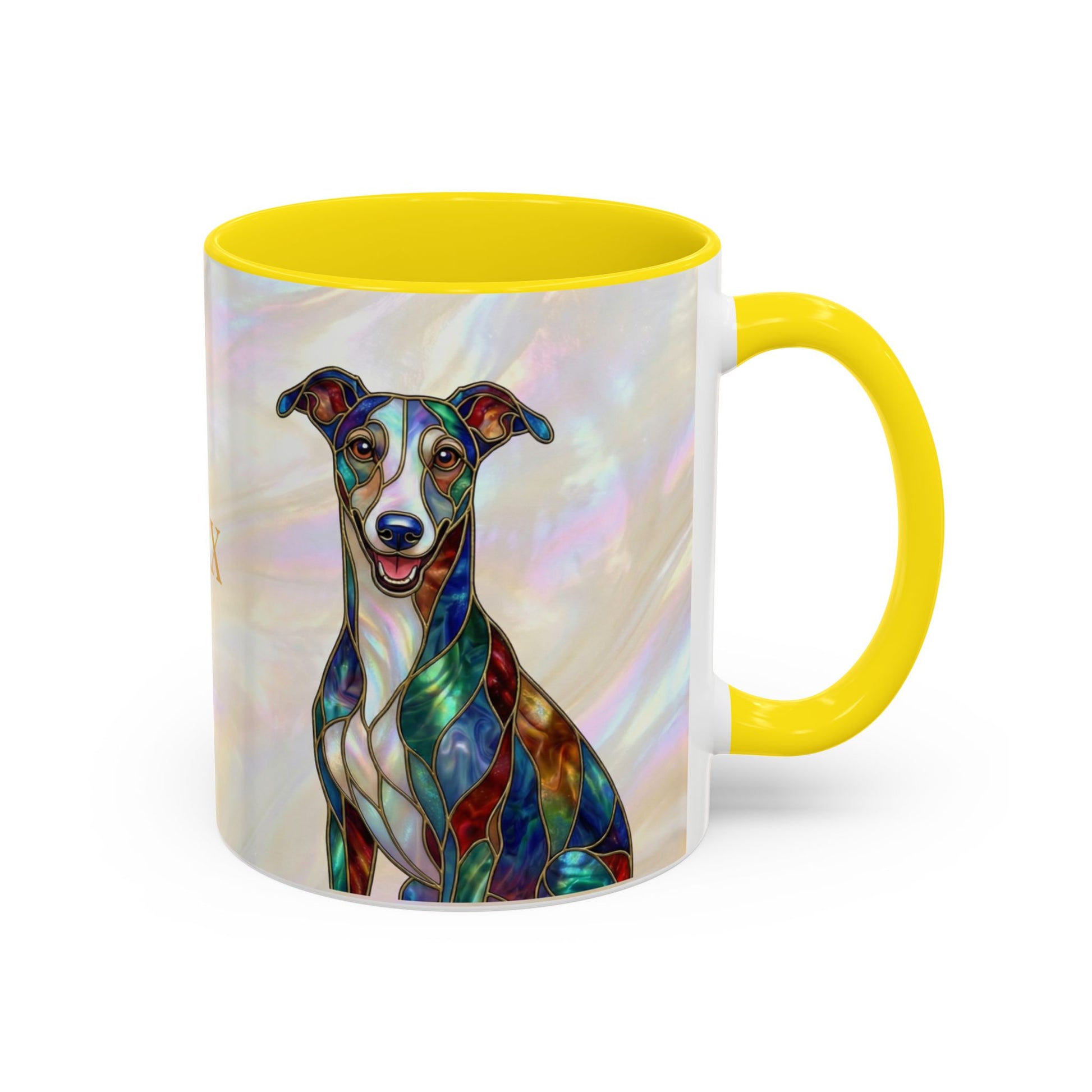 Personalized Greyhound Coffee Mug – Stained Glass Dog Accent Mug (Name Customizable) - 14523