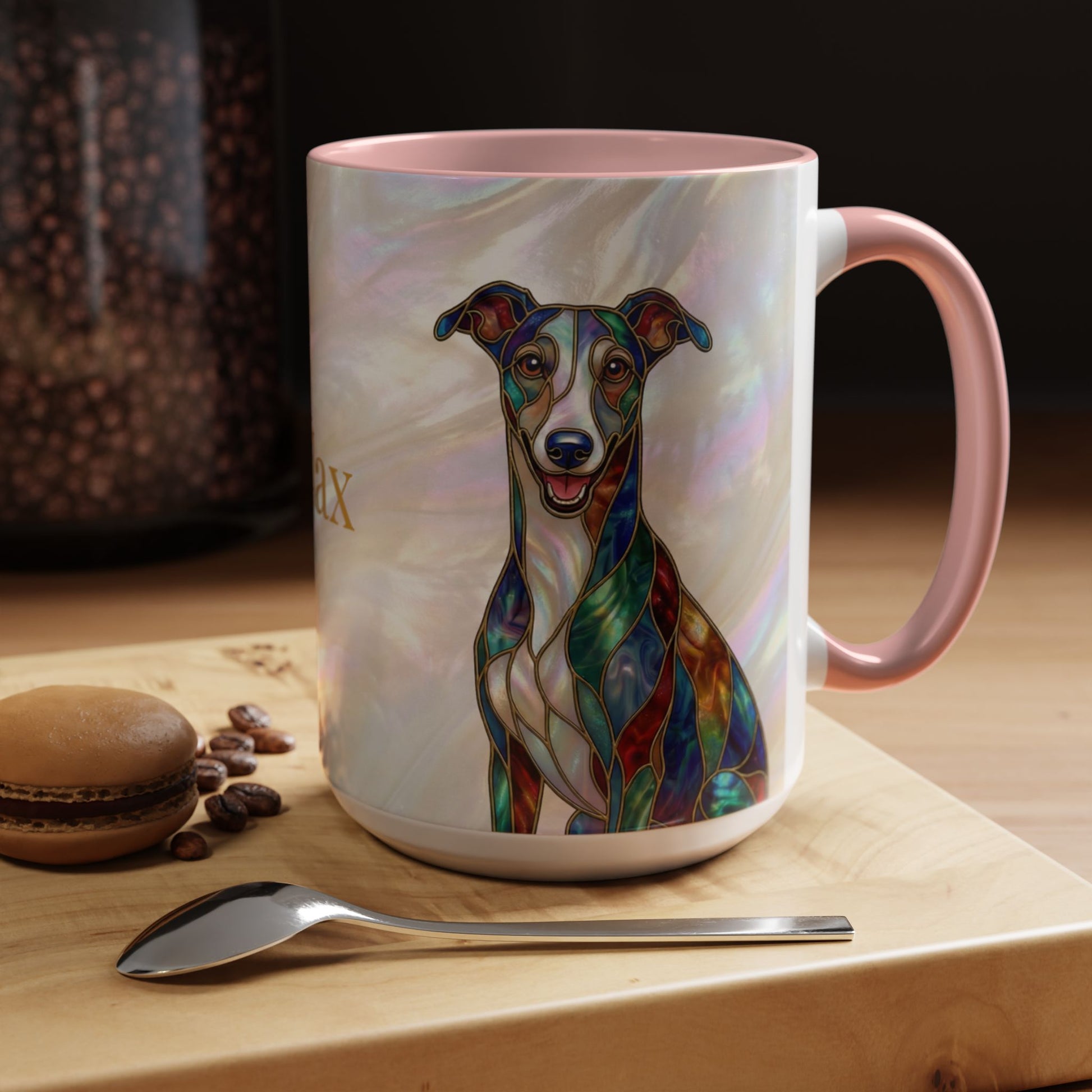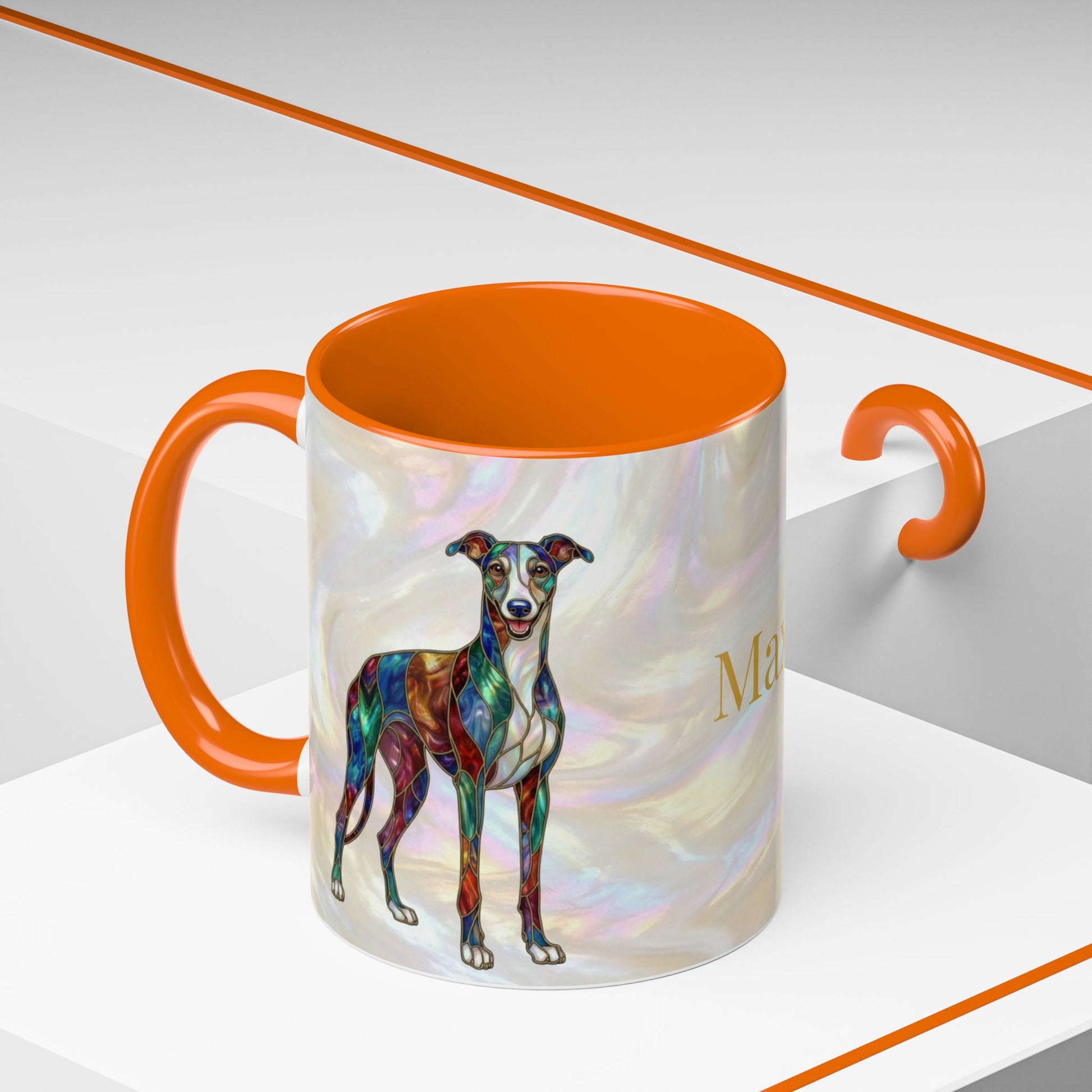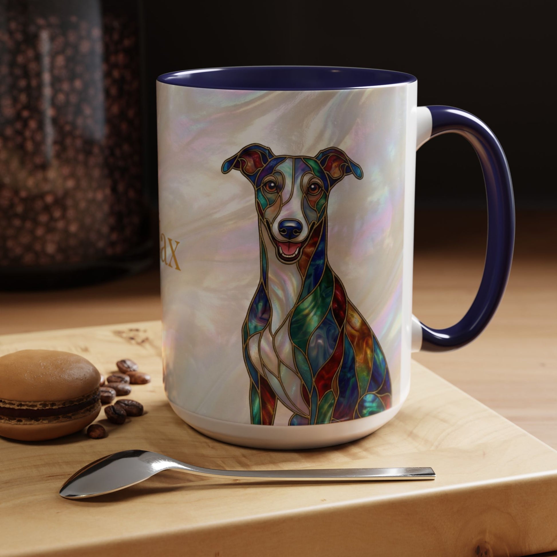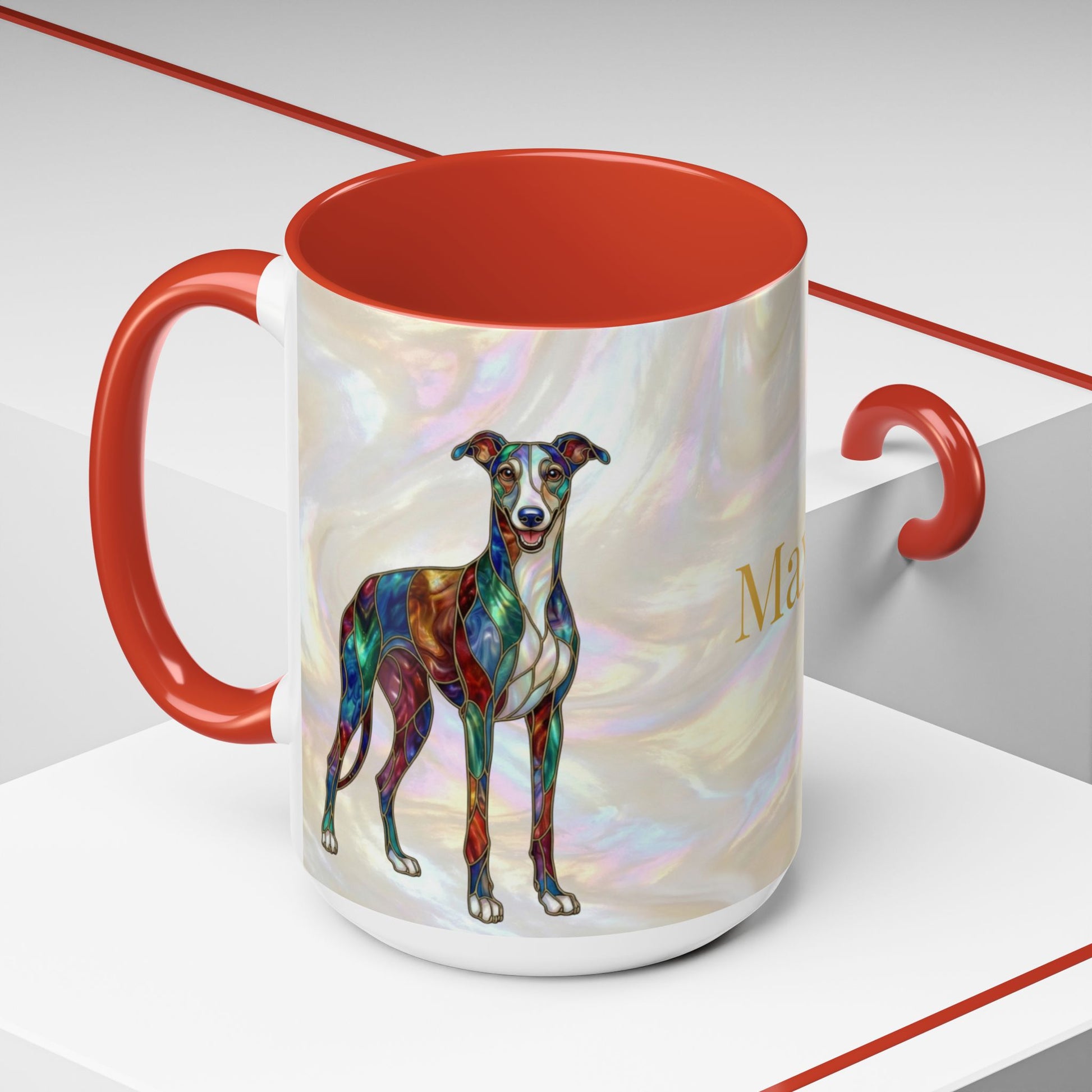 Personalized Greyhound Coffee Mug – Stained Glass Dog Accent Mug (Name Customizable) - 14523