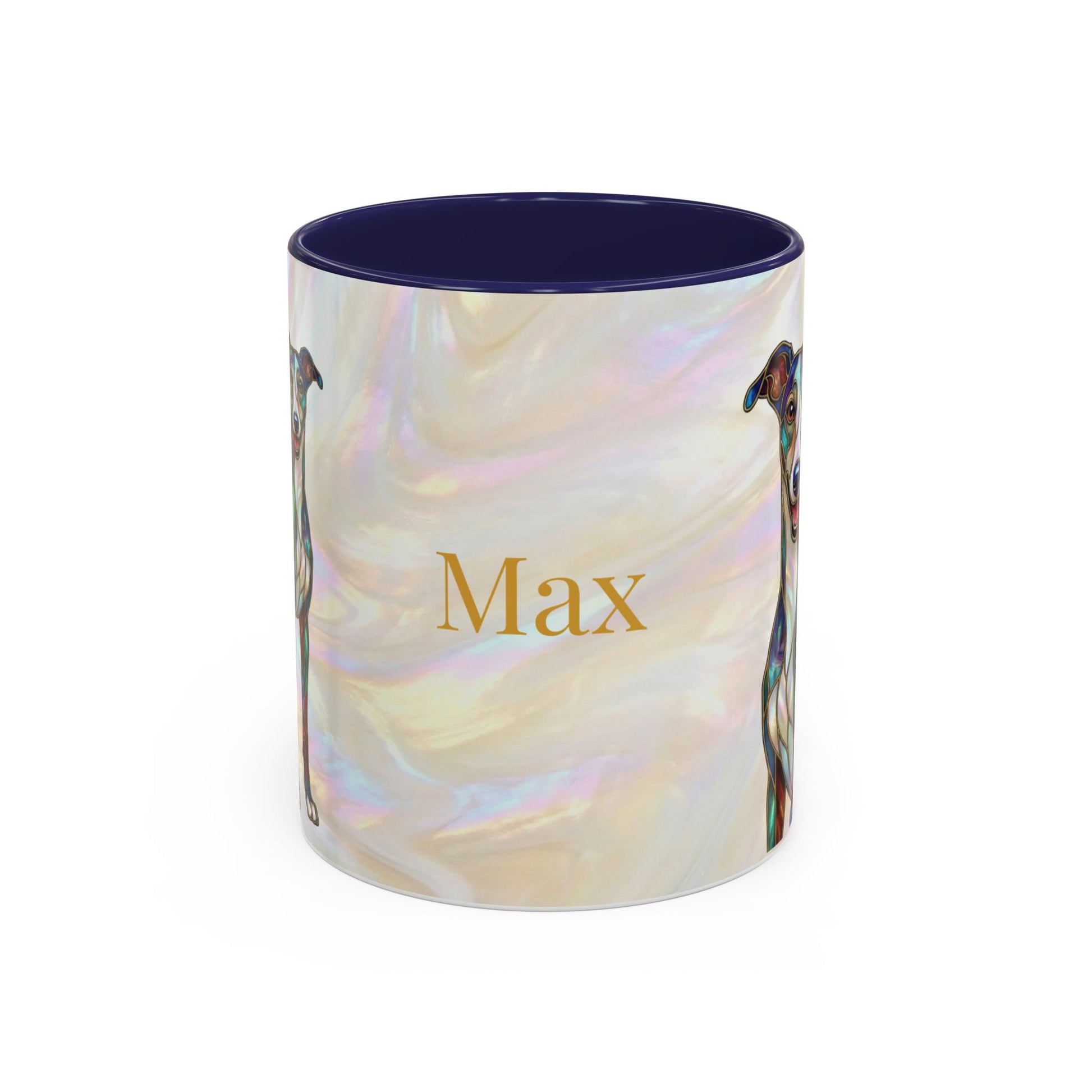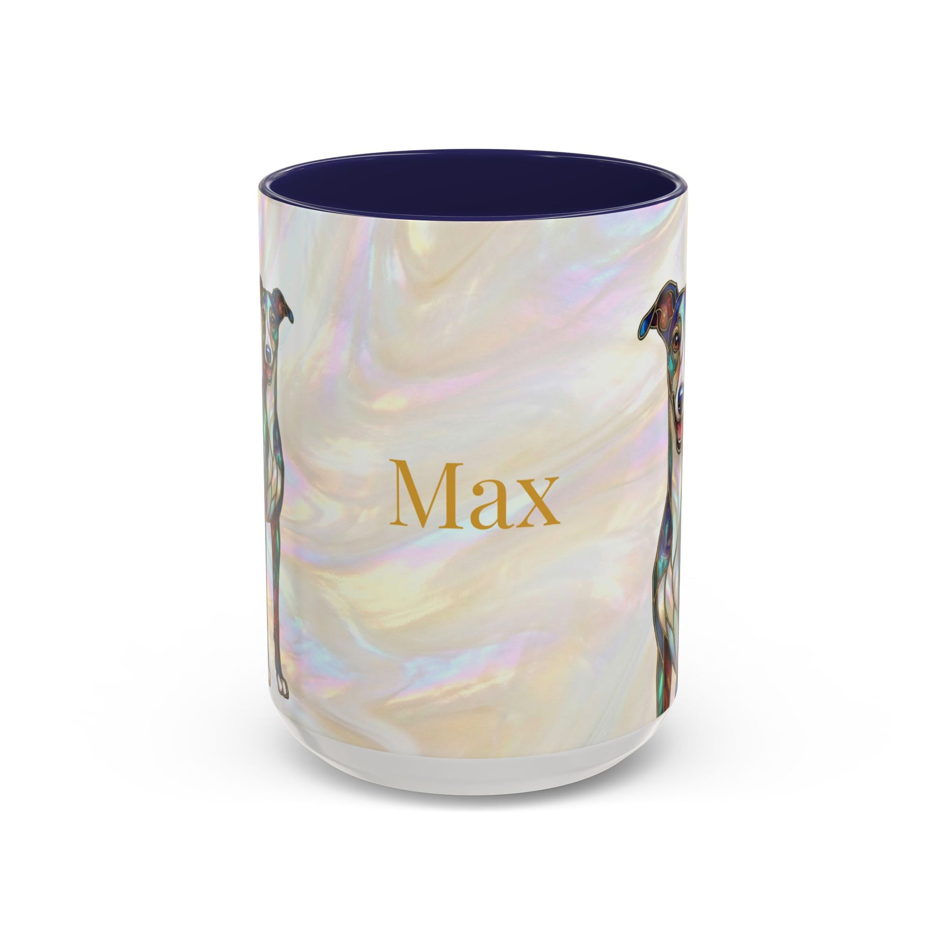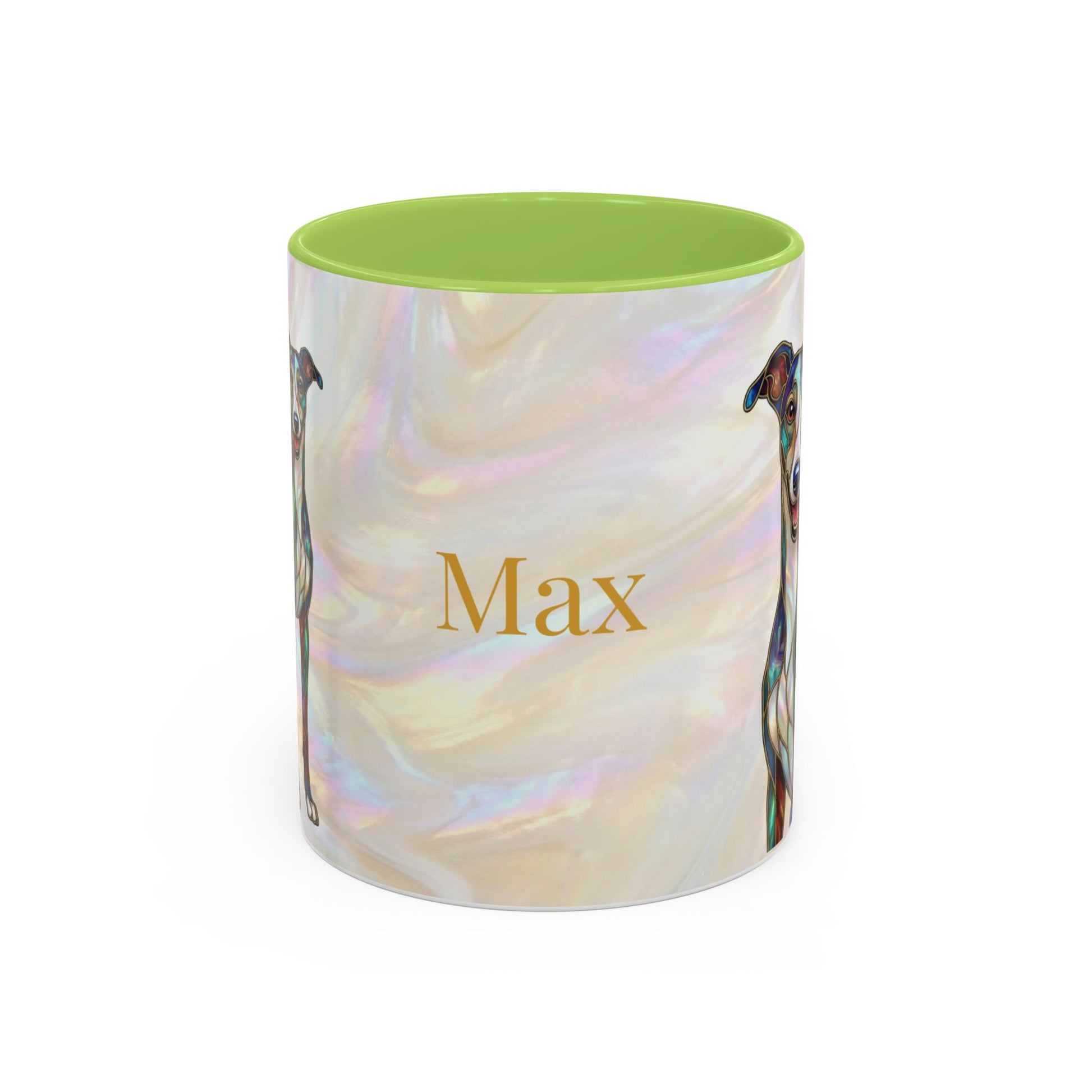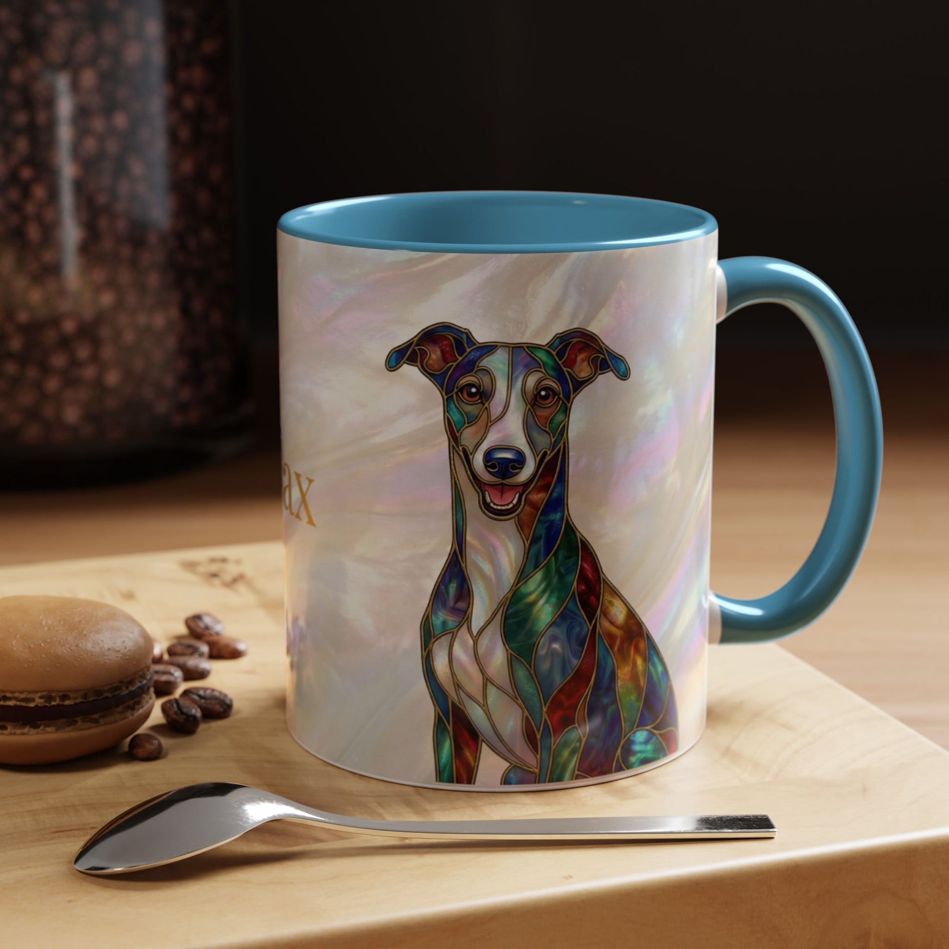 Personalized Greyhound Coffee Mug – Stained Glass Dog Accent Mug (Name Customizable) - 14523