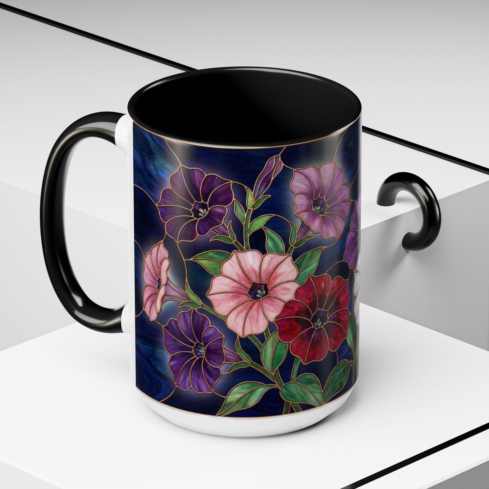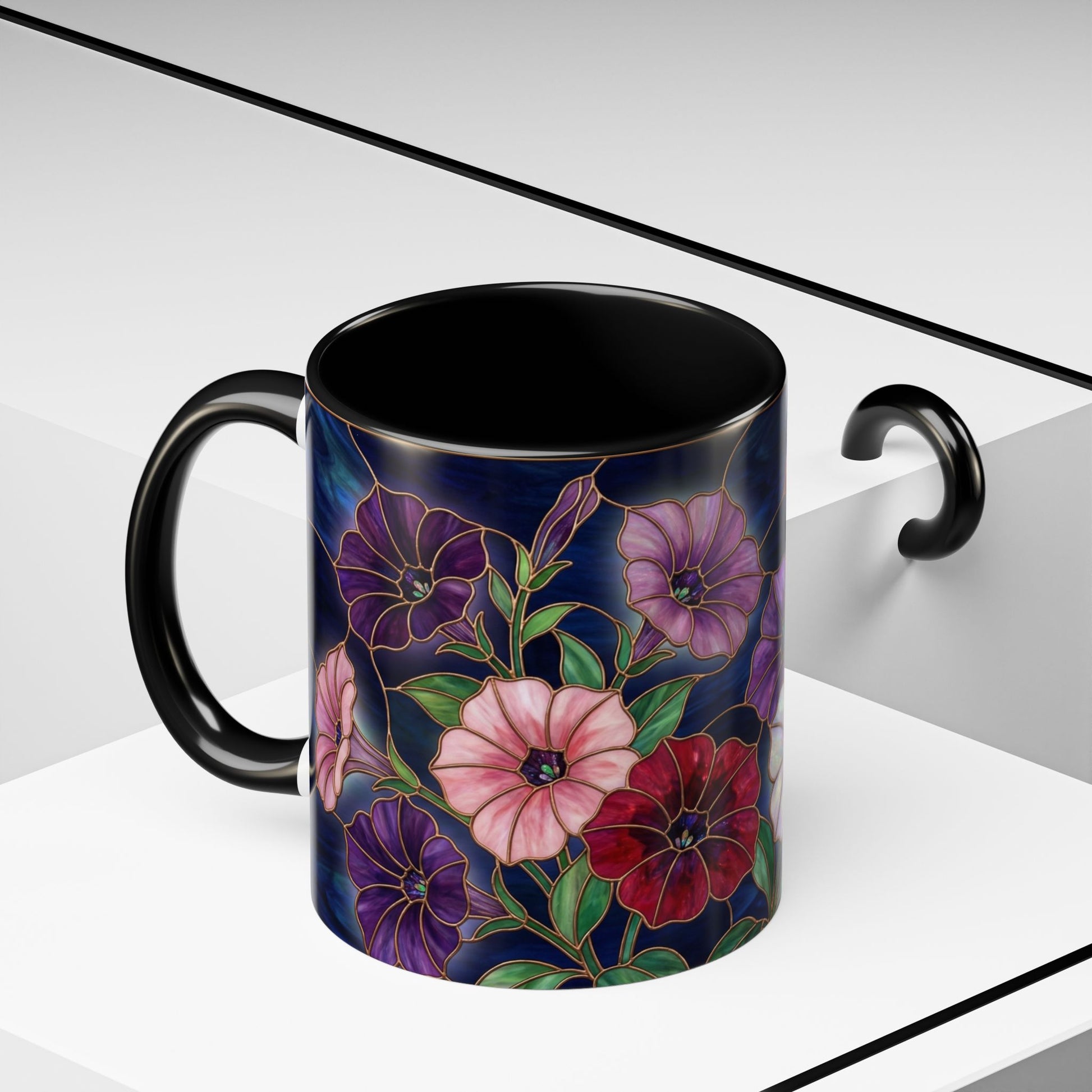 Petunia Floral Accent Coffee Mug – Stained-Glass Design (11/15oz) - 14581