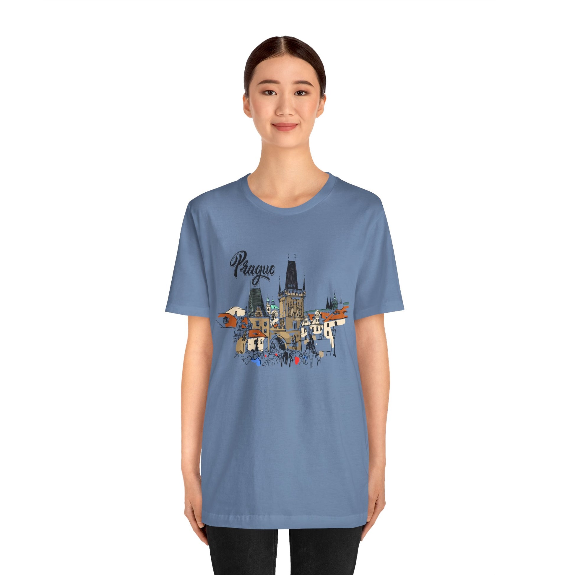 Capture the magic of Prague with the Prague Graphic Unisex Tee. Featuring a stunning design that highlights the city's famous landmarks, cobblestone streets, and timeless beauty, this tee is the ideal souvenir for travel lovers and city explorers alike. Whether you've visited the picturesque capital or dream of strolling along the Vltava River, this graphic tee lets you carry a piece of Prague wherever you go.
