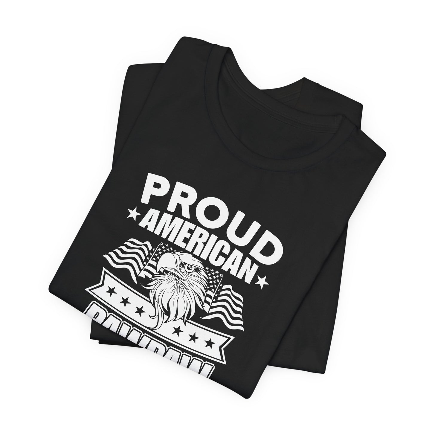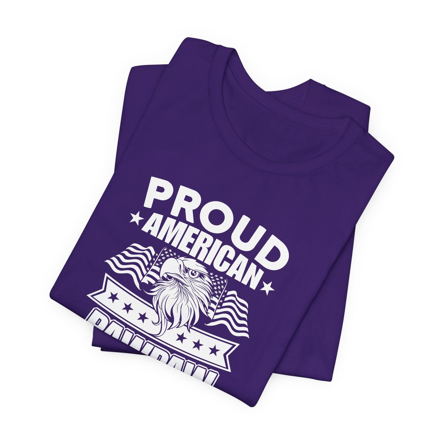 Show your patriotic pride with our "Proud American" Unisex Jersey Short Sleeve Tee. Perfect for celebrating national holidays, sporting events, or just everyday wear, this tee is a timeless tribute to your love for the USA.