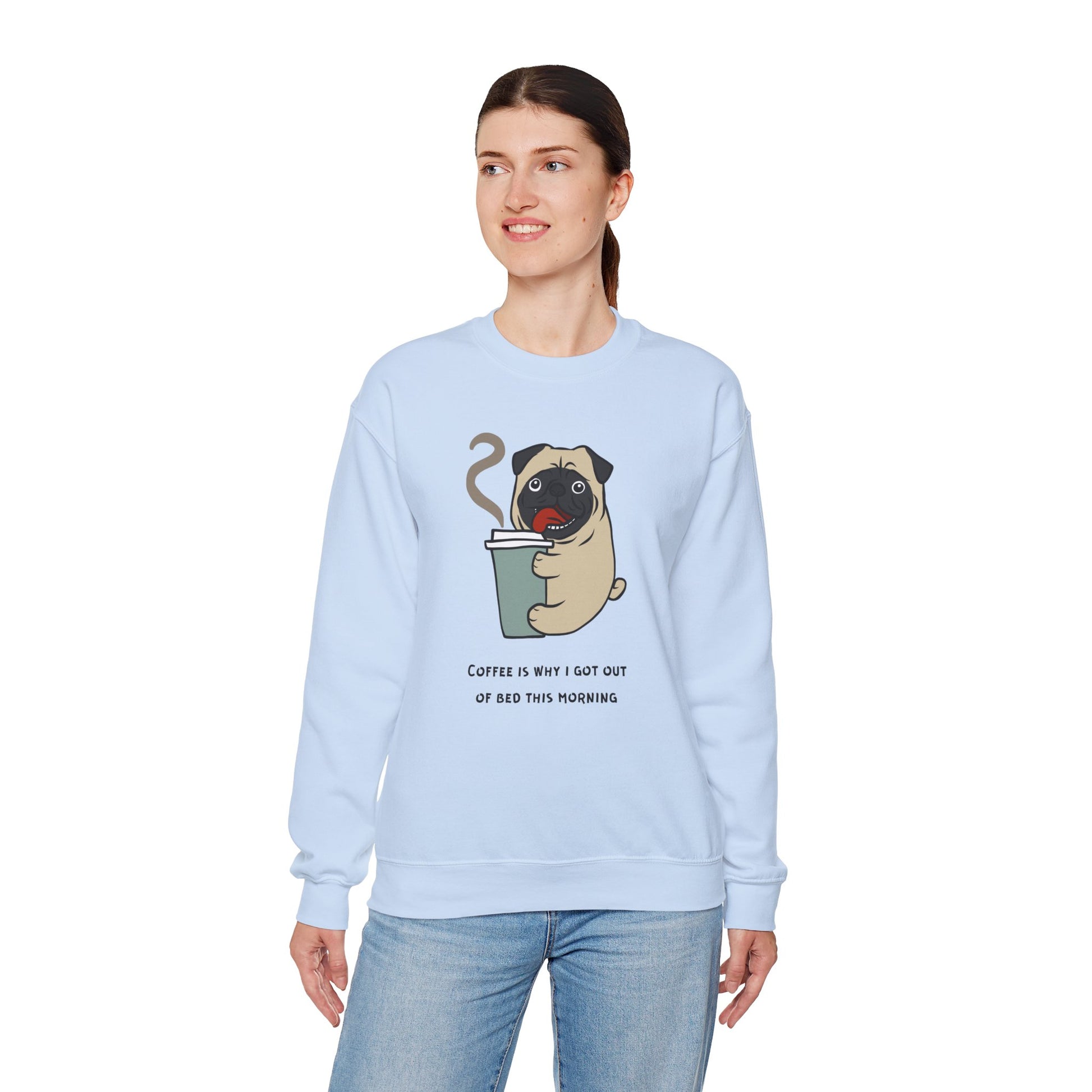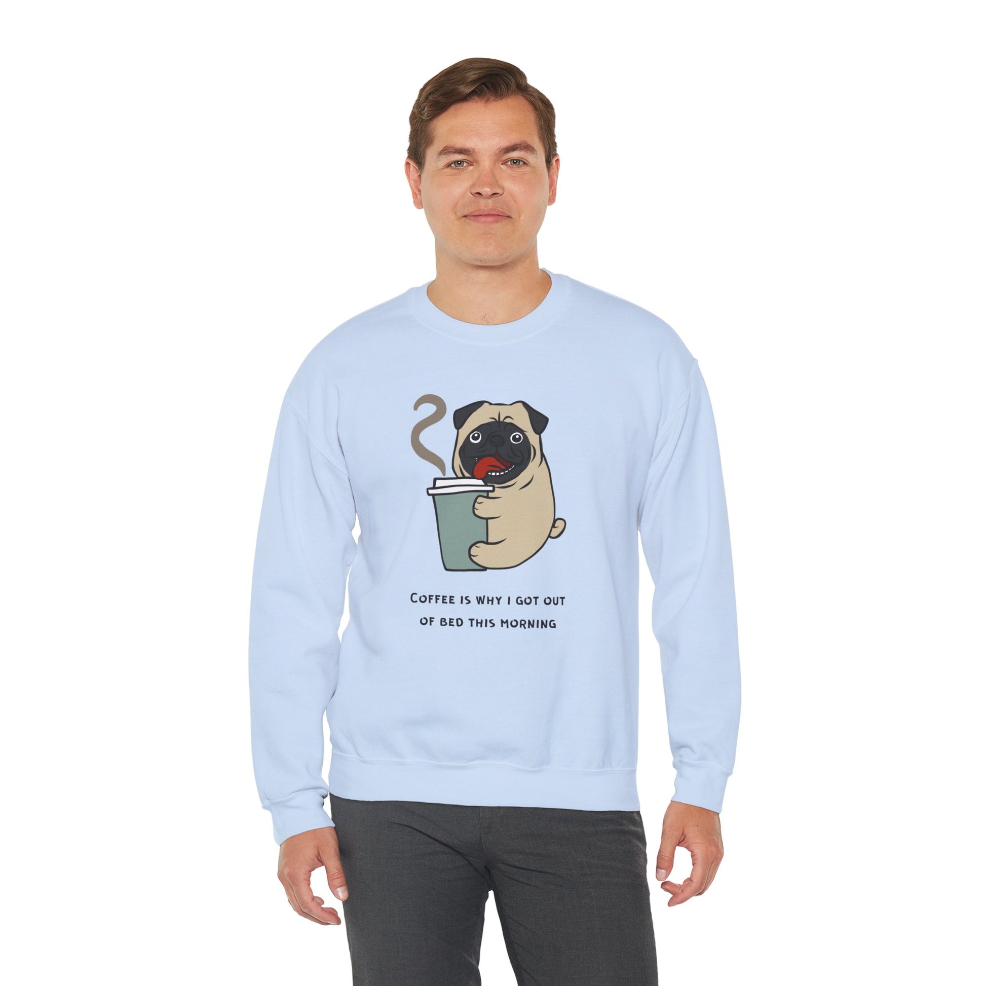 Start your day with a smile (and a pug!) in our "Coffee is Why I Got Out of Bed This Morning" Unisex Heavy Blend™ Crewneck Sweatshirt. Perfect for pug lovers and coffee enthusiasts alike, this cozy sweatshirt is the ultimate morning mood booster.