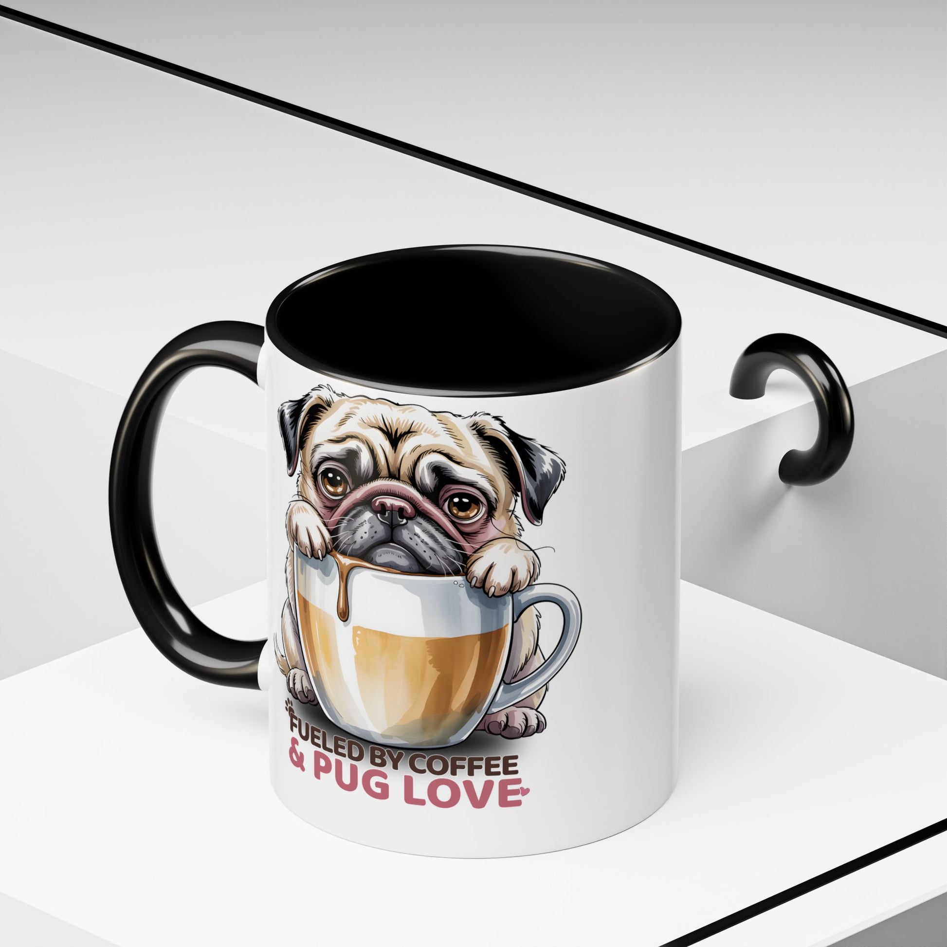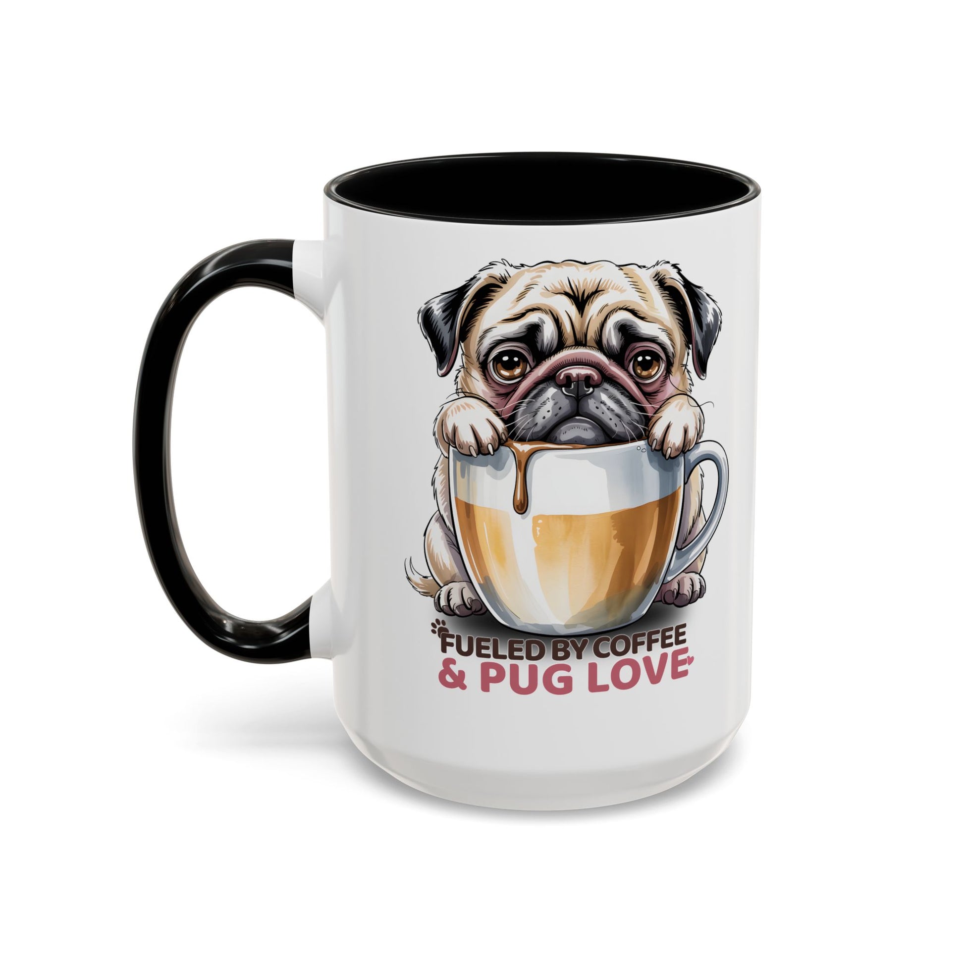 Pug Coffee Mug – Fueled by Coffee & Pug Love | Cute Dog Mom Gift, Accent Ceramic Mug - 14815