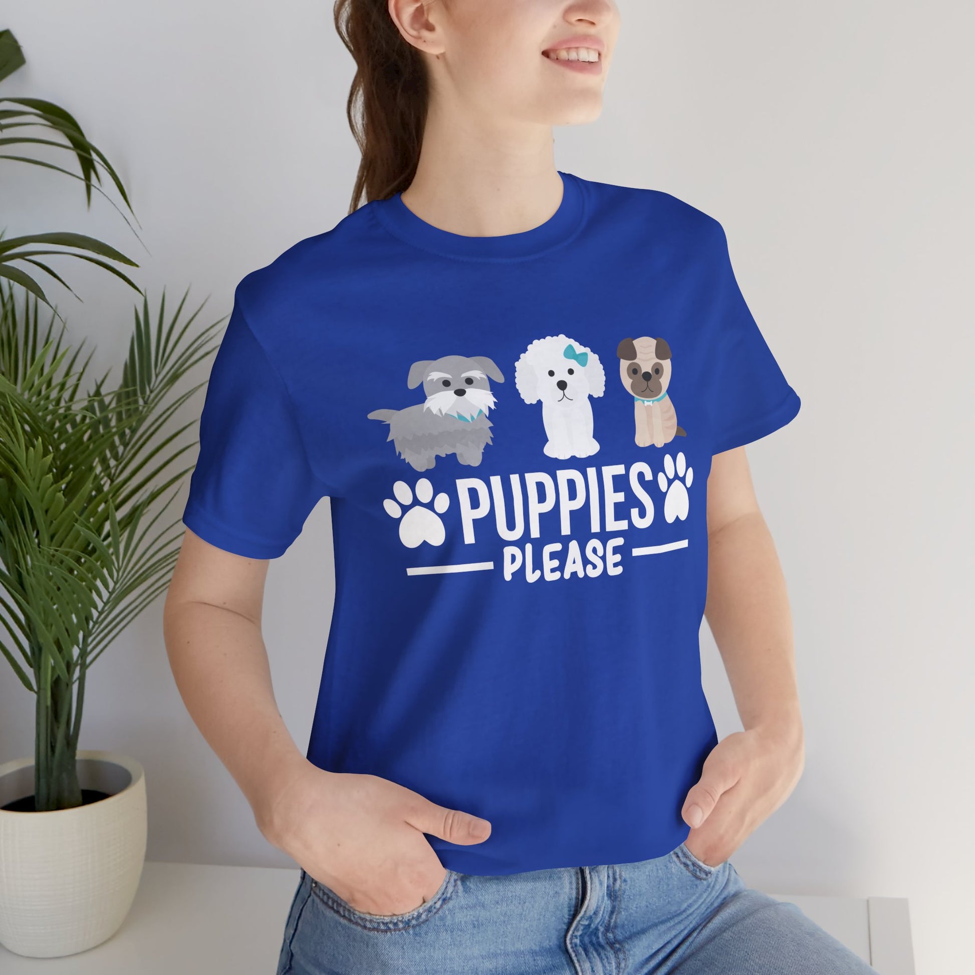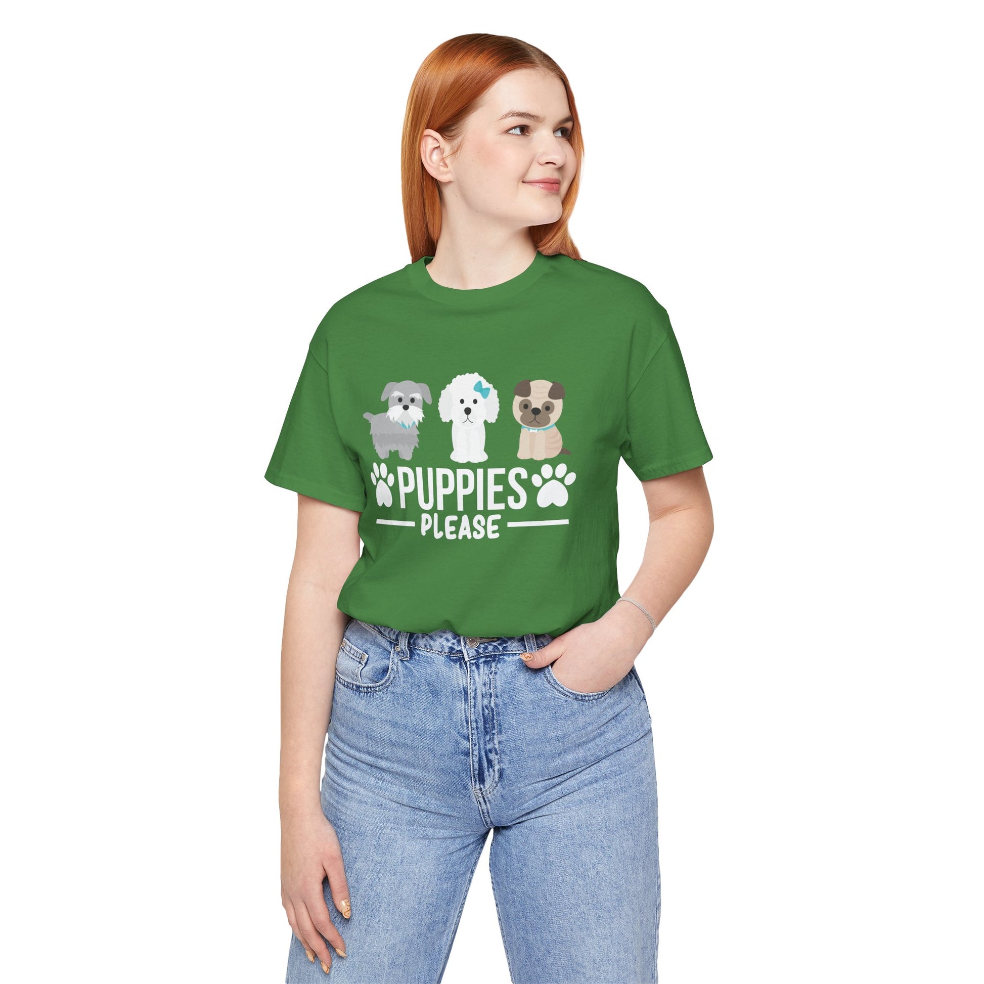 Show off your love for puppies and stay cozy all day long with this must-have unisex jersey short sleeve tee. Order yours today and let your playful side shine!