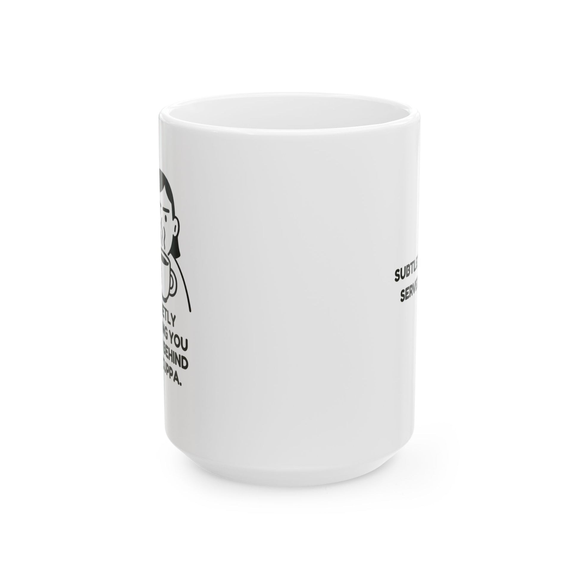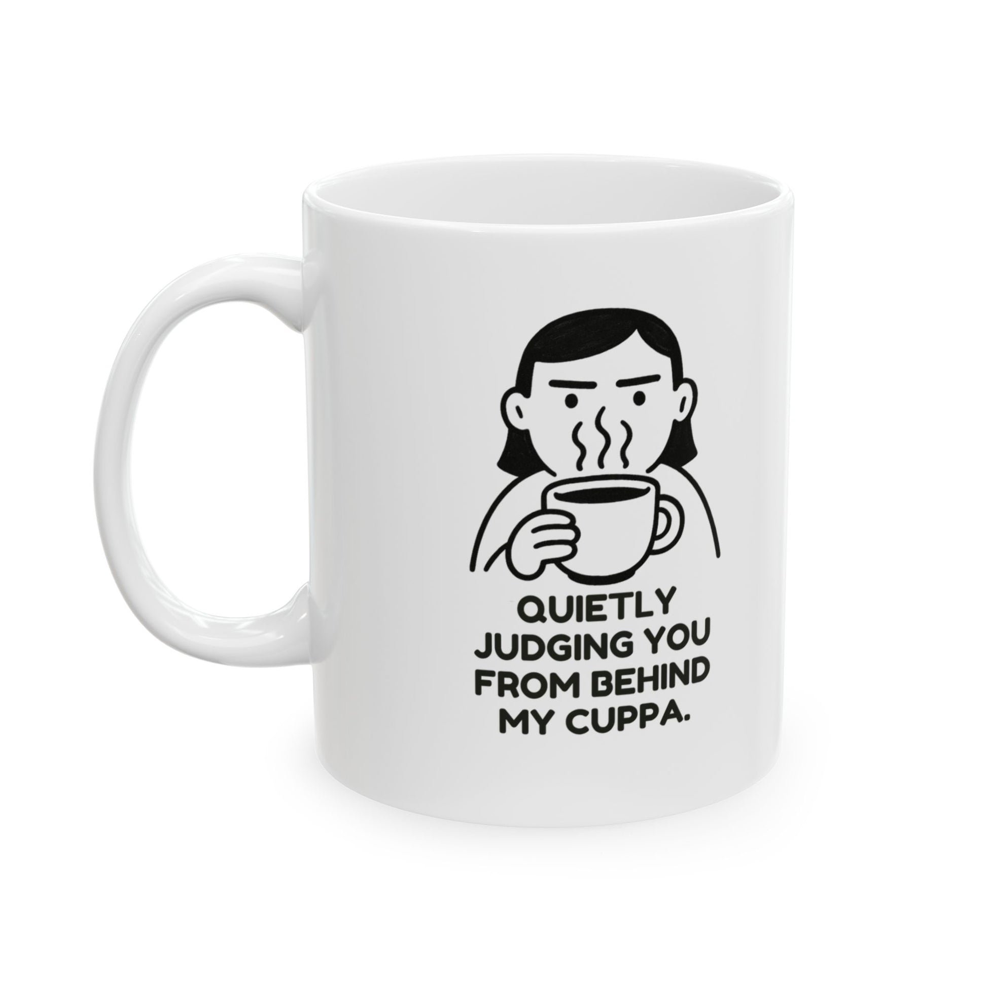 “Quietly judging you from behind my cuppa.” (Subtle shade, served hot.) Ceramic Mug - 13948