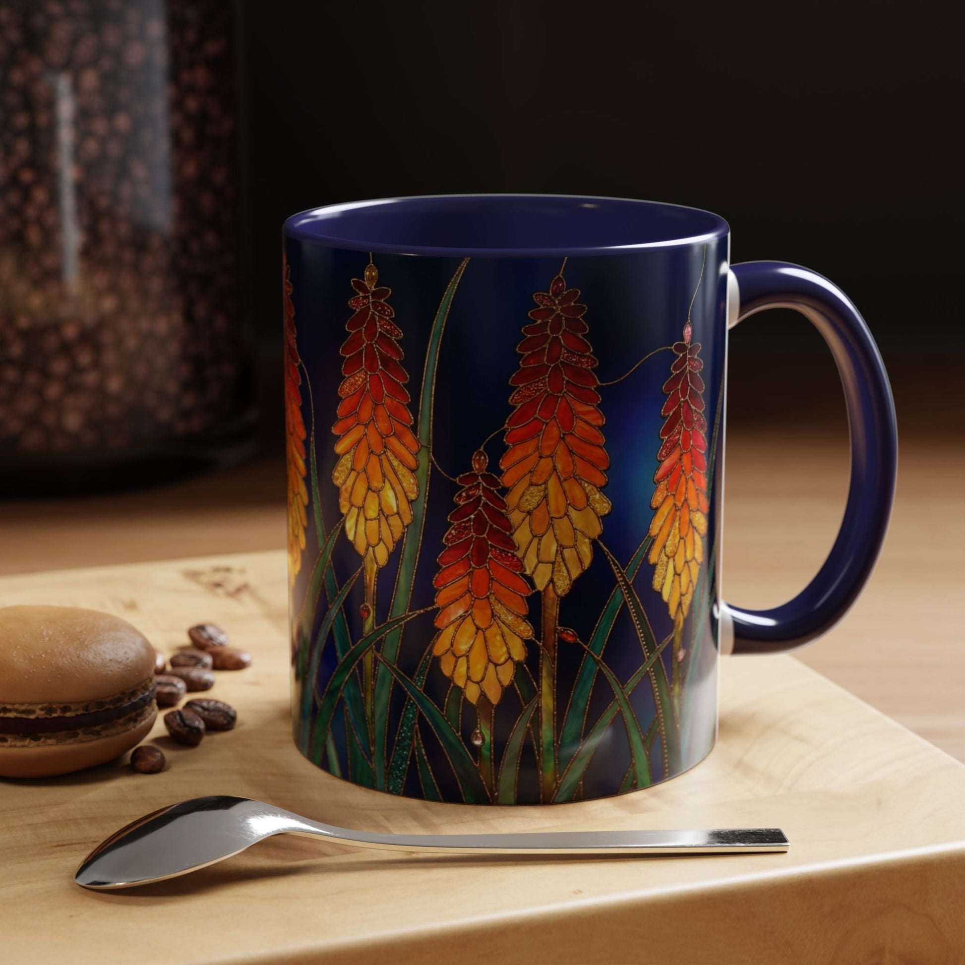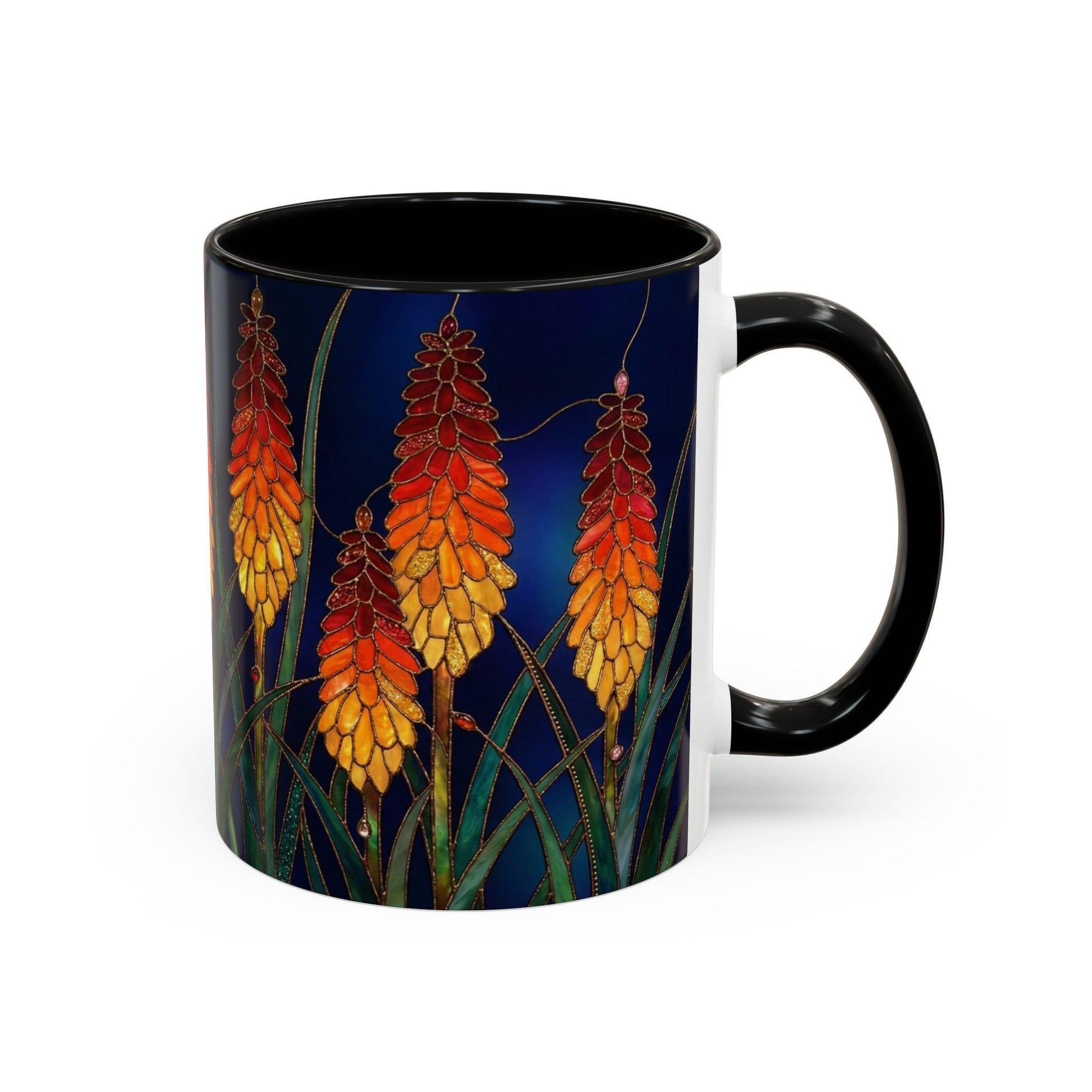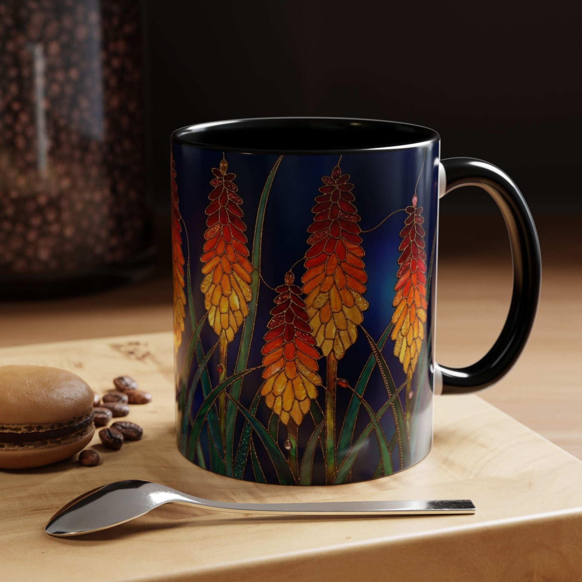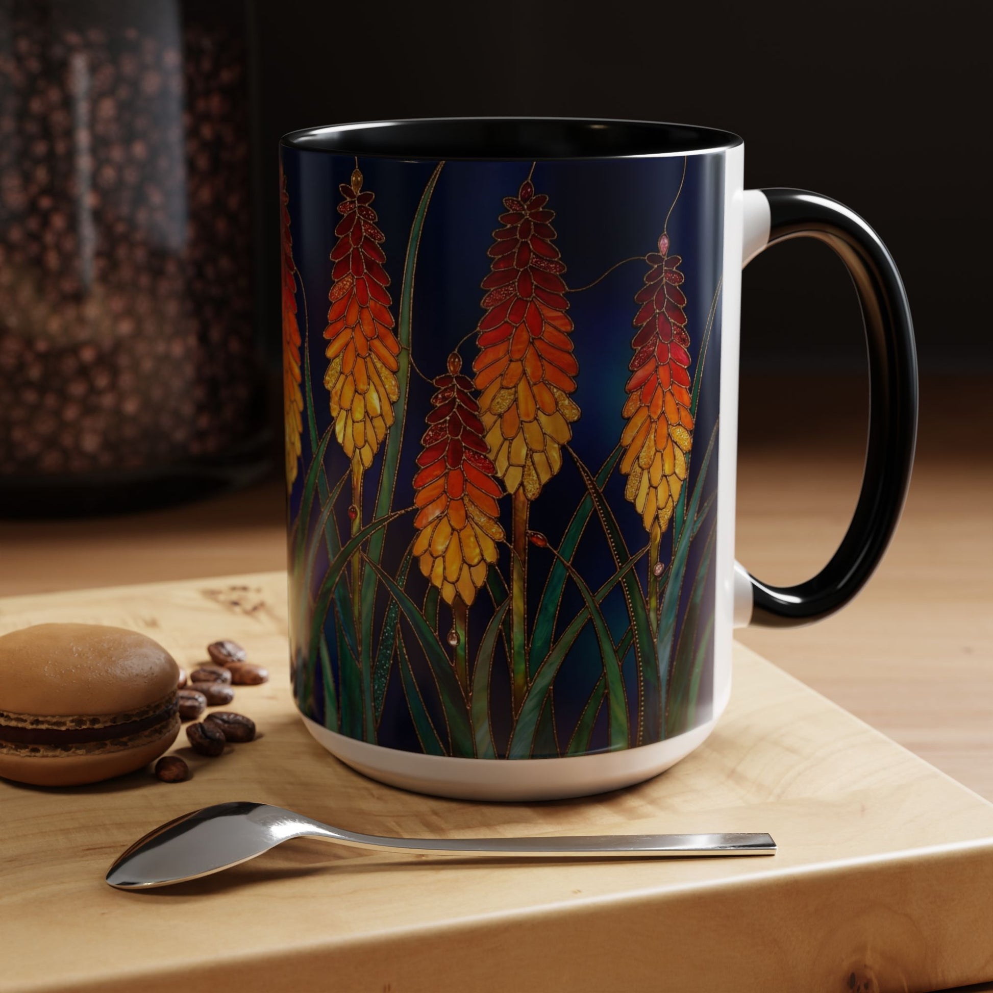 Red Hot Poker Floral Coffee Mug — Stained Glass Design (11/15oz) - 14585