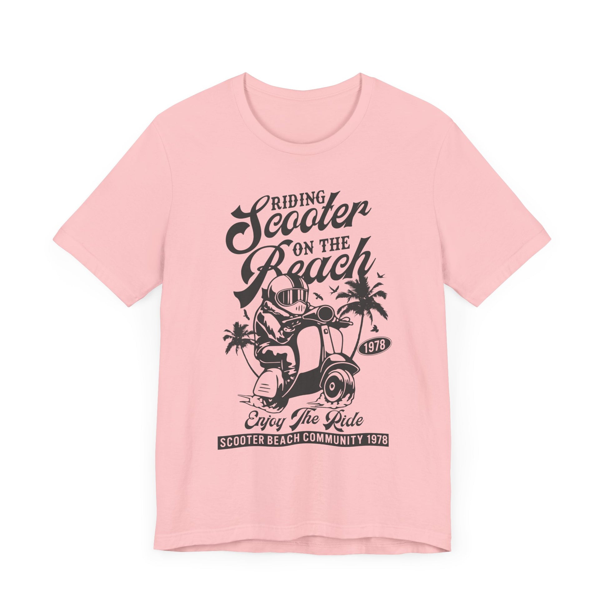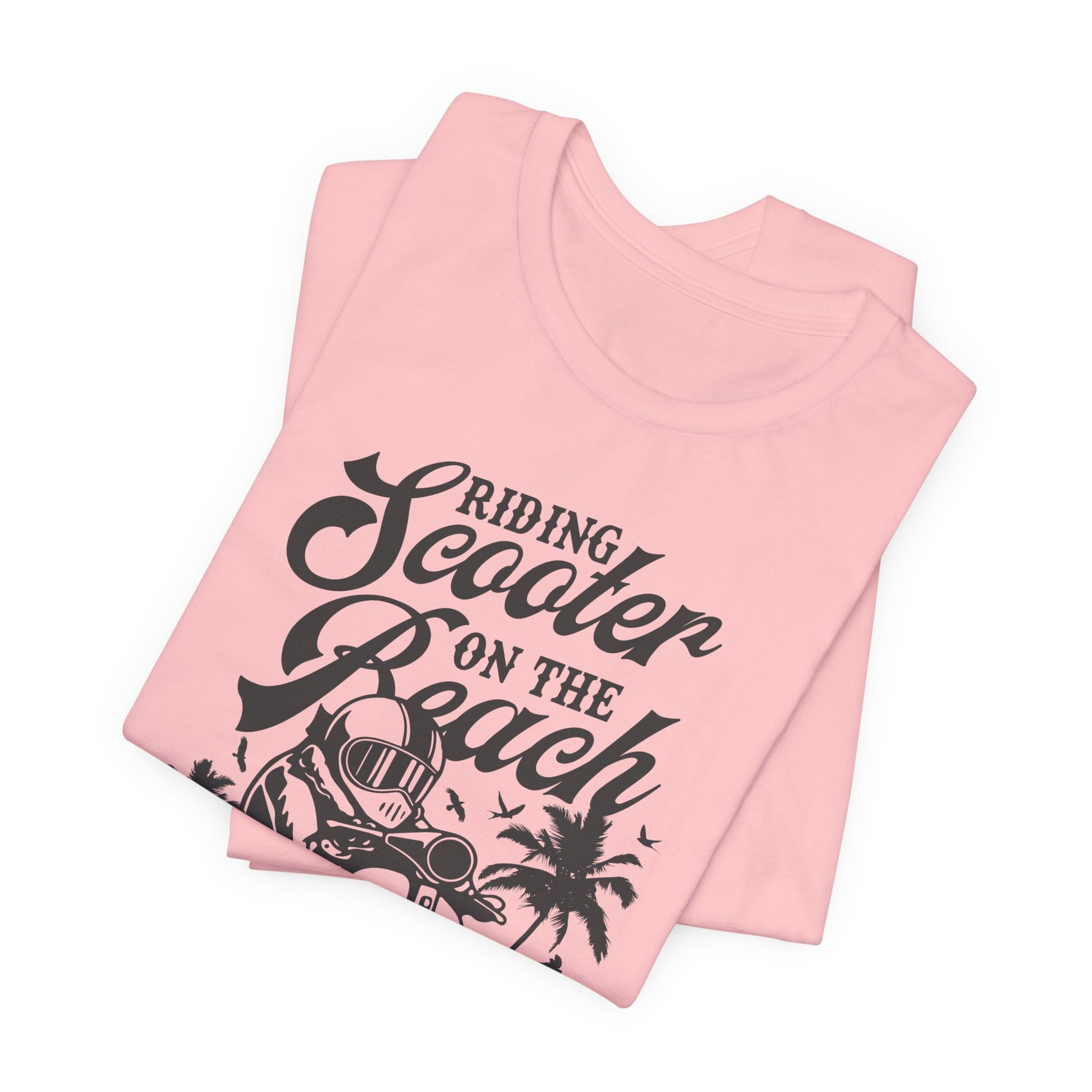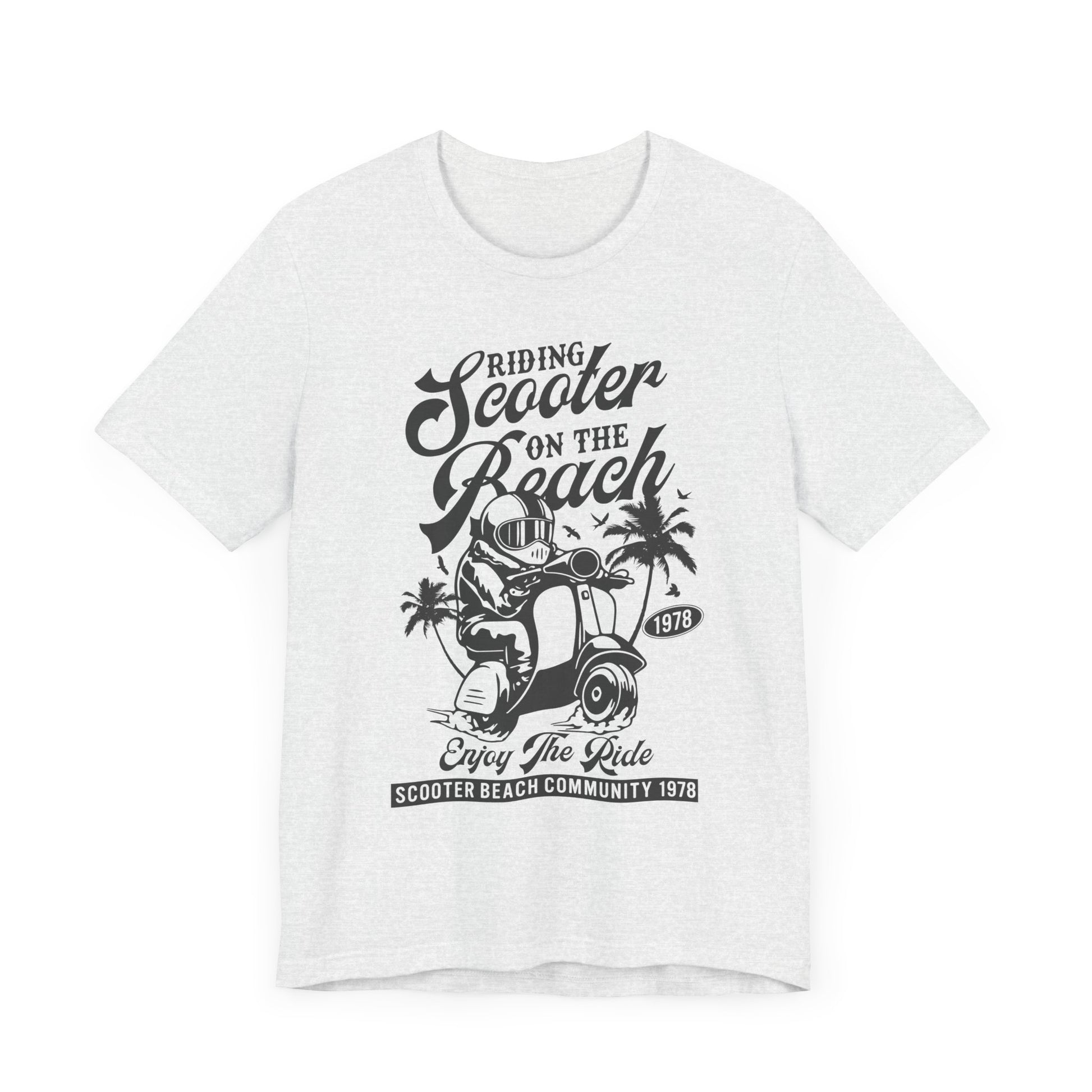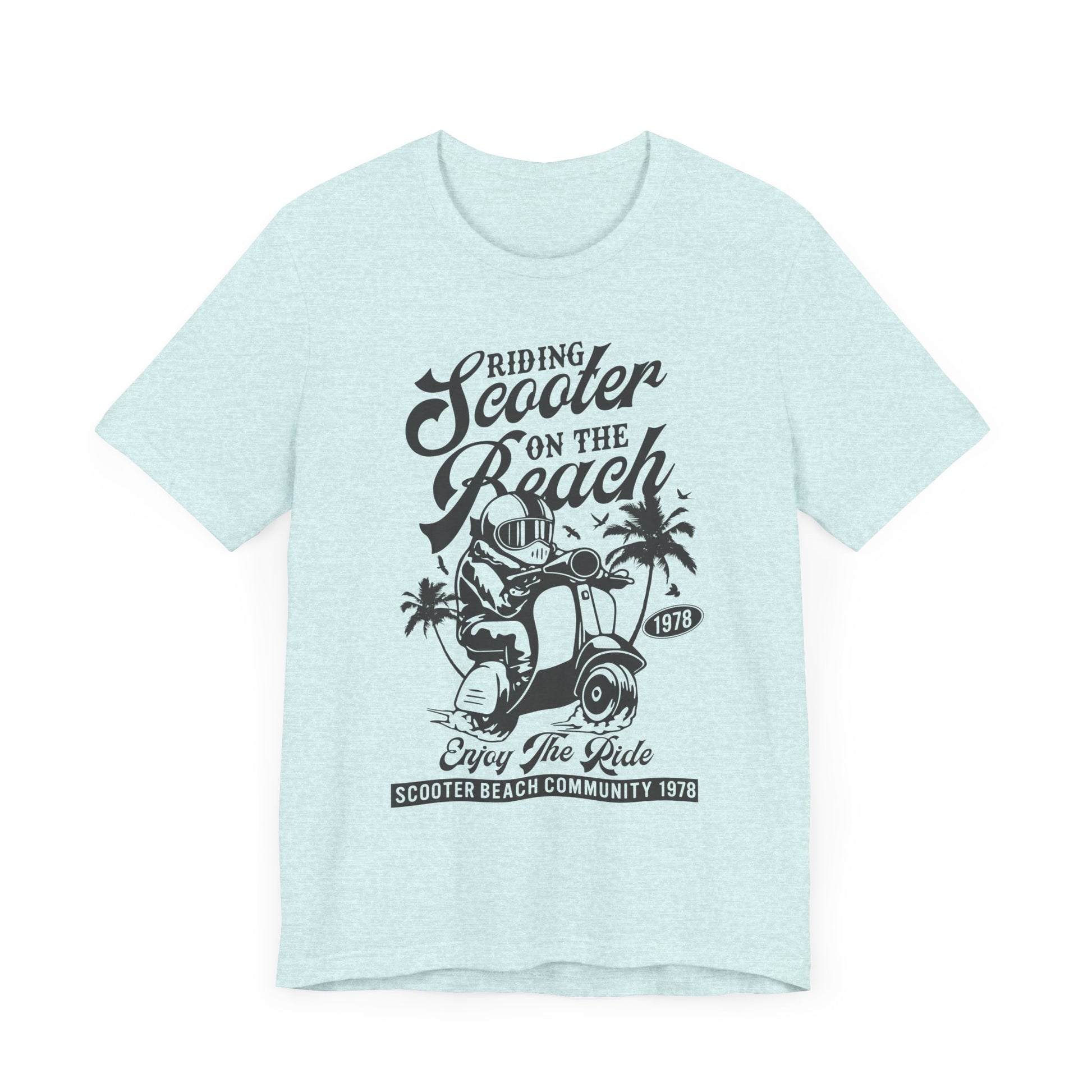 Ride into relaxation with our "Riding Scooter on the Beach" tee. Order yours today and let the good vibes roll!
