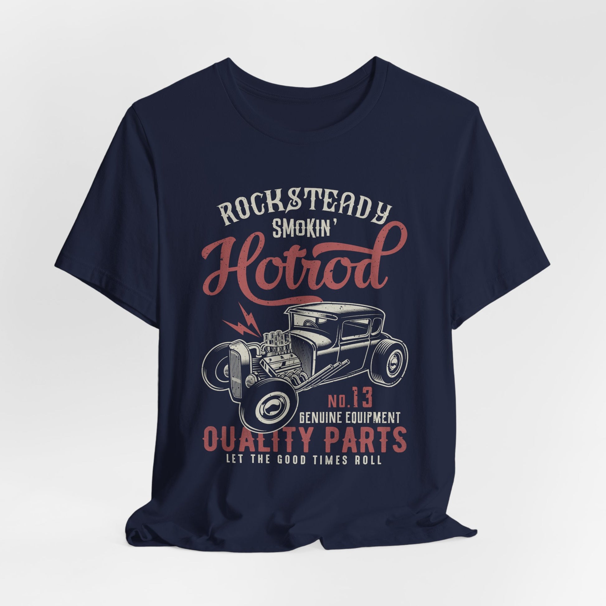 ✔️ Bold Hotrod Graphic – Features a striking "Rock & Teady, Smocking Hotrod, N13, Genuine Equipment, Quality Parts" design that’s made for gearheads who live for speed.