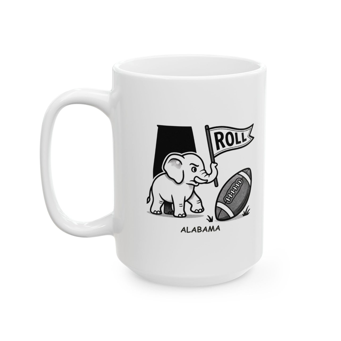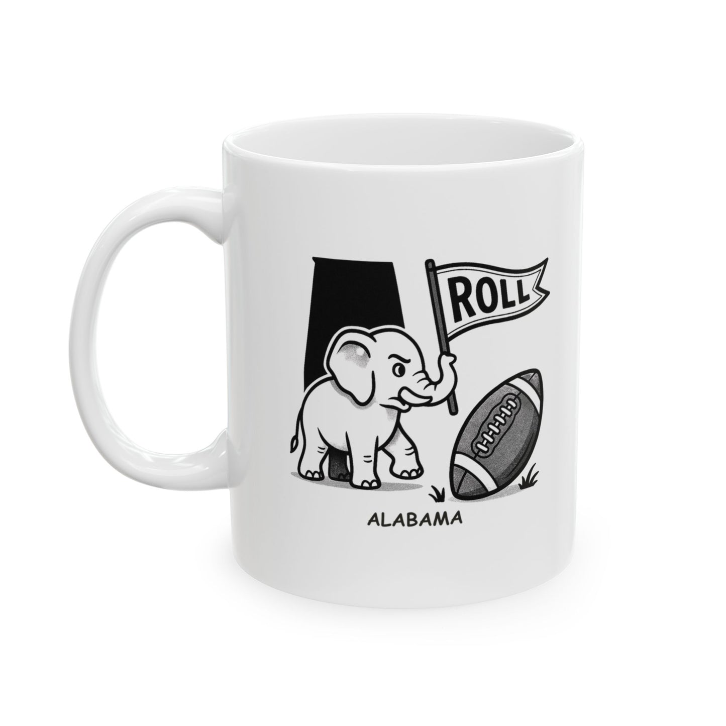 Show your Alabama pride with this fun and spirited mug. Featuring the phrase 'Roll Tide... or just roll with it,' it's the perfect way to embrace the team's legendary spirit, whether you're a die-hard fan or just rolling with the flow. Made from durable ceramic and available in 11oz and 15oz sizes, it's ideal for enjoying your coffee, tea, or game day beverage in style.