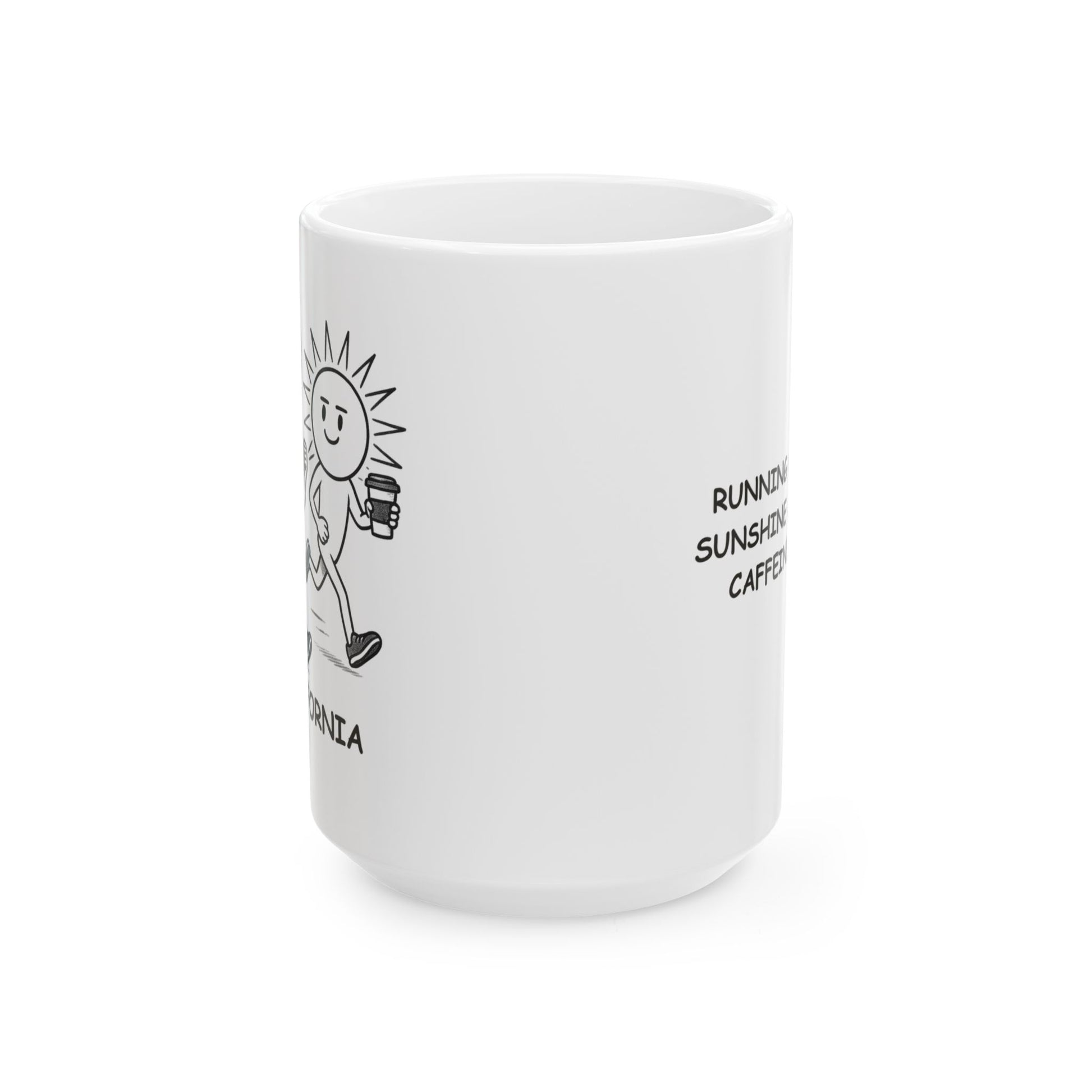 Fuel your day the California way! Our "Running on sunshine and caffeine." Ceramic Mug is perfect for early risers, go-getters, and anyone who powers through life with a little sunshine and a lot of coffee. Whether you're starting your morning or pushing through the afternoon slump, this mug delivers good vibes and a much-needed caffeine boost.
