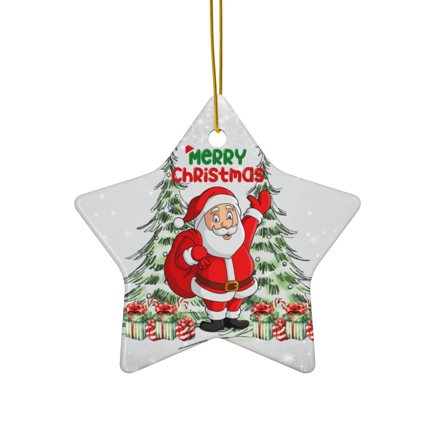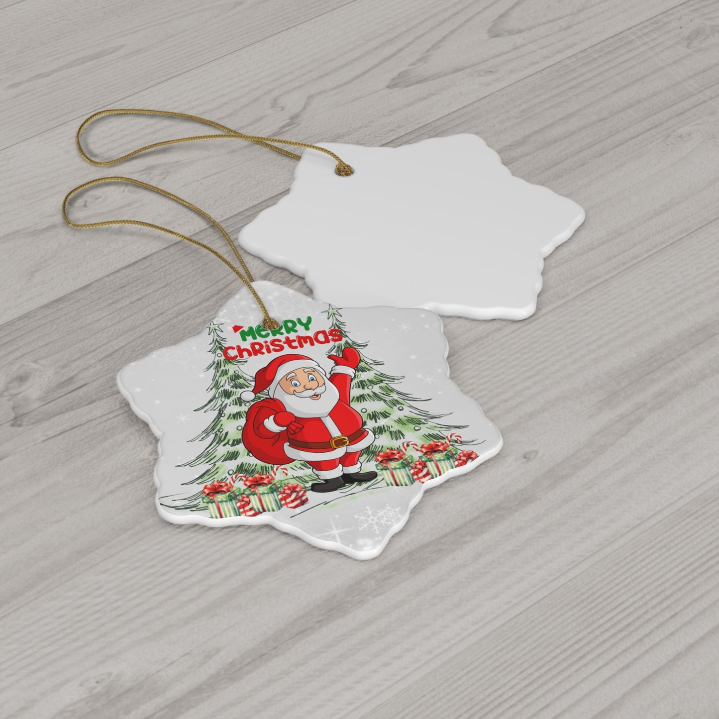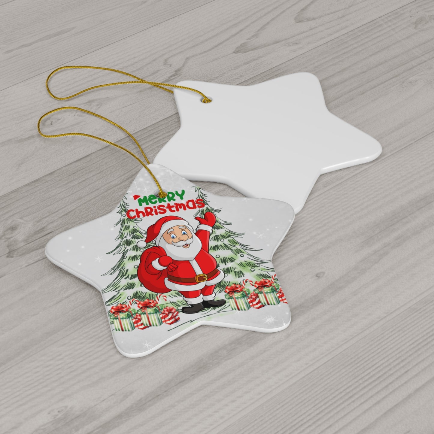 Crafted from high-quality ceramic, each ornament comes in four unique shapes: a classic round, a cheerful star, a whimsical heart, and a traditional tree shape. Each piece is beautifully designed to capture Santa’s festive spirit, making them perfect for hanging on your tree, embellishing gift packages, or displaying throughout your home.