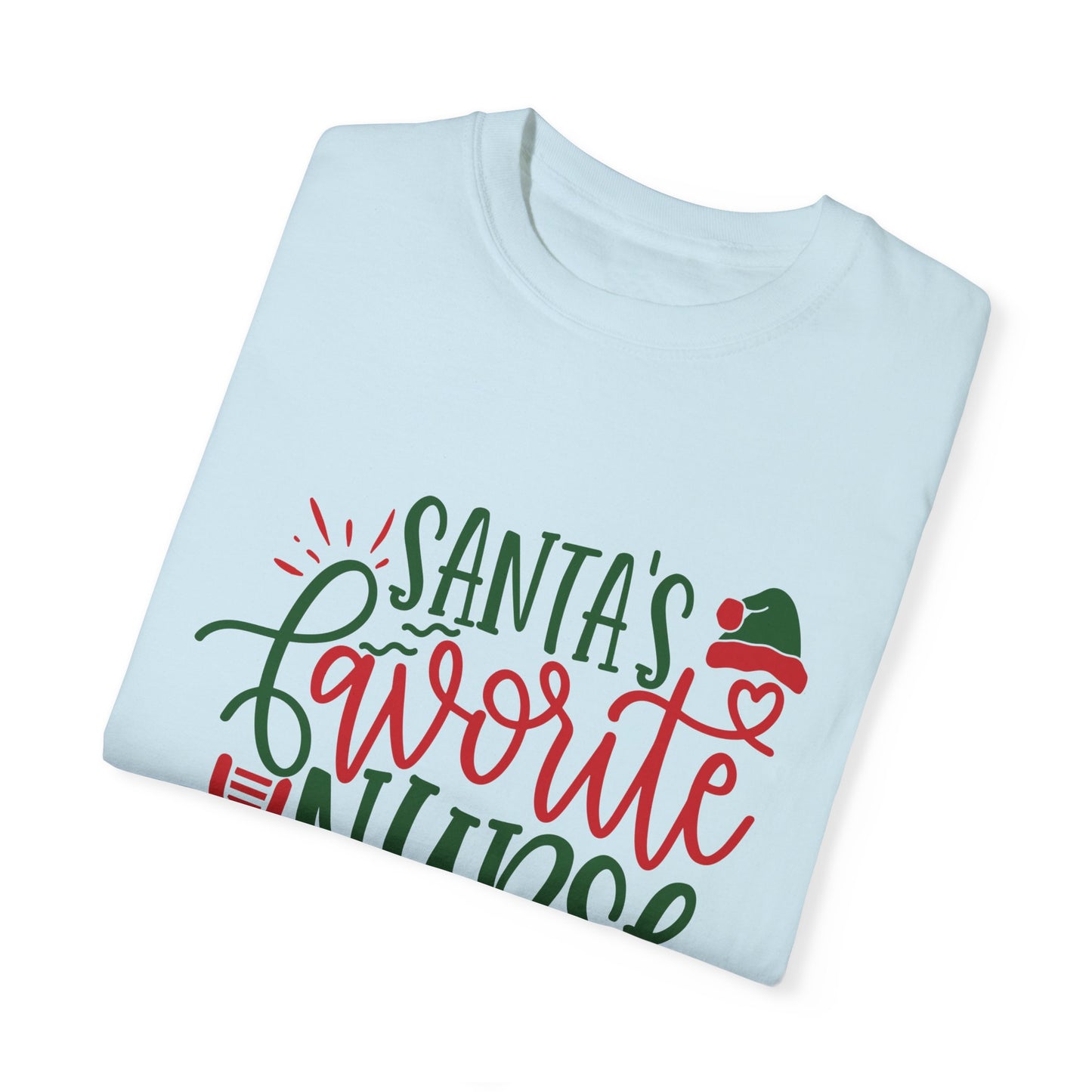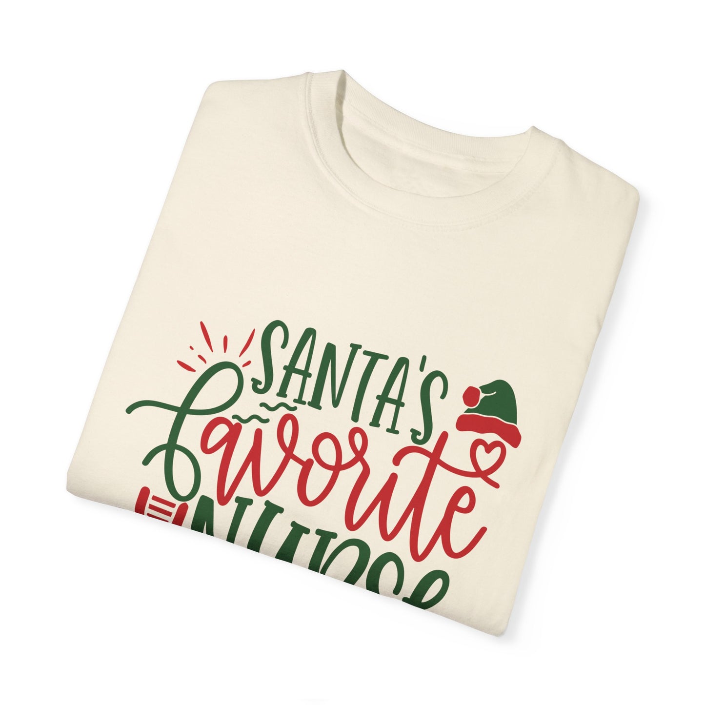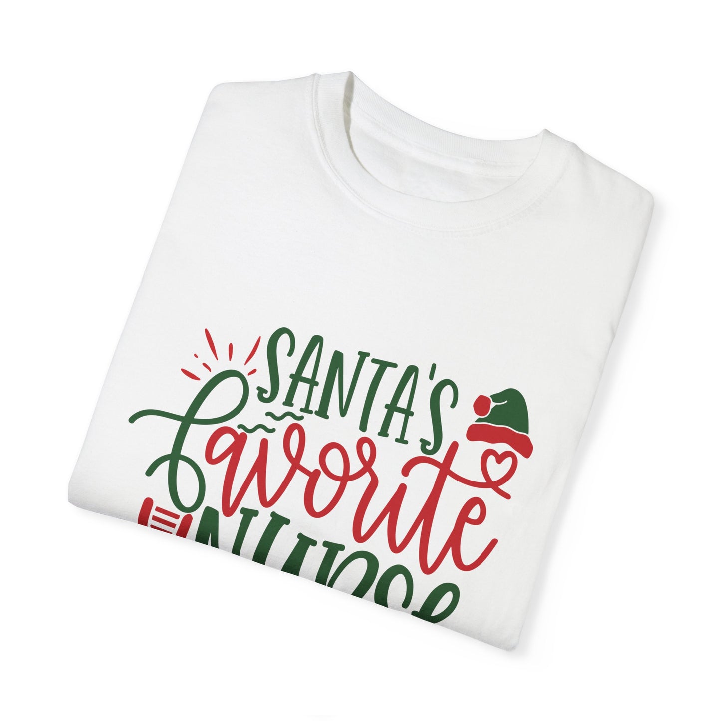 Santa's Favorite Nurse - Unisex Garment-Dyed T-shirt - 10352