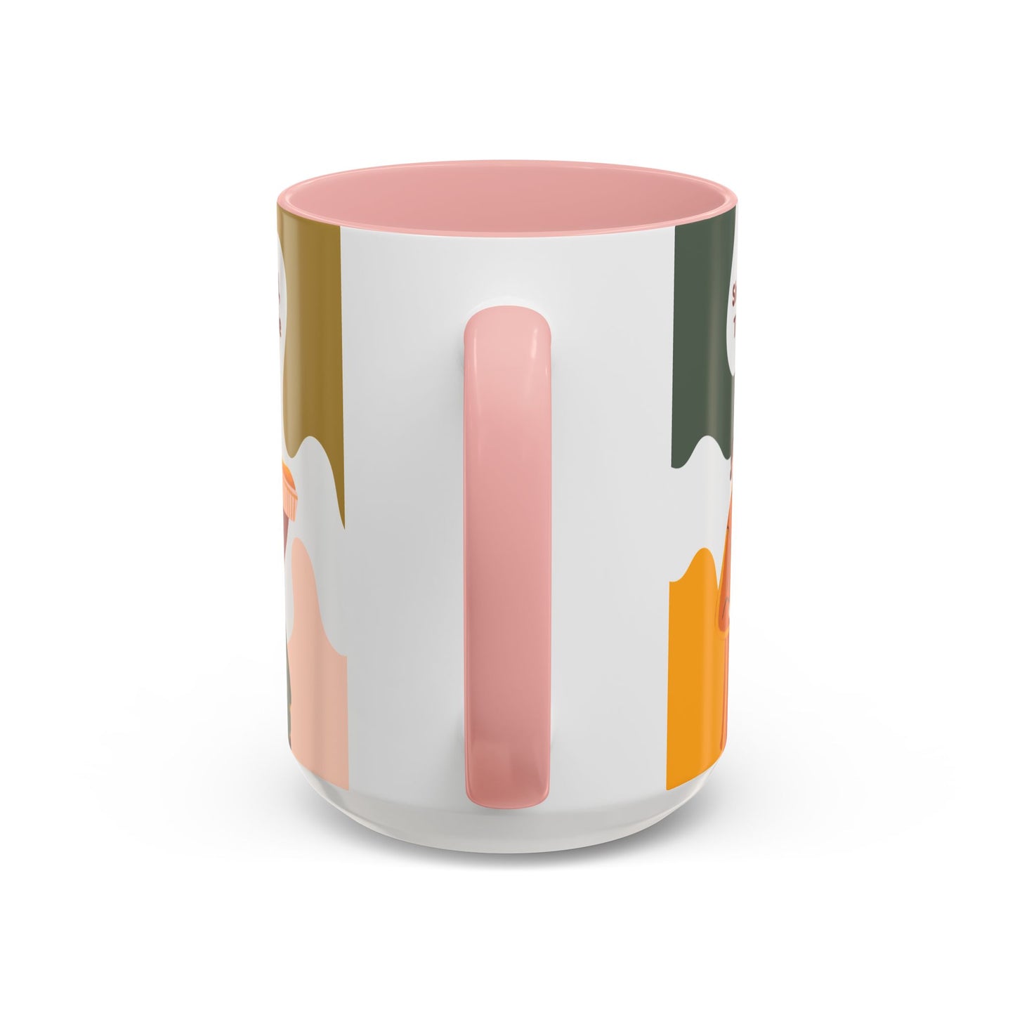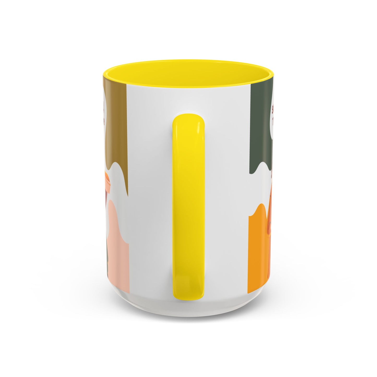 Available in 11oz and 15oz sizes, this durable ceramic mug is microwave and dishwasher safe for convenience. Its vibrant accent handle and interior add a cheerful touch to your Thanksgiving gatherings.