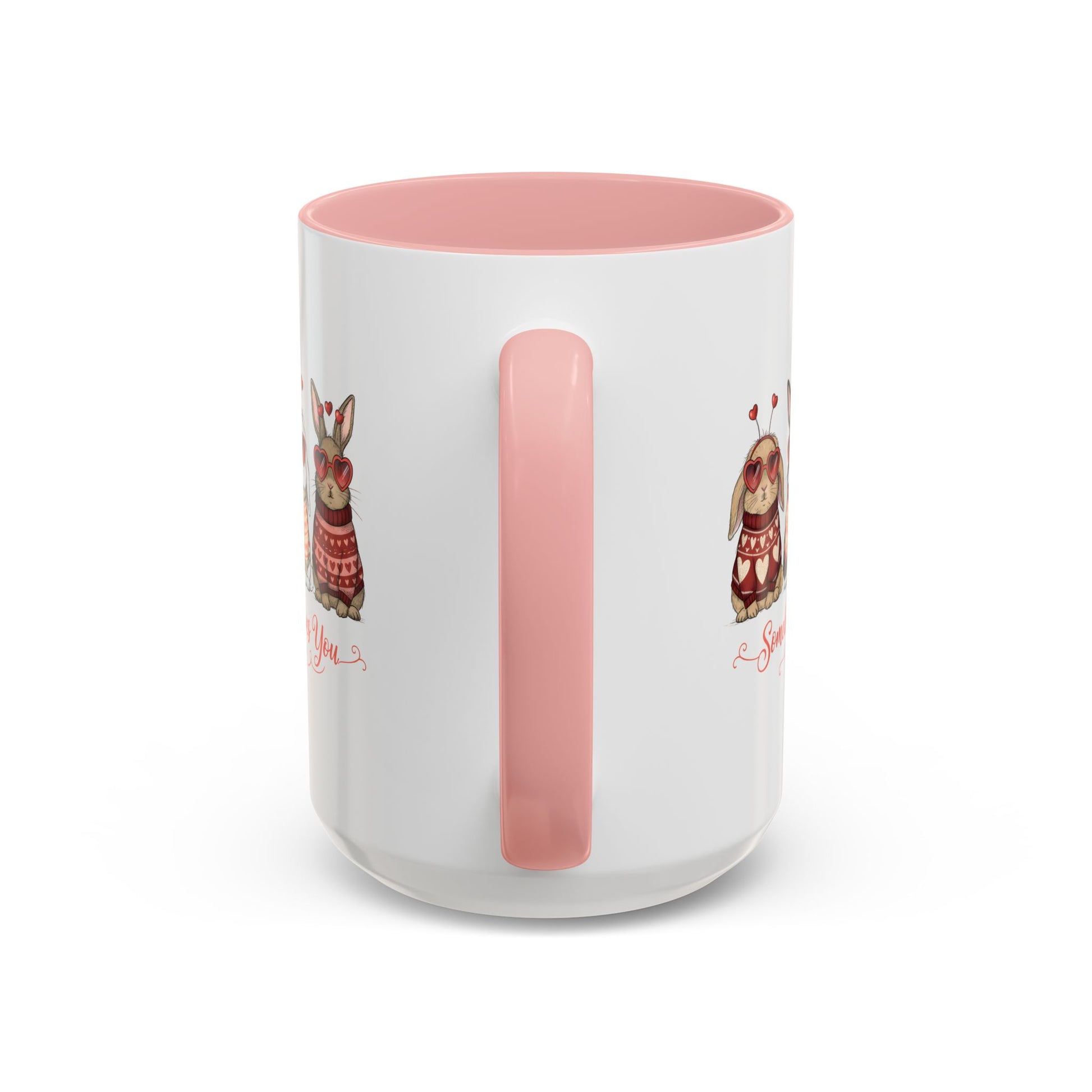 Featuring four charming little bunnies wearing heart-shaped sunglasses and cozy Valentine sweaters, this mug is full of warm, romantic vibes — perfect for coffee, tea, hot chocolate, or any cozy morning drink.