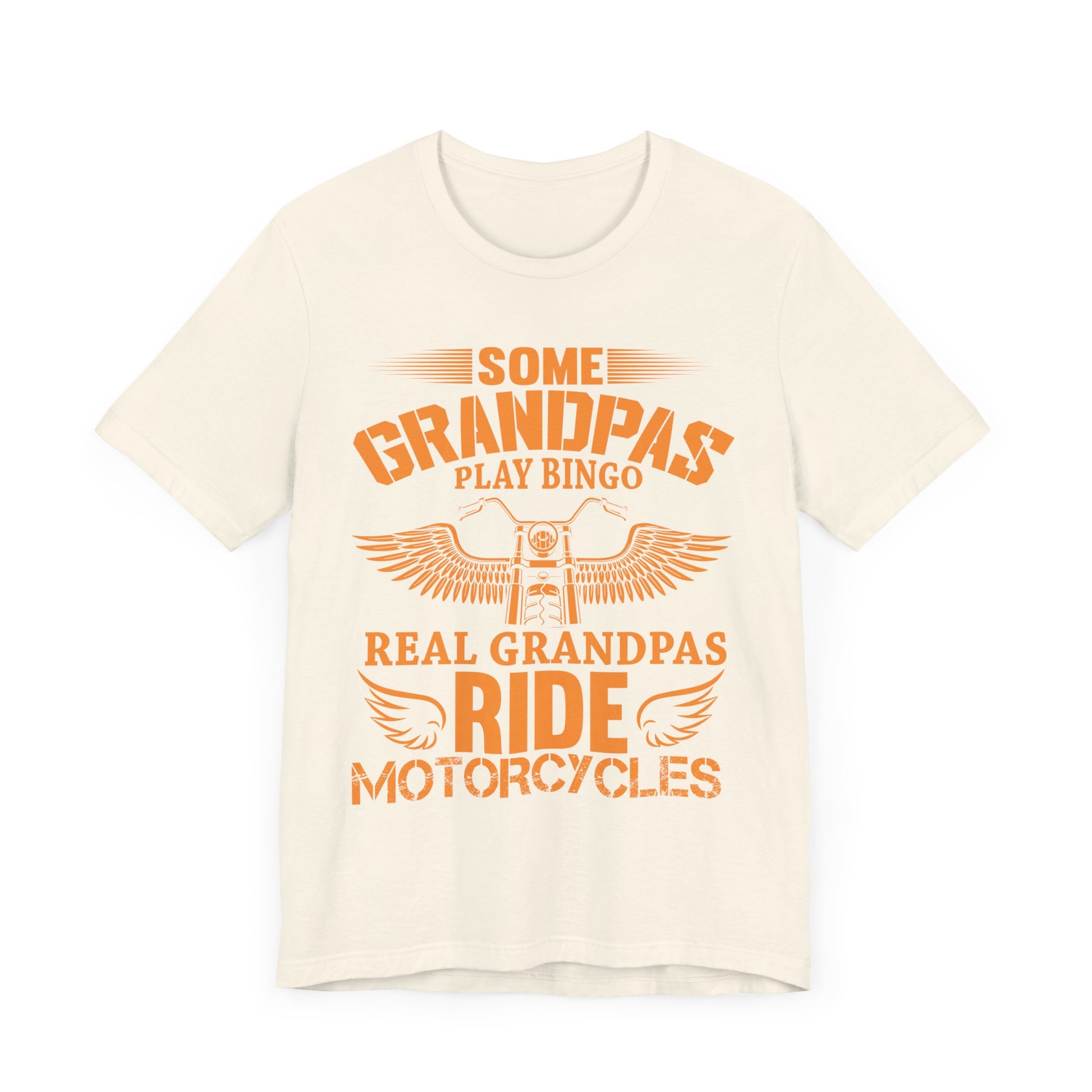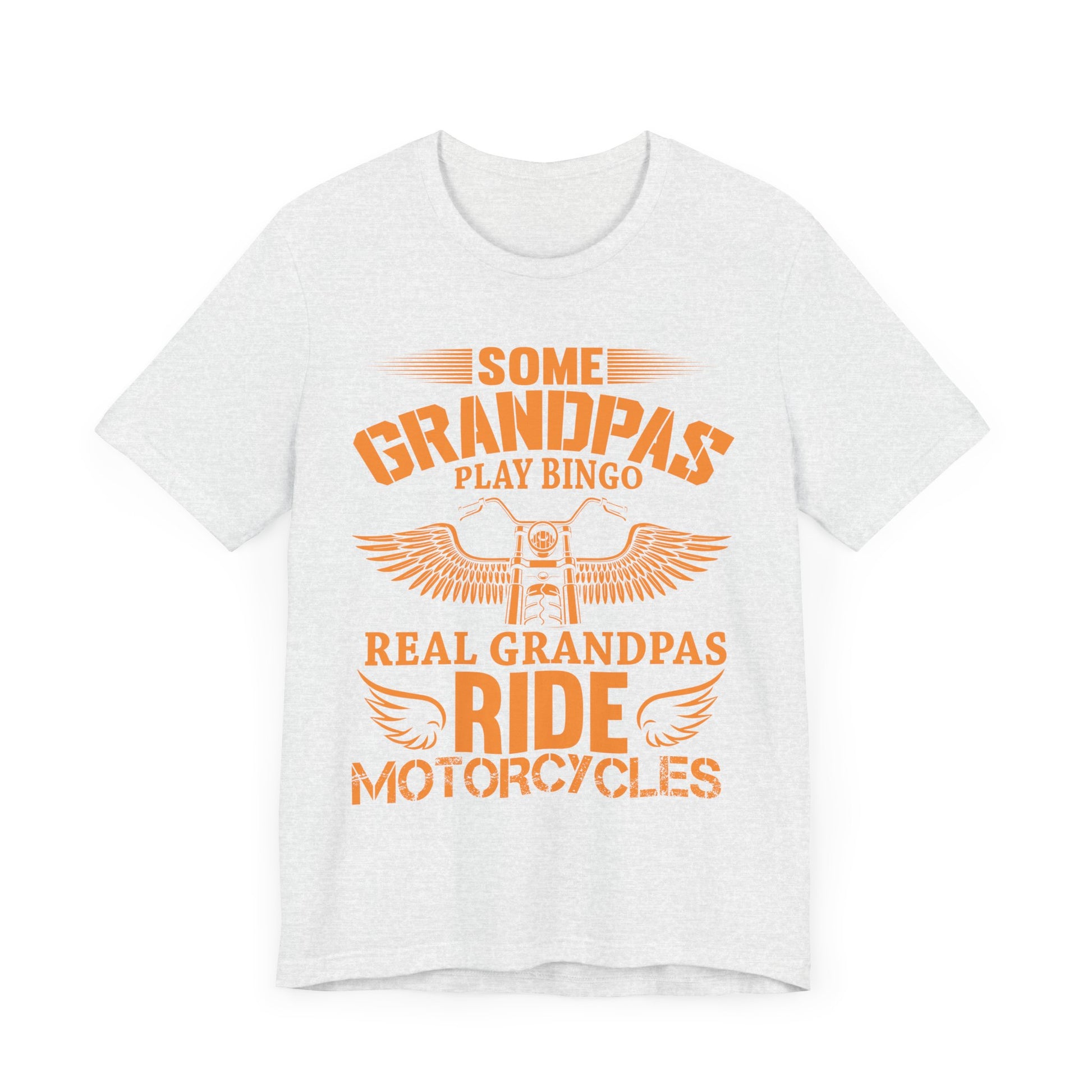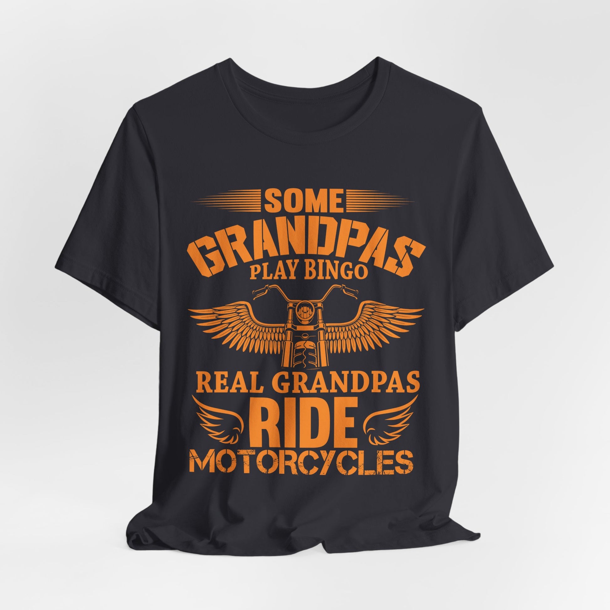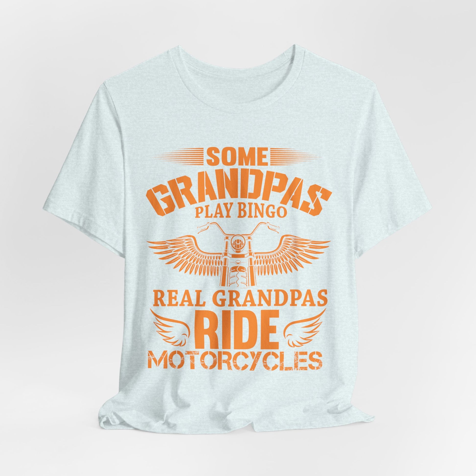 Crafted from soft, high-quality ring-spun cotton, this shirt offers a comfortable fit that’s perfect for any ride or casual day out. The bold, eye-catching design features the phrase "Some Grandpas Play Bingo, Real Grandpas Ride Motorcycles" alongside a cool motorcycle graphic, making it a standout piece for any biker grandpa.