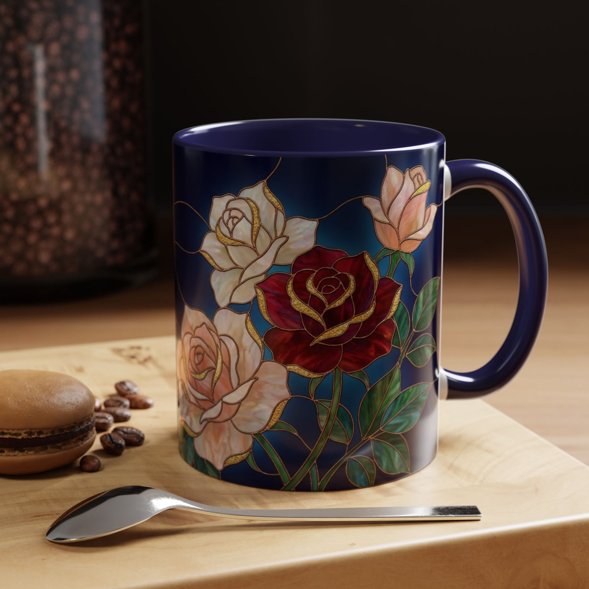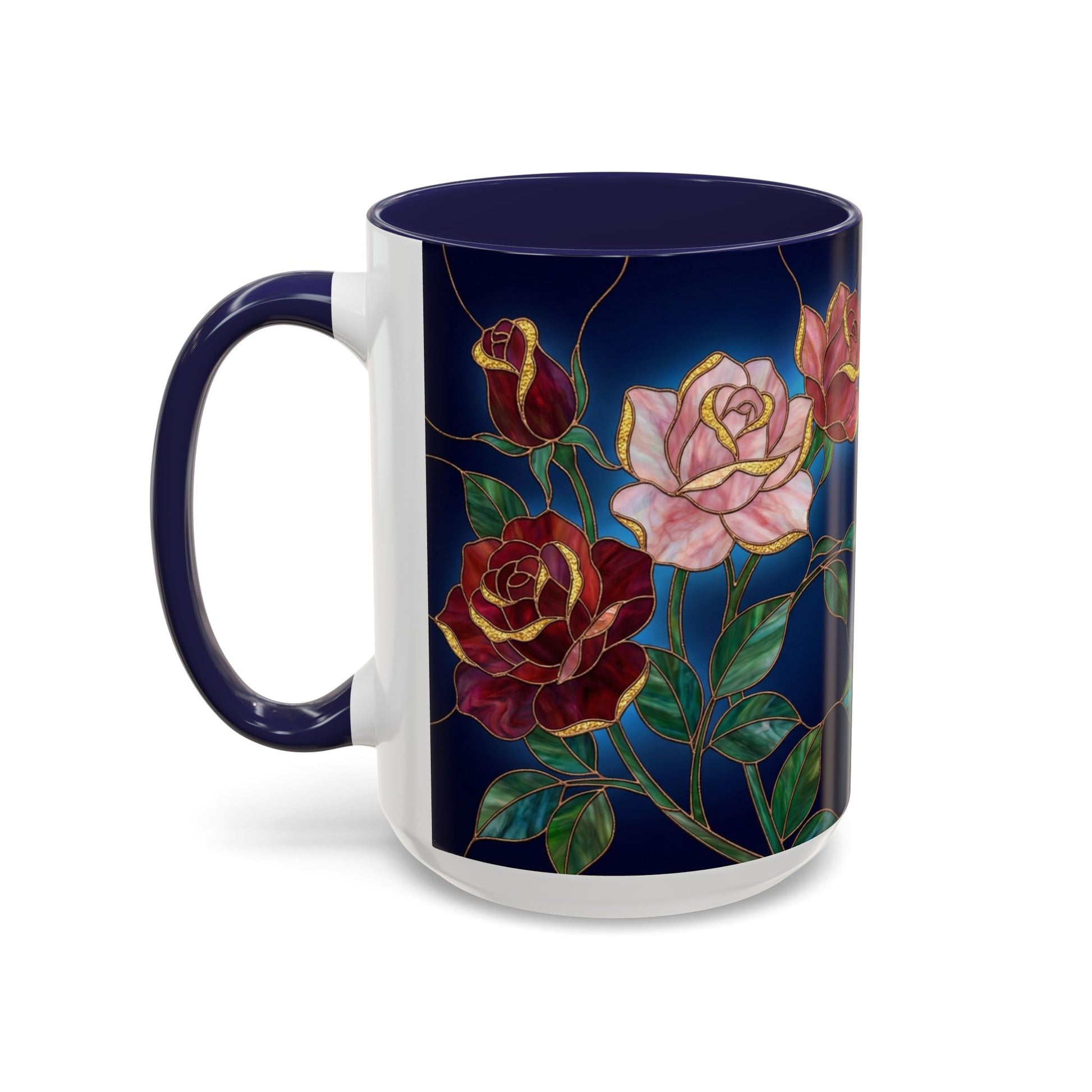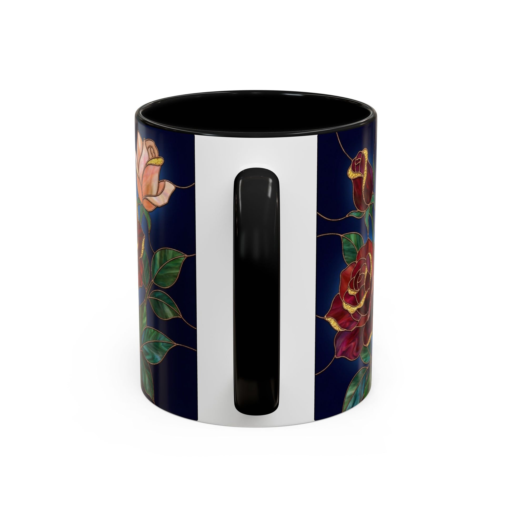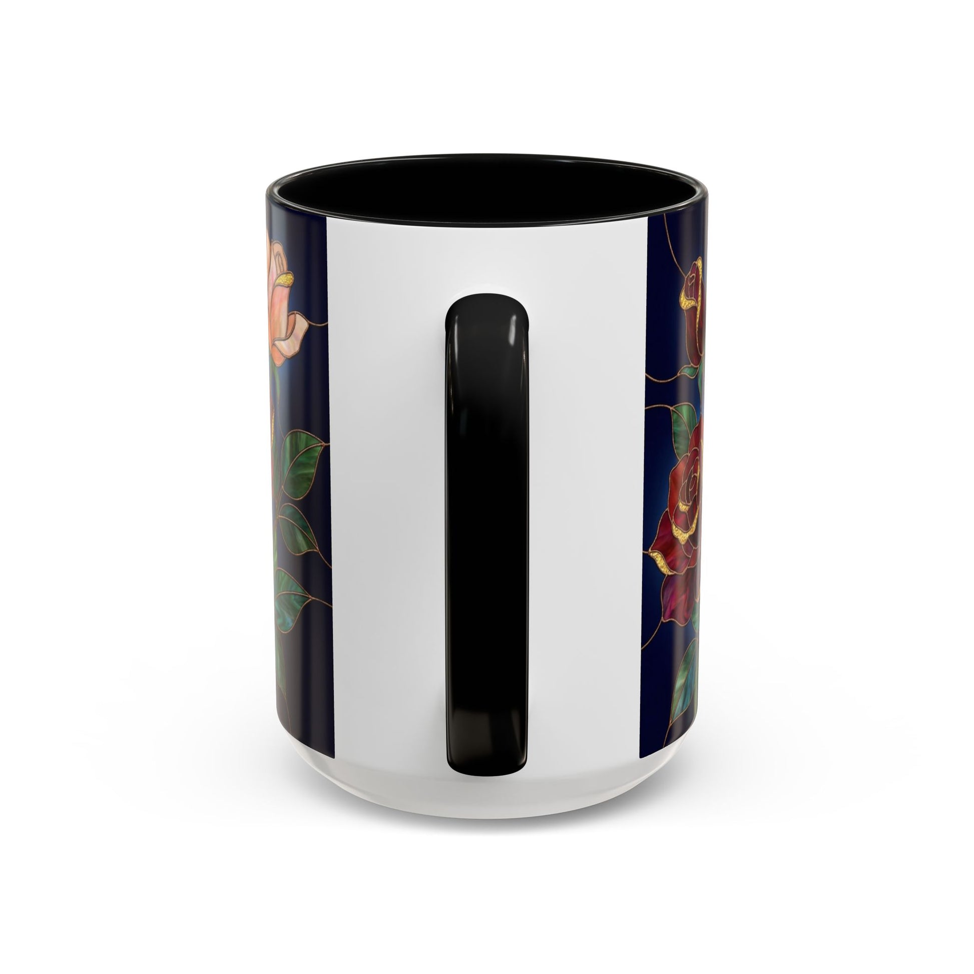 Rose Floral Accent Coffee Mug – Stained Glass Design (11/15oz) - 14551