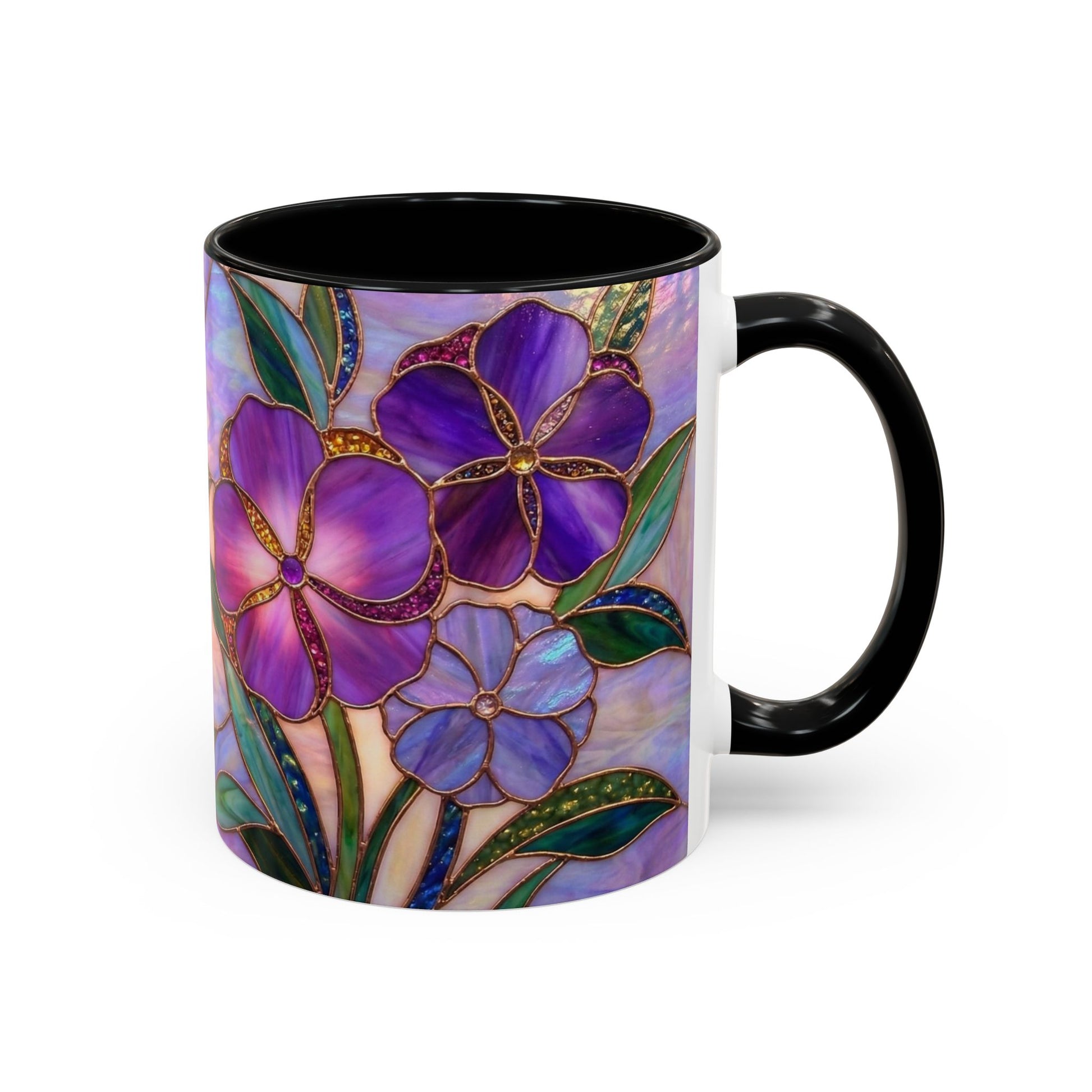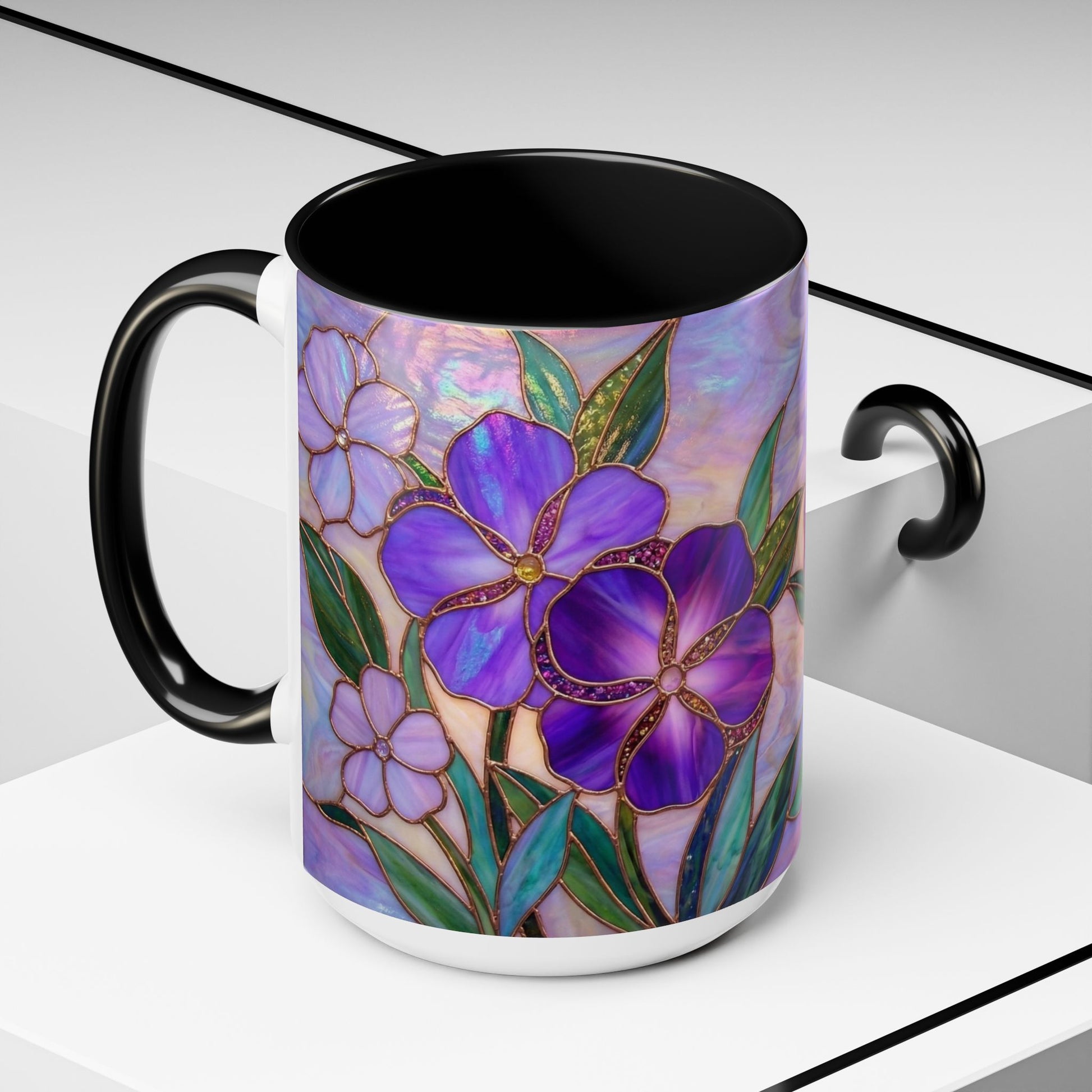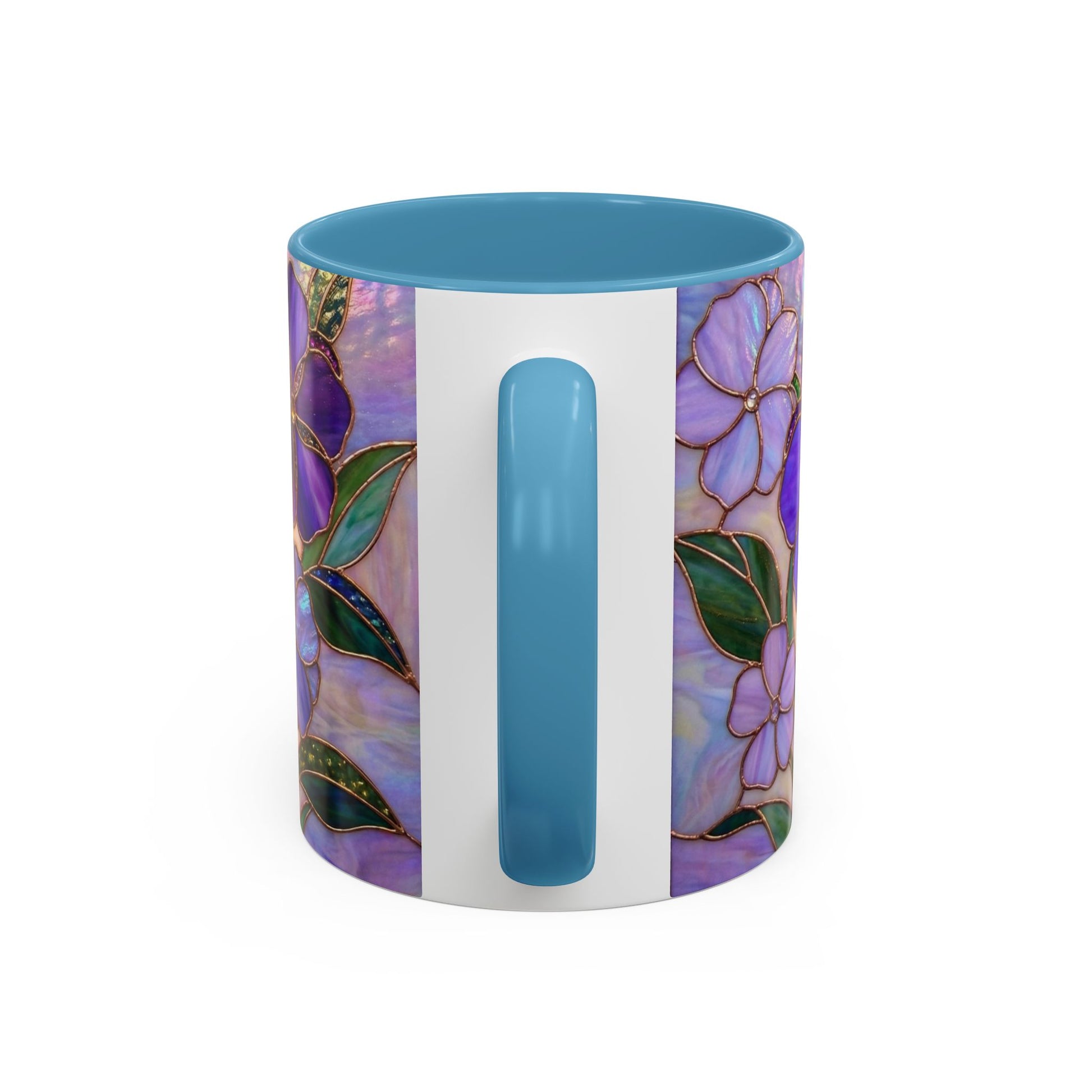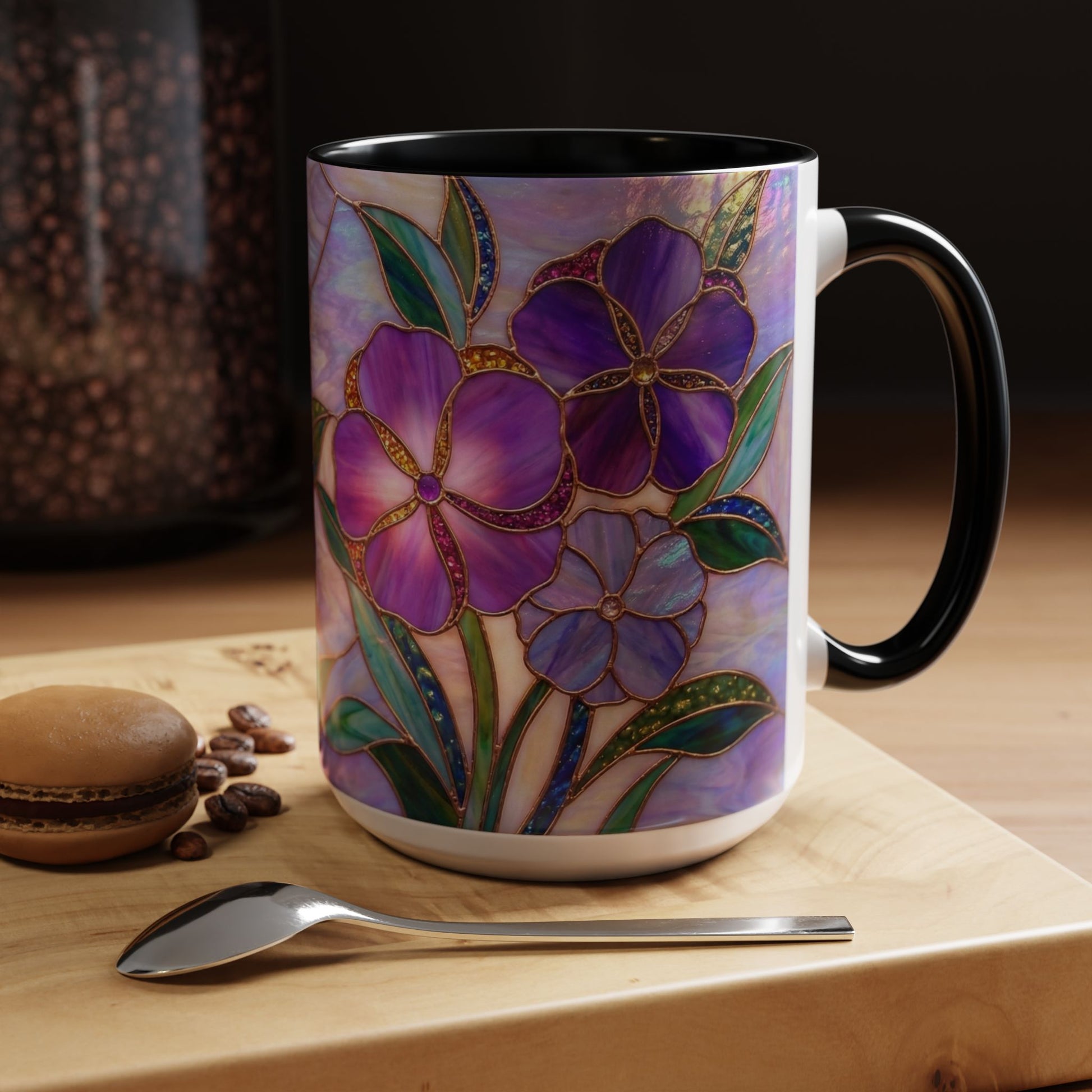 Stained Glass Violet Flowers Accent Coffee Mug, 11/15oz - 14537