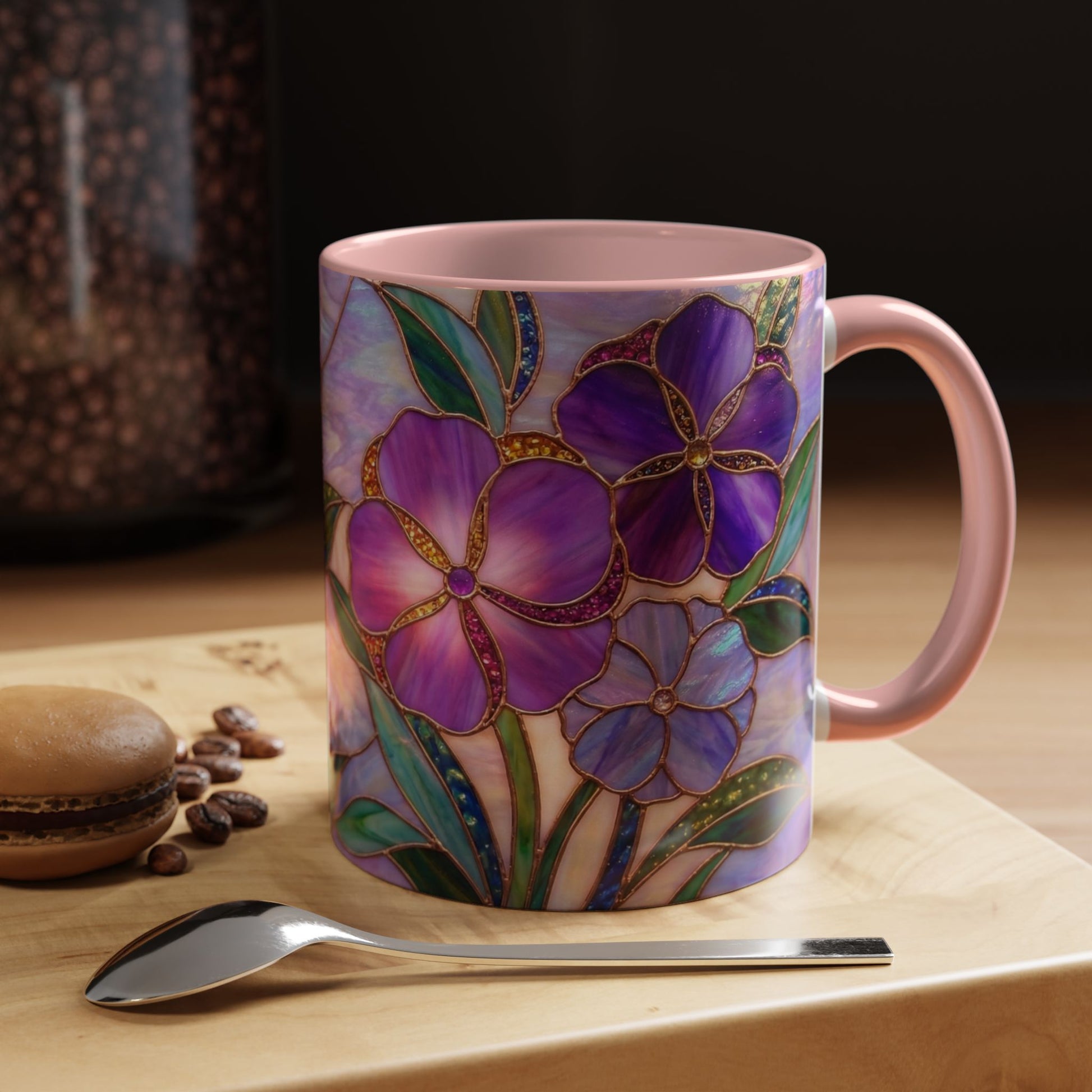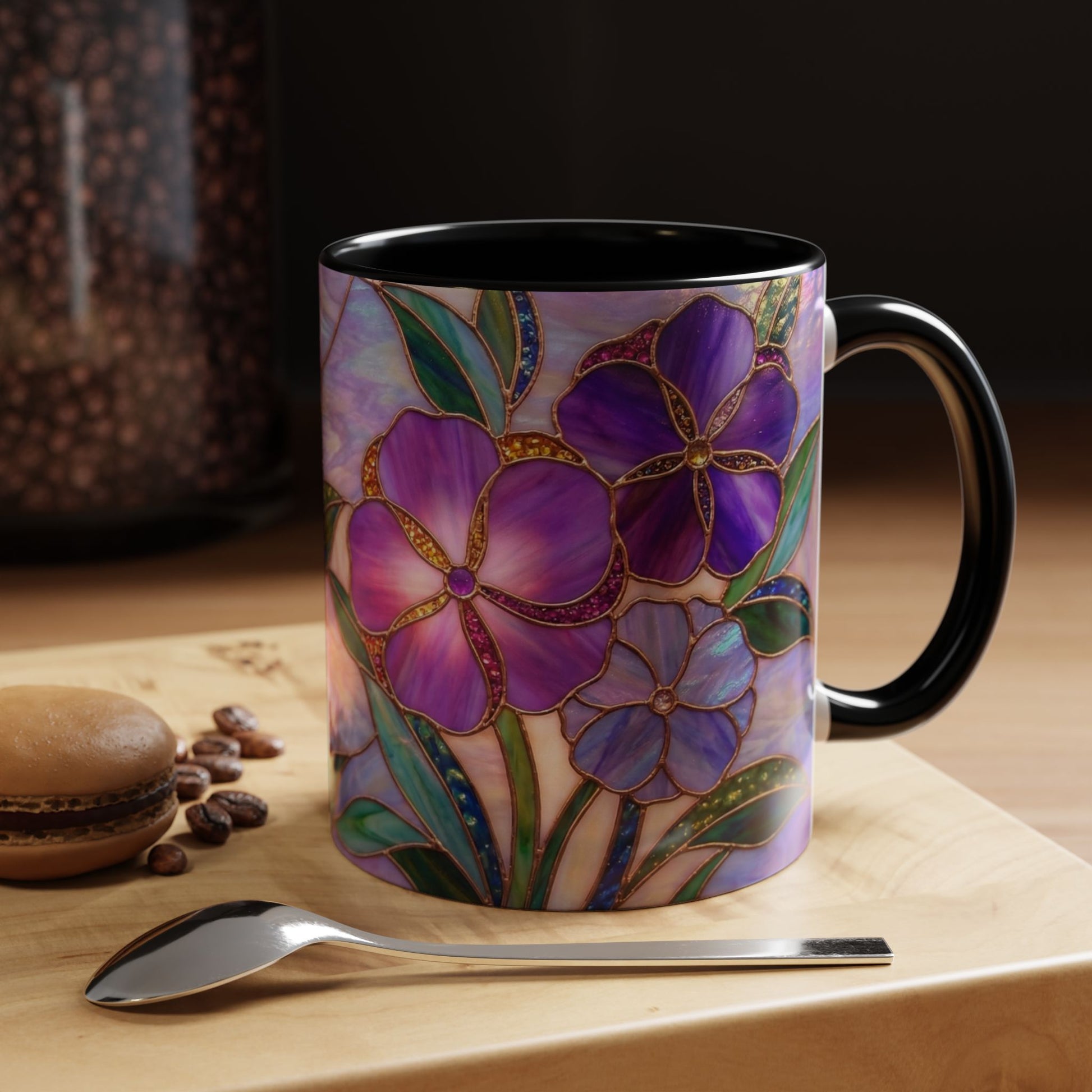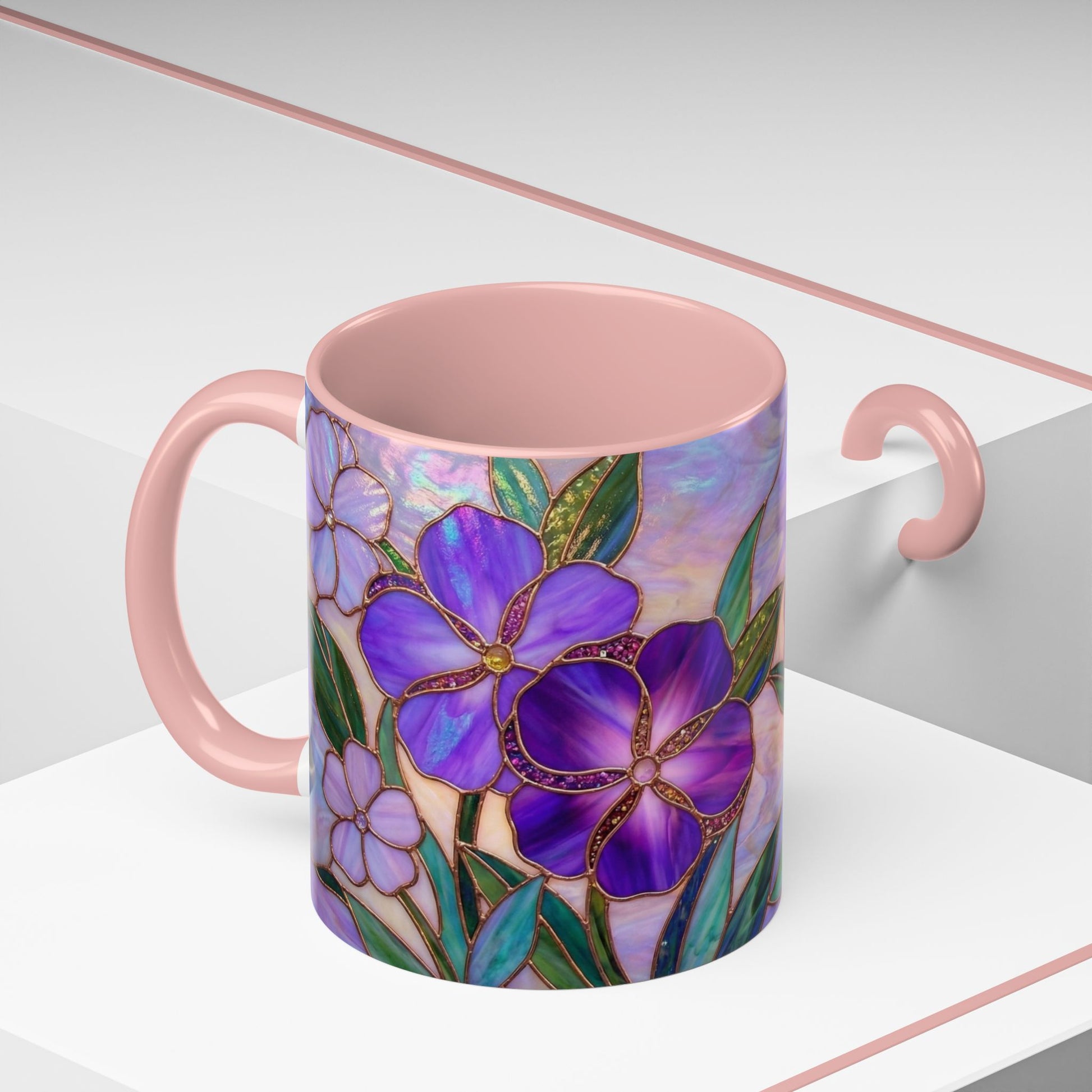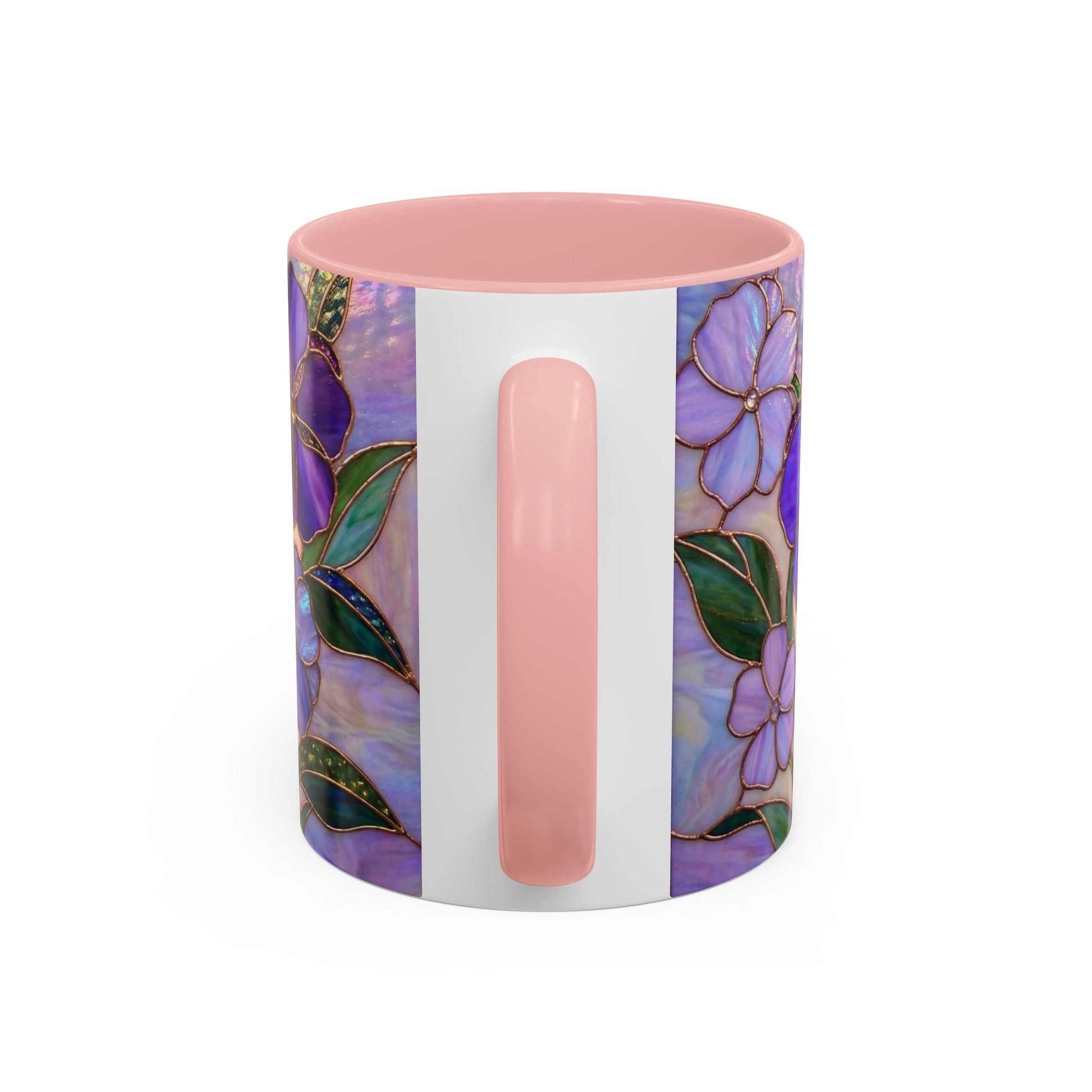 Stained Glass Violet Flowers Accent Coffee Mug, 11/15oz - 14537