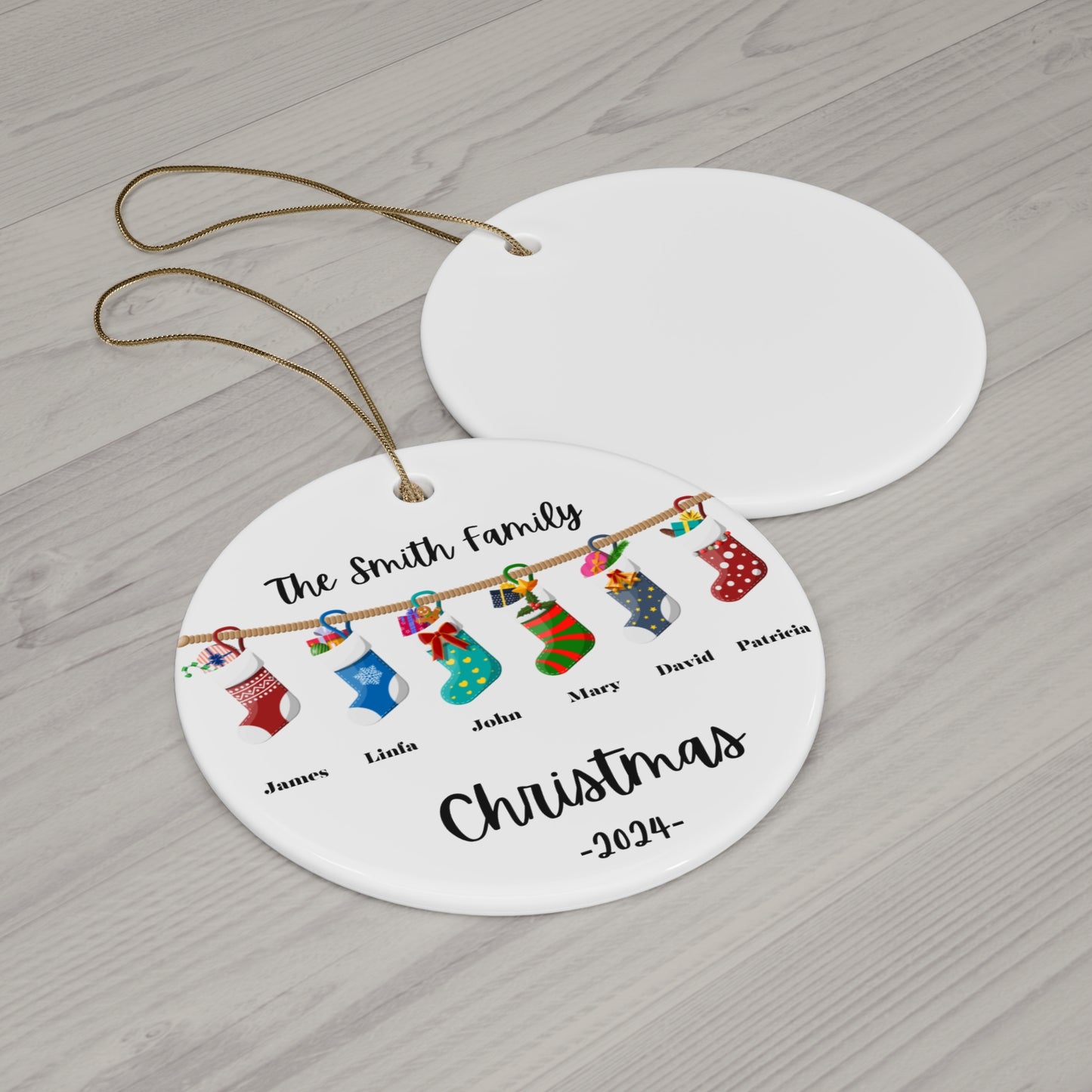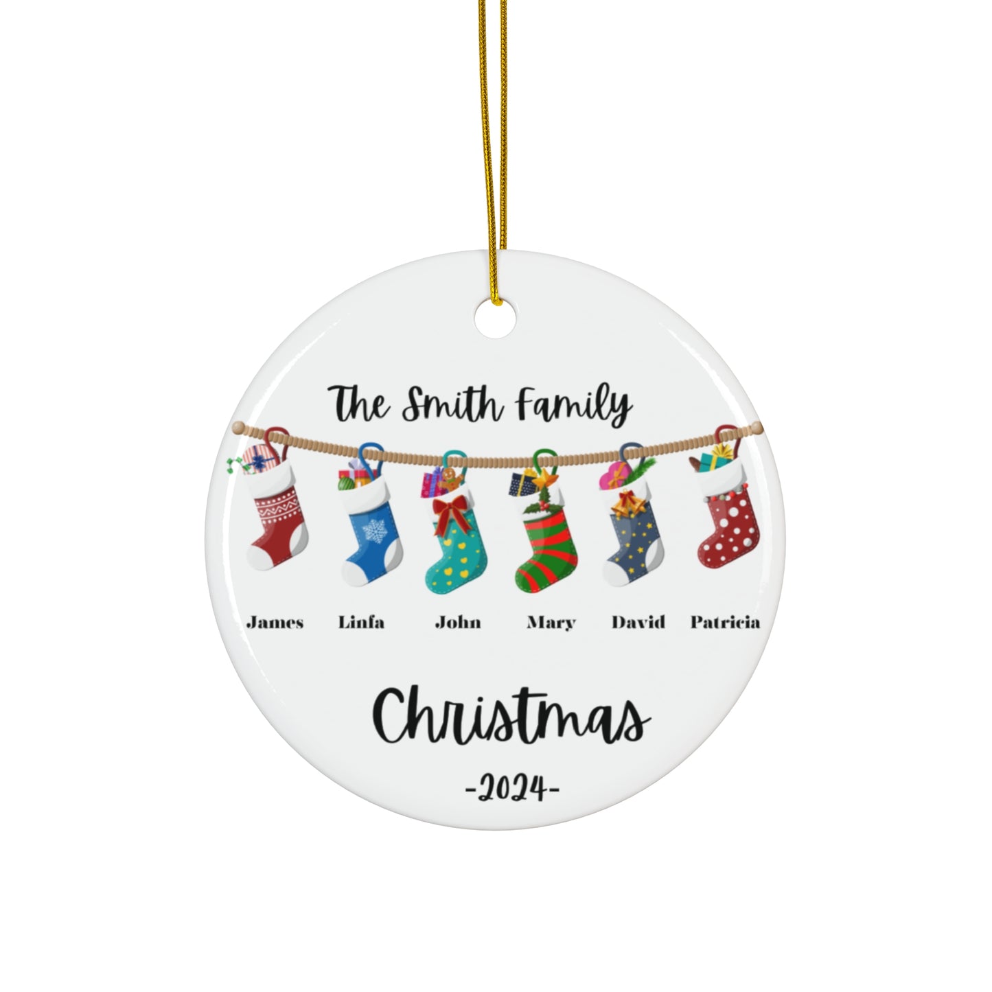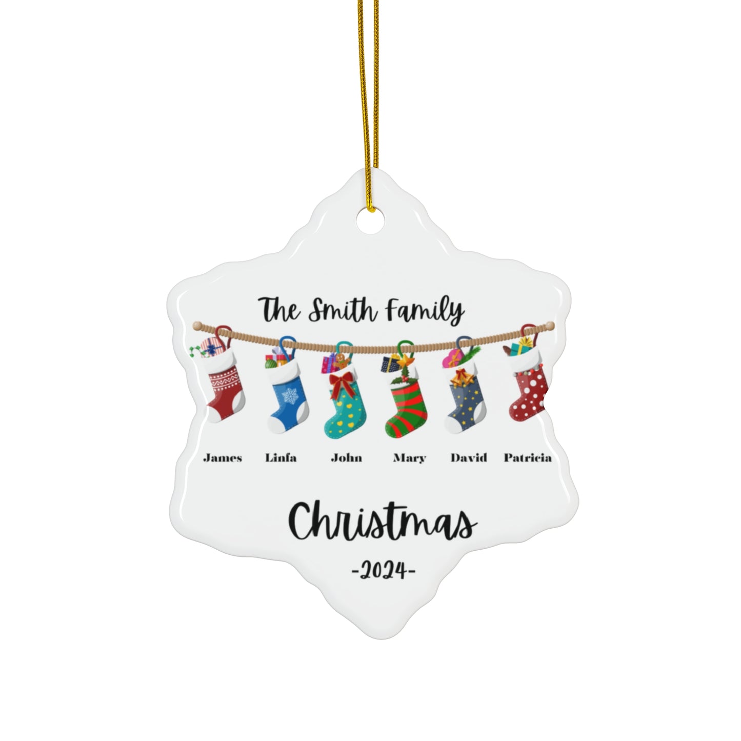 Stockings, Family of 6, Customizable - Ceramic Ornament, 2 Shapes, Circle & Snowflake - 10090