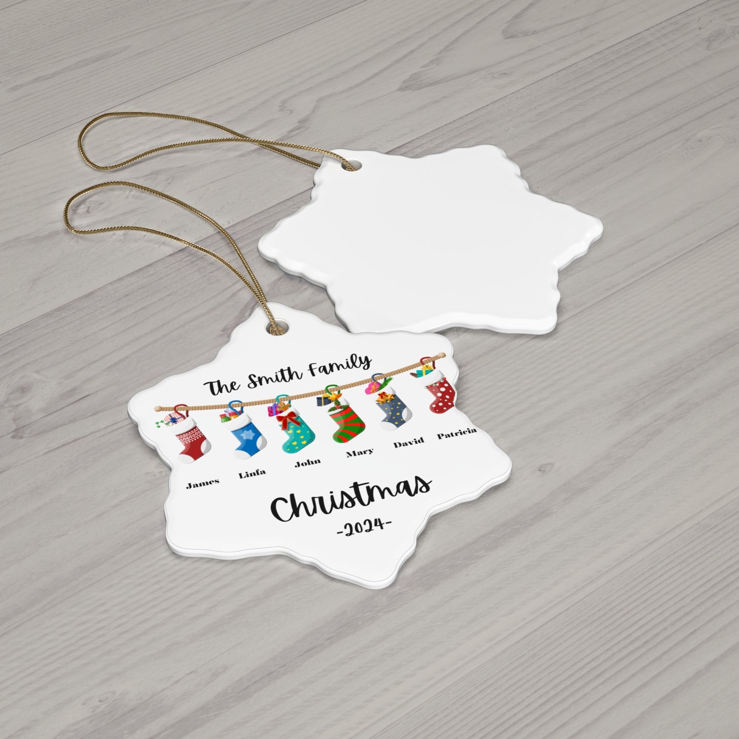 Celebrate togetherness this holiday season with our Family Stocking Ornament designed for families of six! Available in two beautiful shapes—classic Circle and charming Snowflake—this ceramic ornament adds a personal touch to any Christmas tree. Each stocking is crafted with love, symbolizing each member of the family, making this ornament a timeless keepsake to cherish for years.