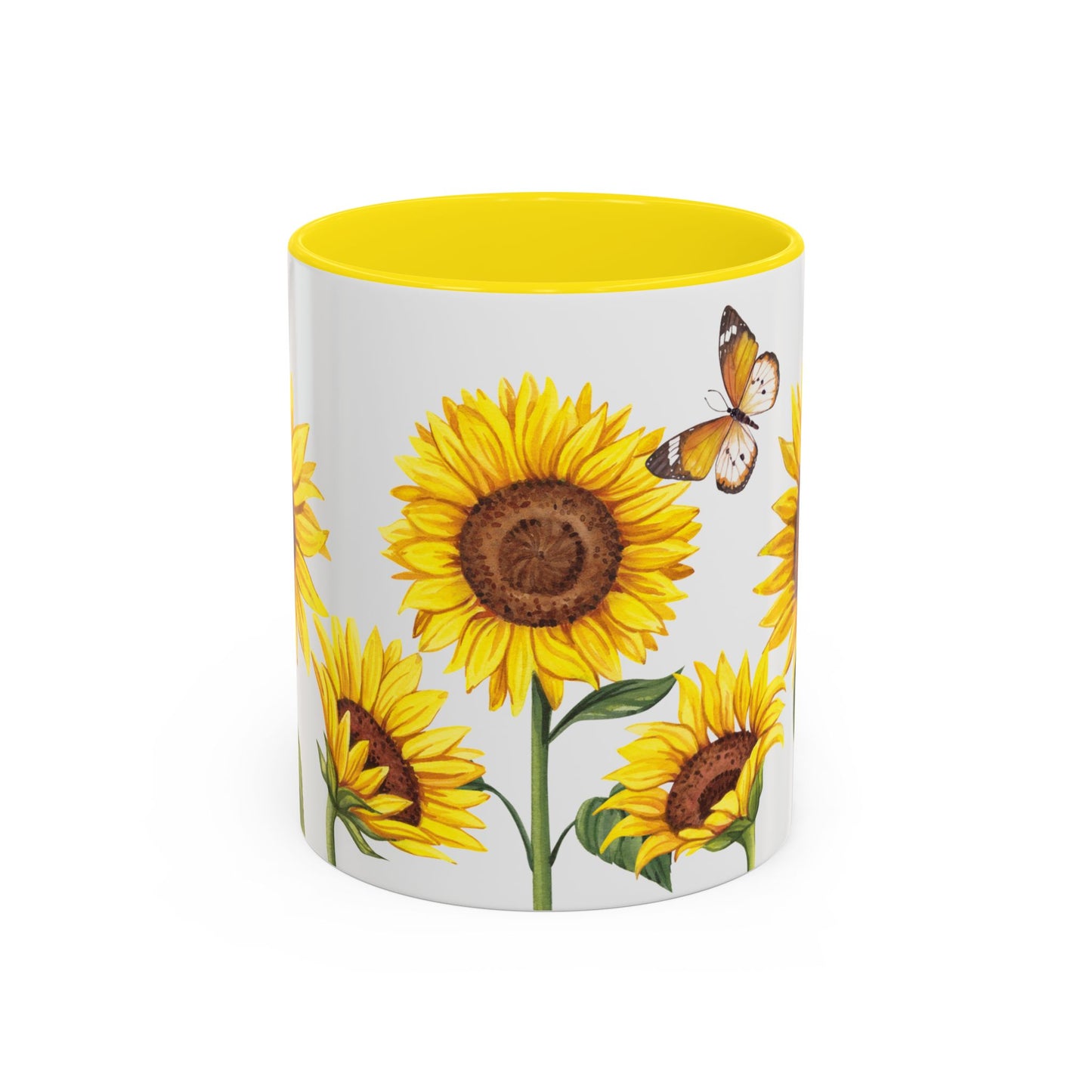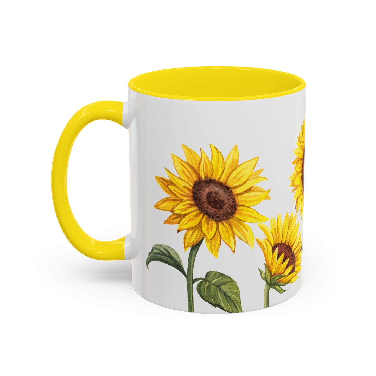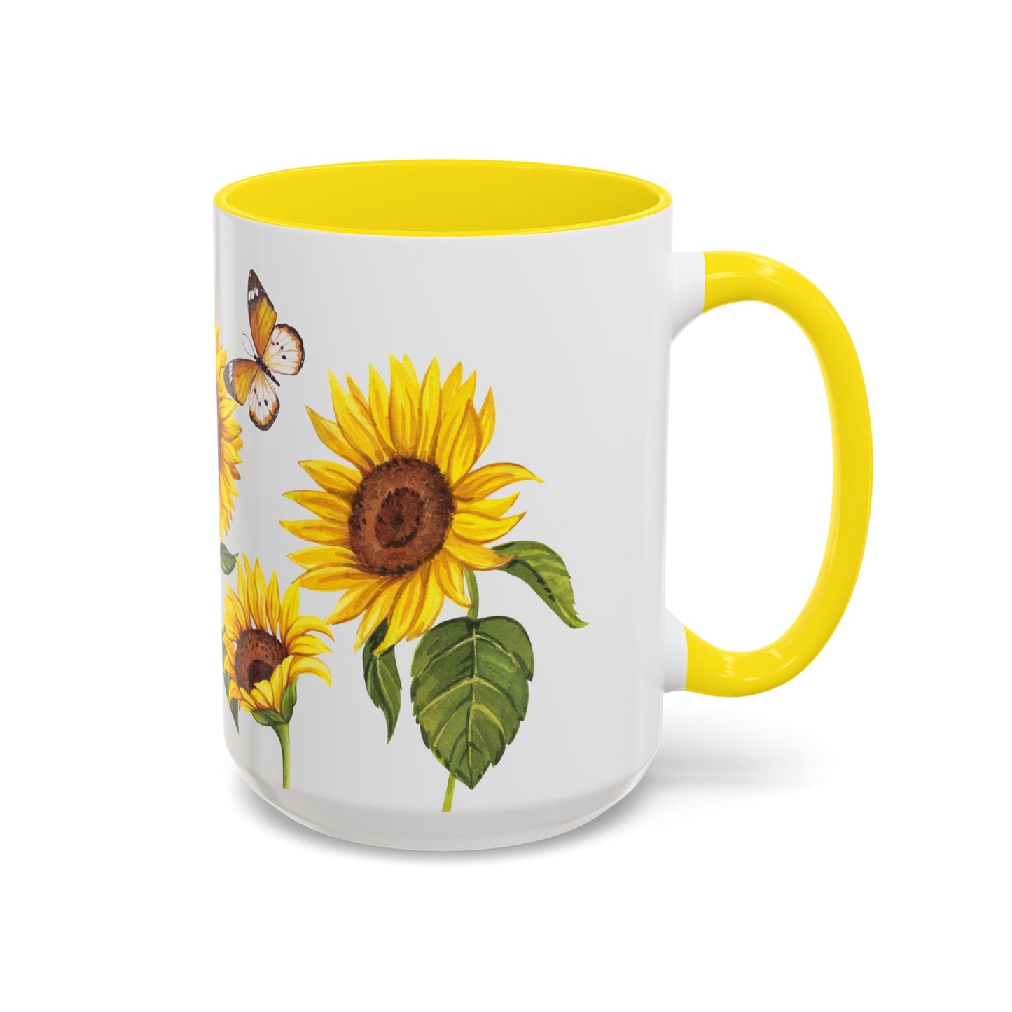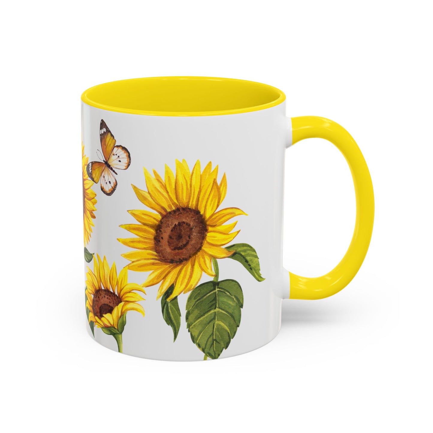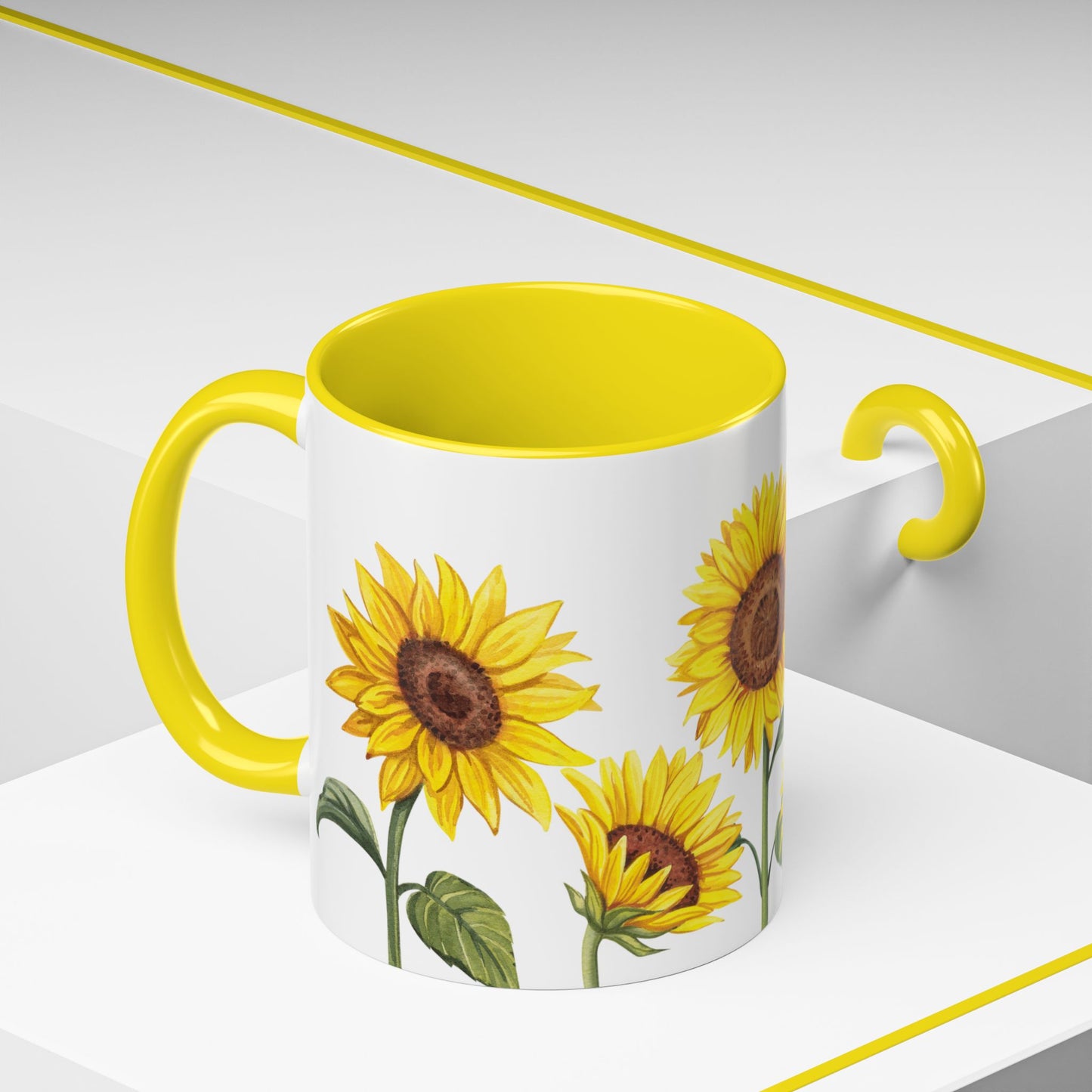 Bring a burst of sunshine to your day with the Sunflowers accent coffee mug! Featuring a vibrant sunflower design, this mug is a perfect reminder of the warmth and positivity that flowers bring. Whether you're enjoying your morning coffee, tea, or any hot beverage, this mug adds a cheerful touch to your daily routine. The colorful accent on the handle and rim adds an extra pop, making it a beautiful and unique addition to your mug collection. Available in both 11oz and 15oz sizes, it's perfect for sipping, gifting, or simply enjoying the beauty of nature in every sip.