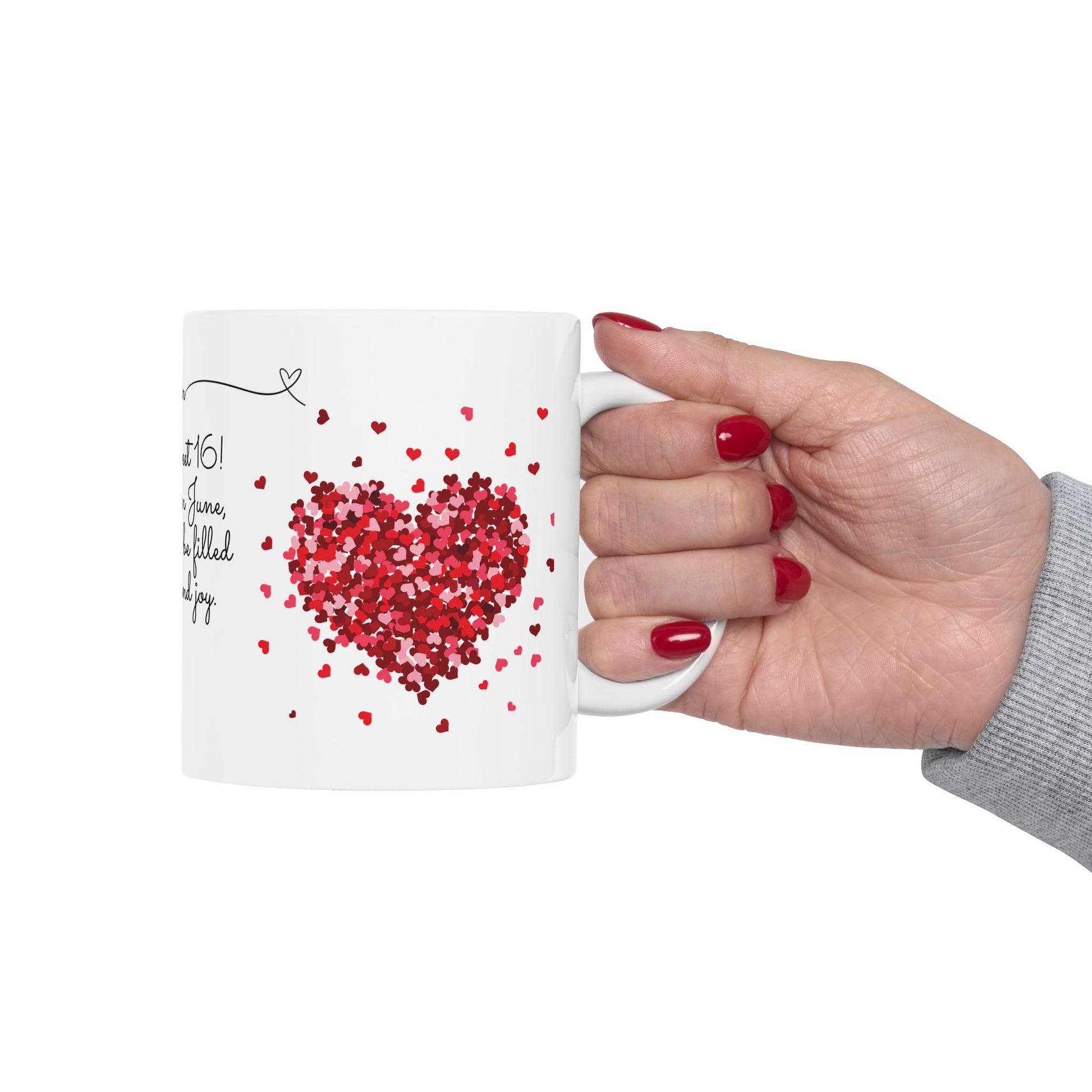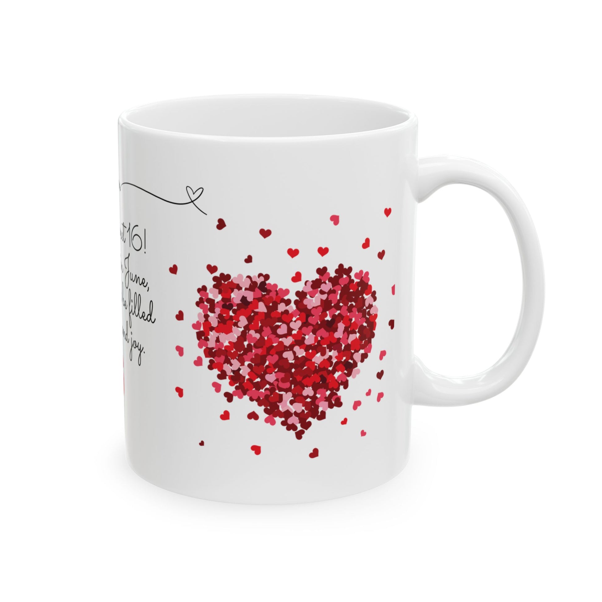 Celebrate a Sweet 16 birthday with elegance and a personal touch with our "Sweet 16, June, Roses" Customized Ceramic Mug. Perfect for a June birthday, this beautifully crafted mug combines practicality with a heartfelt design, making it an unforgettable gift.