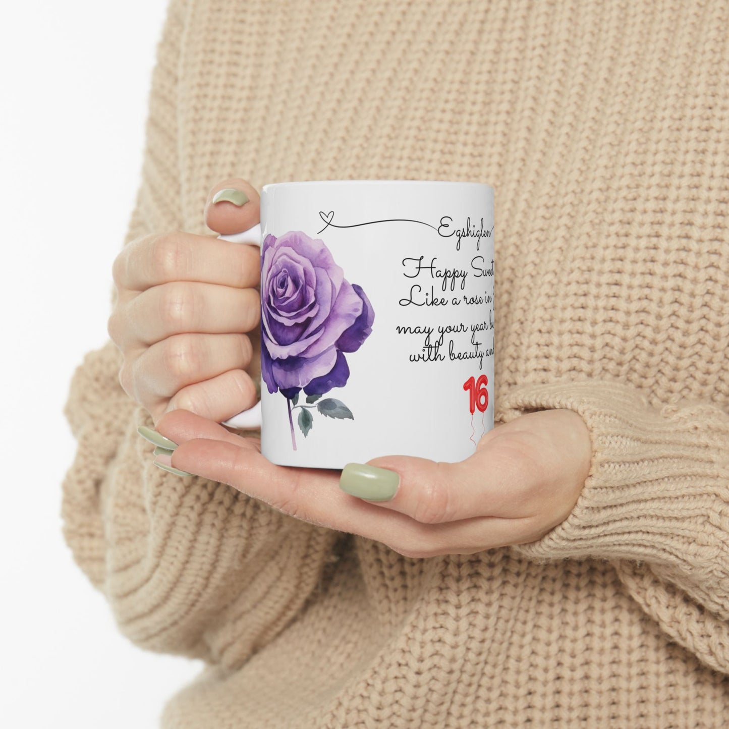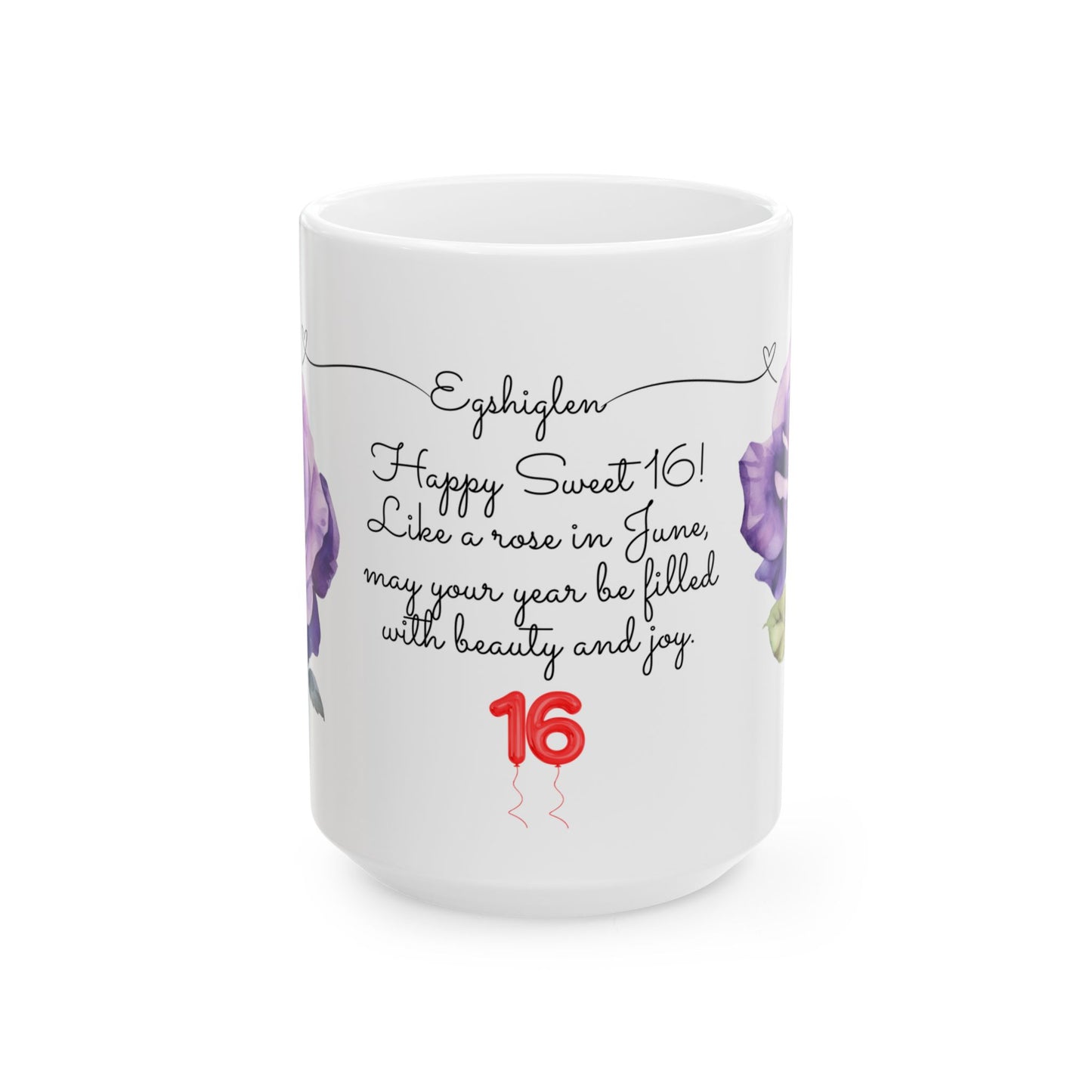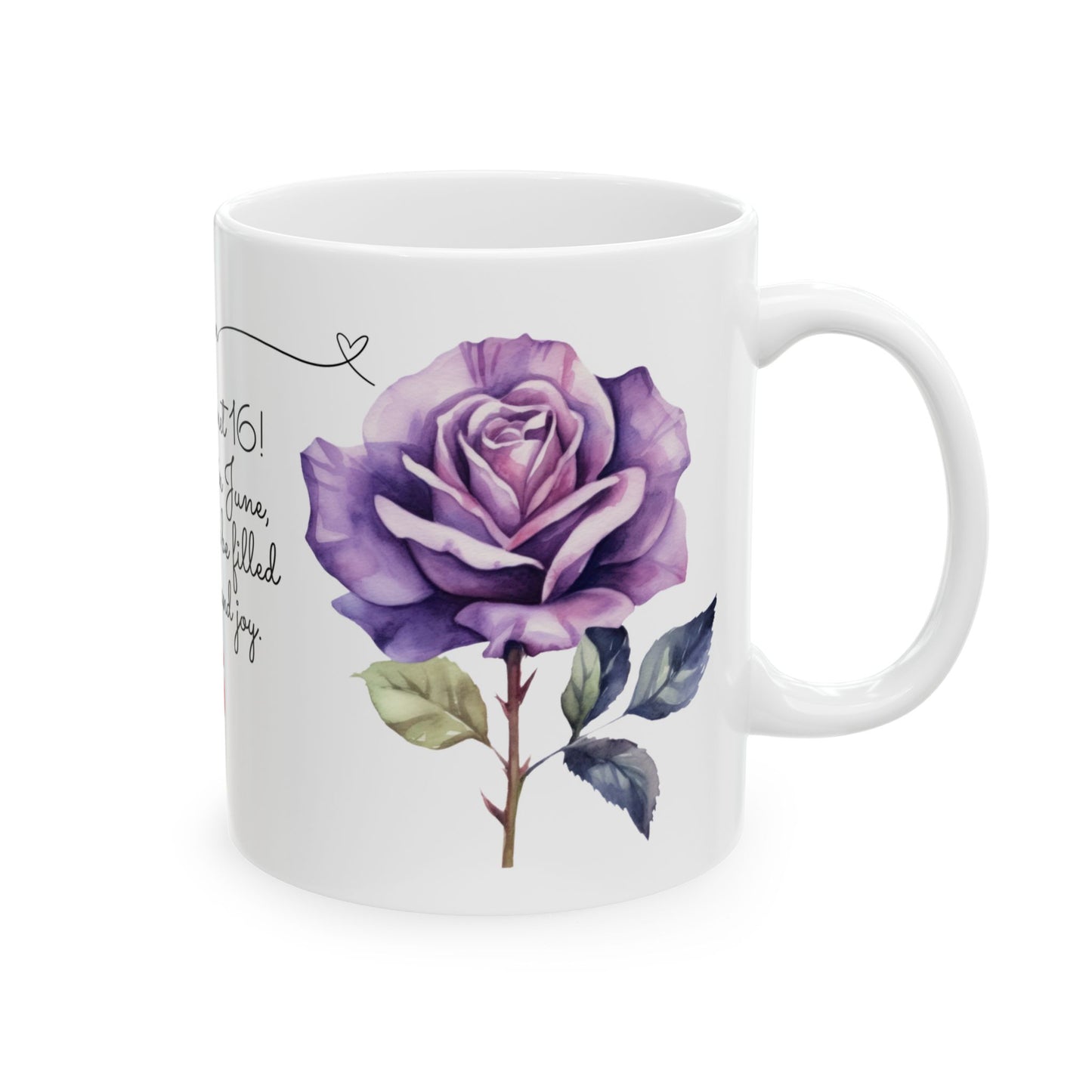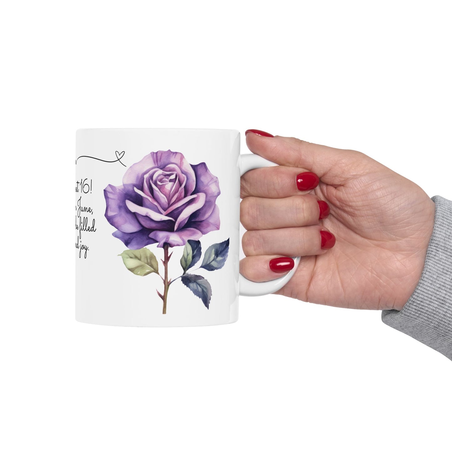 - Elegant Rose Design: Adorned with a stunning rose graphic symbolizing June, this mug captures the beauty and joy of turning 16.