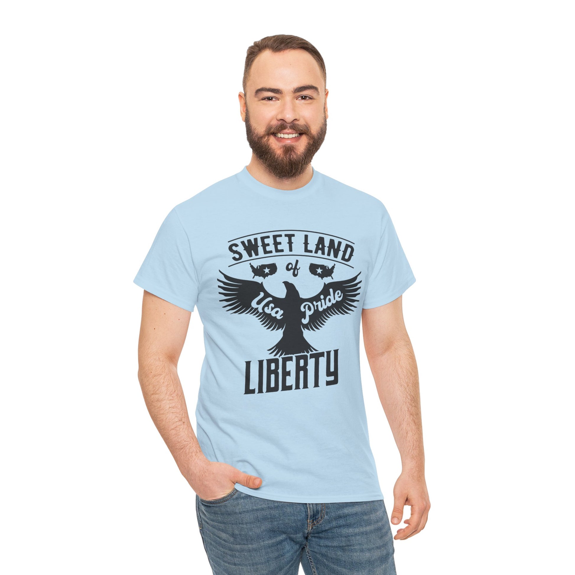 Sweet Land of Liberty Design, Unisex Heavy Cotton Tee: Patriotic T-shirt, Gift for Freedom Lovers, Casual Wear, Independence Day Shirt - 13492