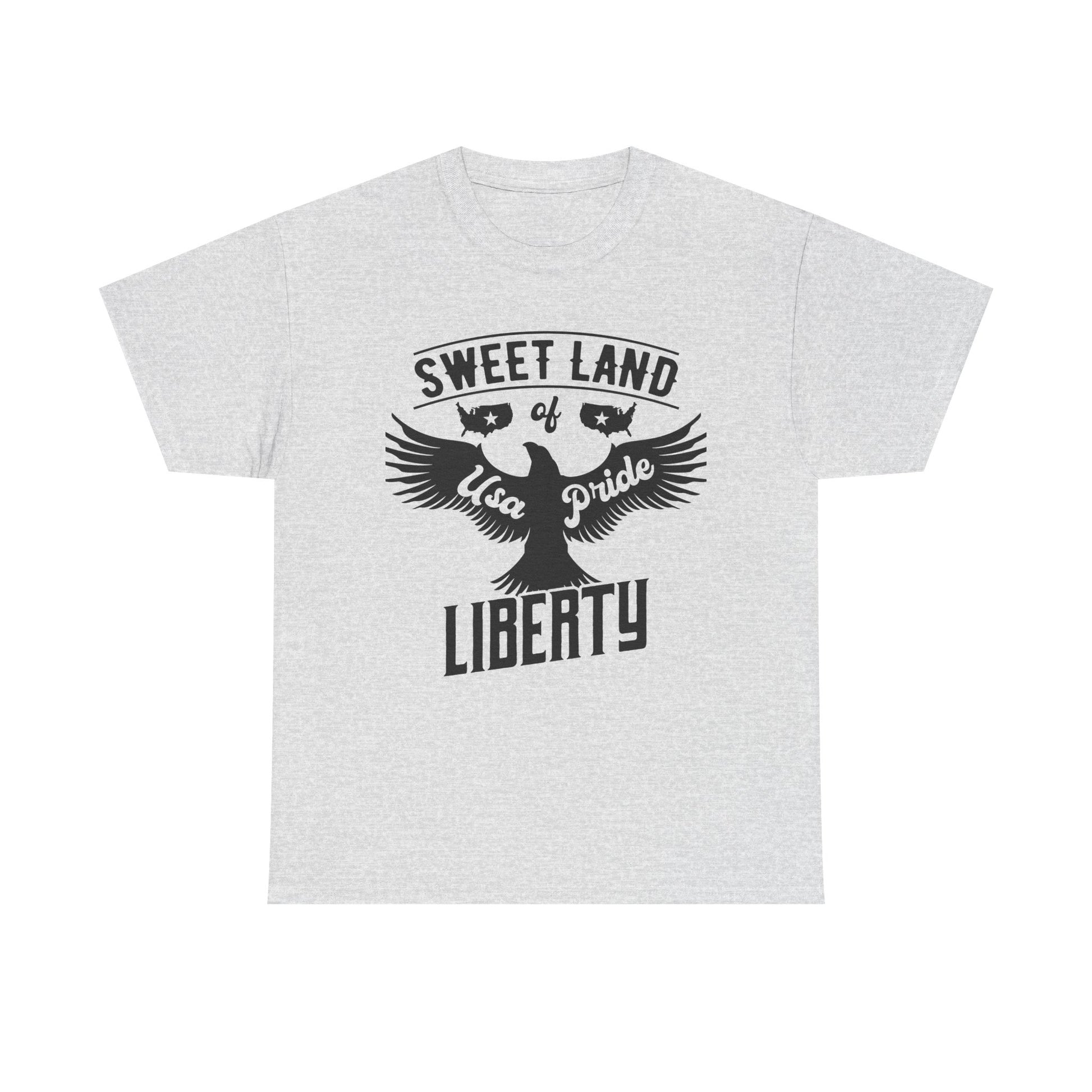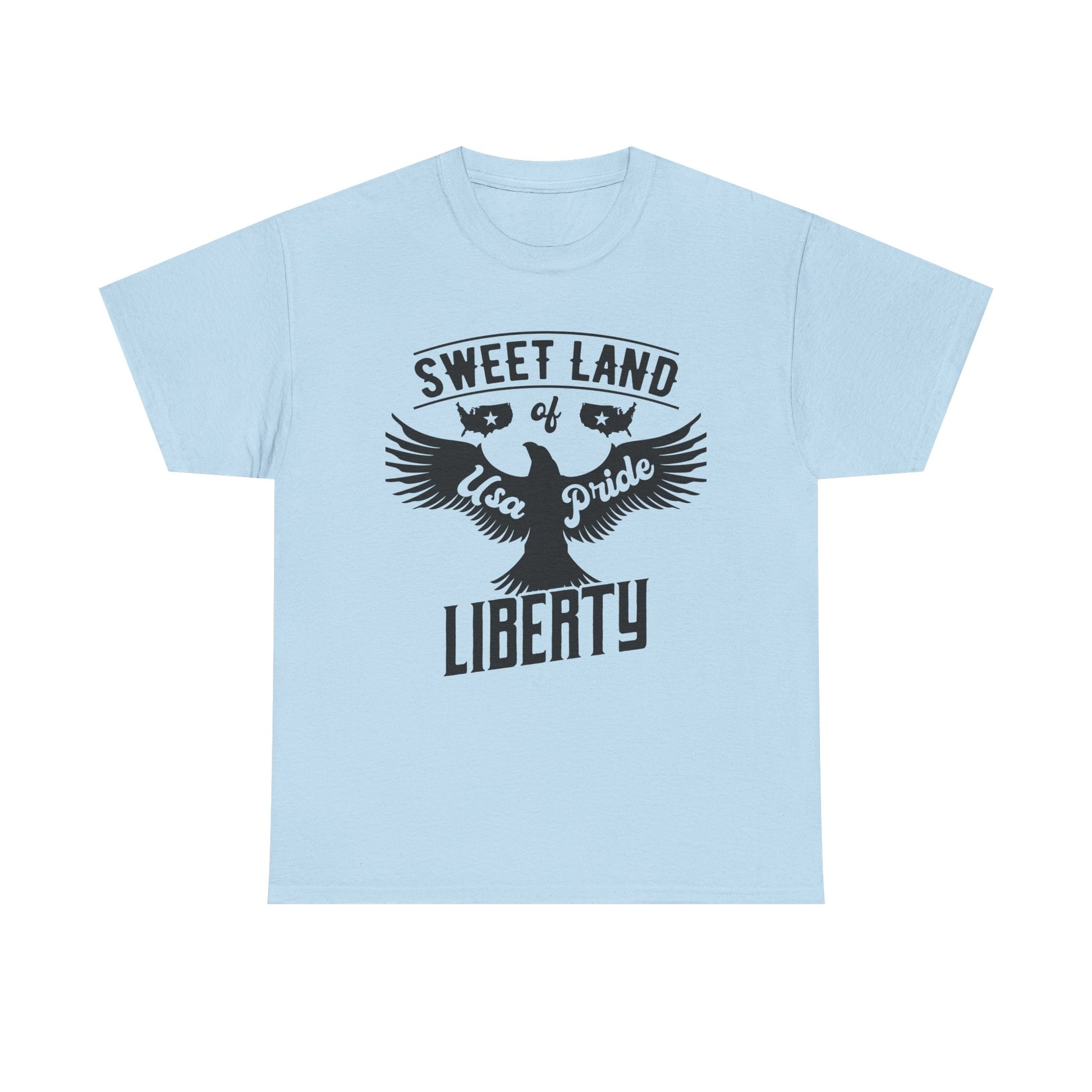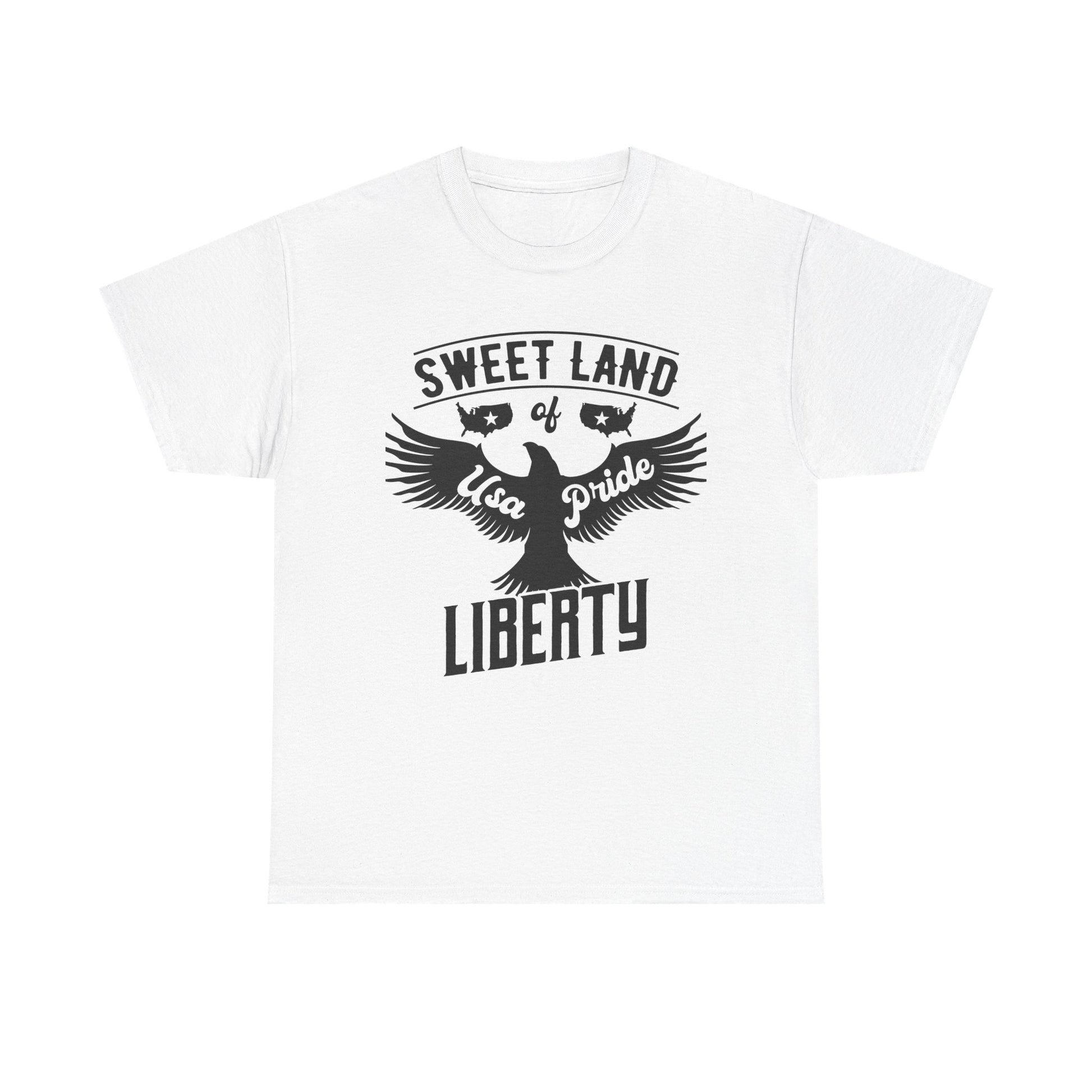 Show your love for the red, white, and blue with our Sweet Land of Liberty T-shirt. Made from durable heavy cotton, this unisex tee is perfect for backyard BBQs, fireworks, parades, or everyday casual wear. With its bold patriotic design, it's a timeless tribute to freedom, perfect for Independence Day and beyond.