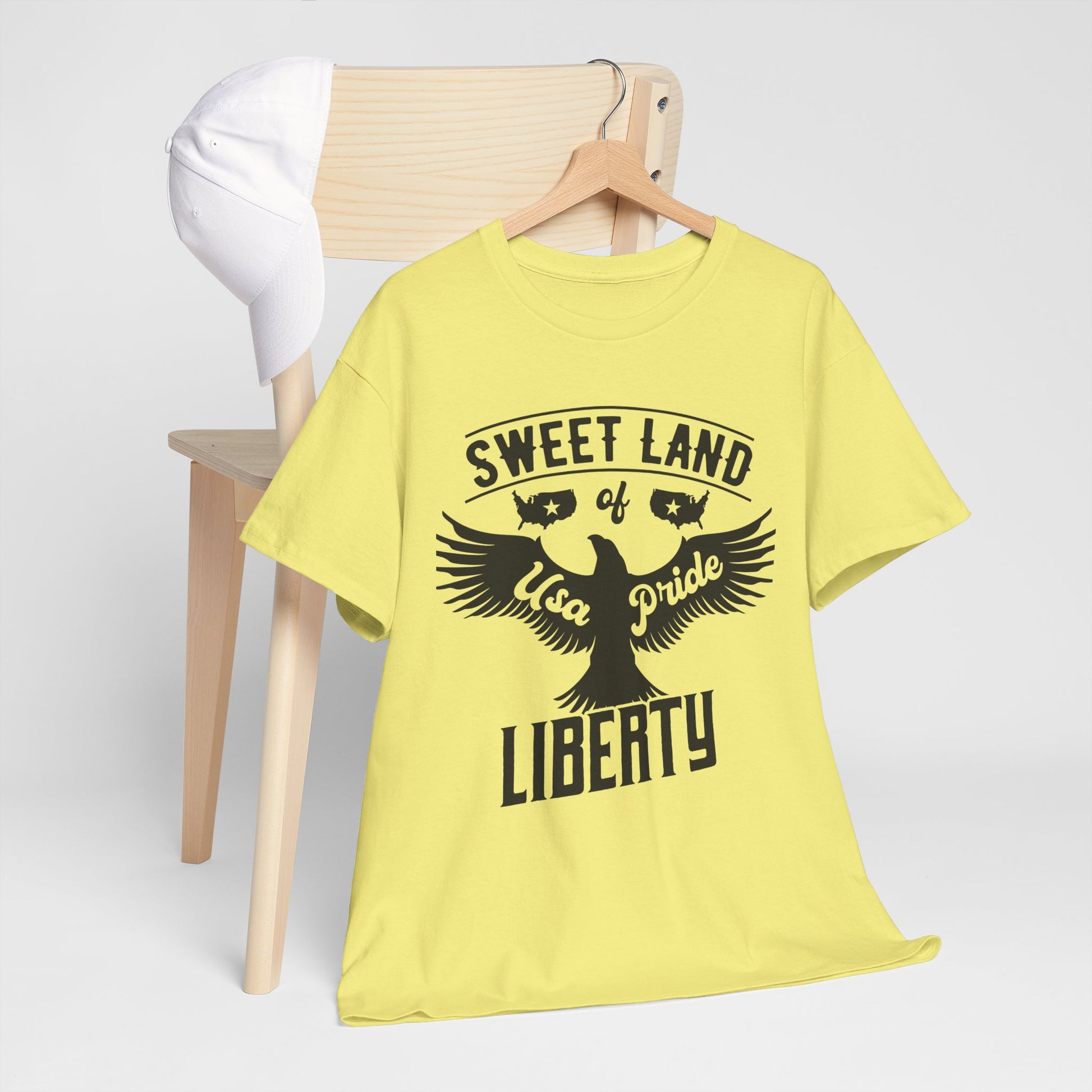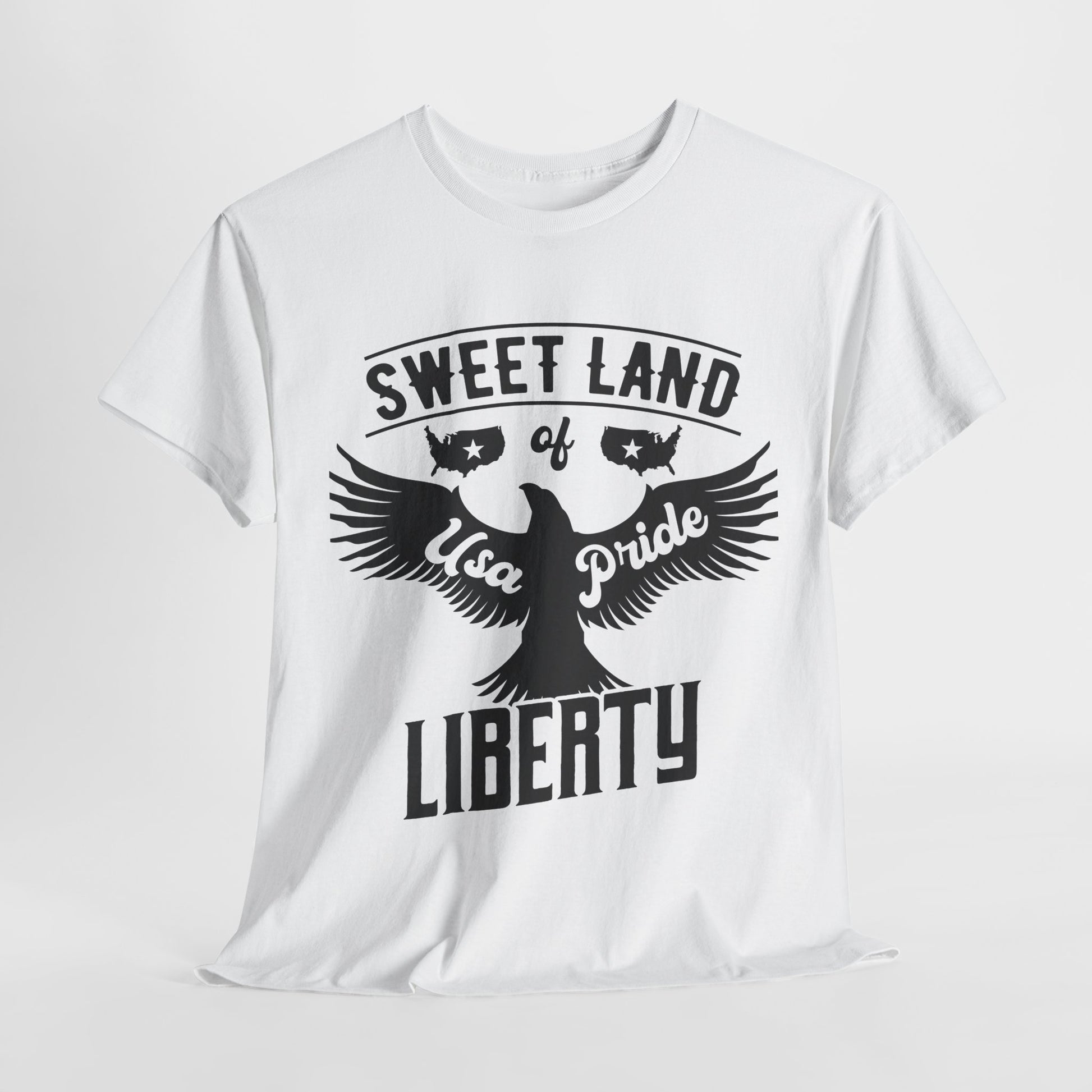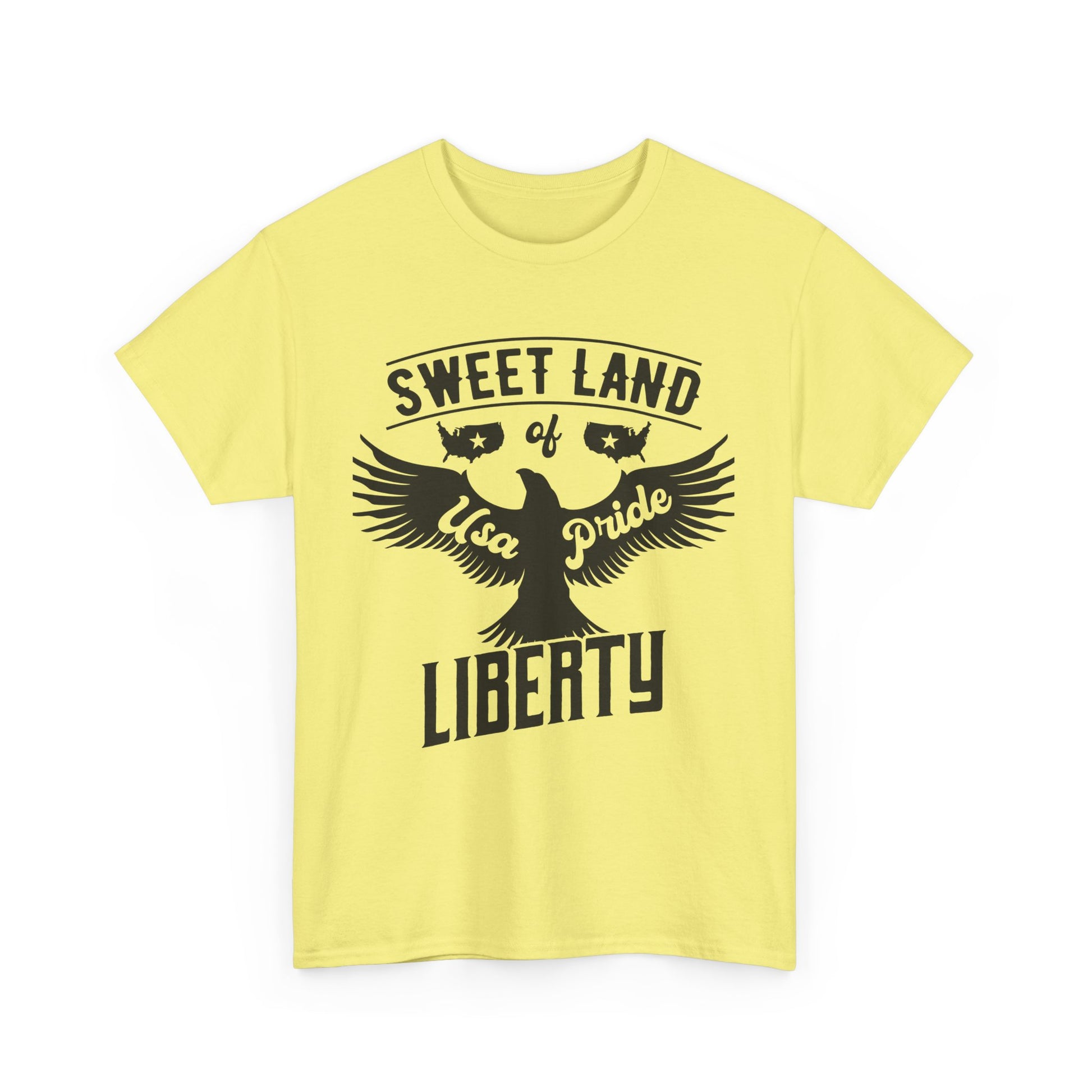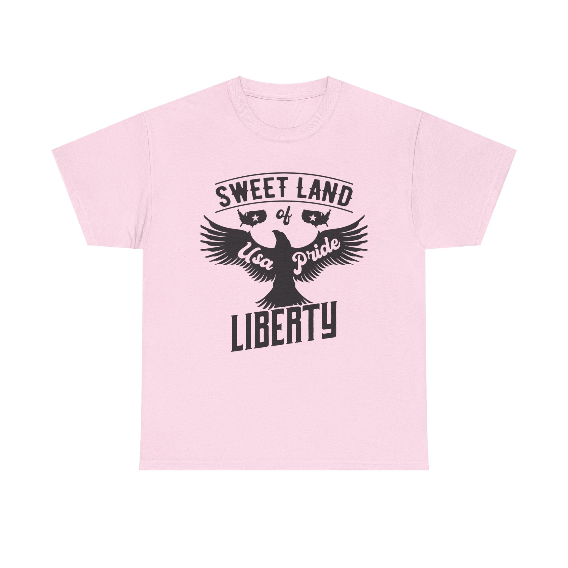 Show your love for the red, white, and blue with our Sweet Land of Liberty T-shirt. Made from durable heavy cotton, this unisex tee is perfect for backyard BBQs, fireworks, parades, or everyday casual wear. With its bold patriotic design, it's a timeless tribute to freedom, perfect for Independence Day and beyond.