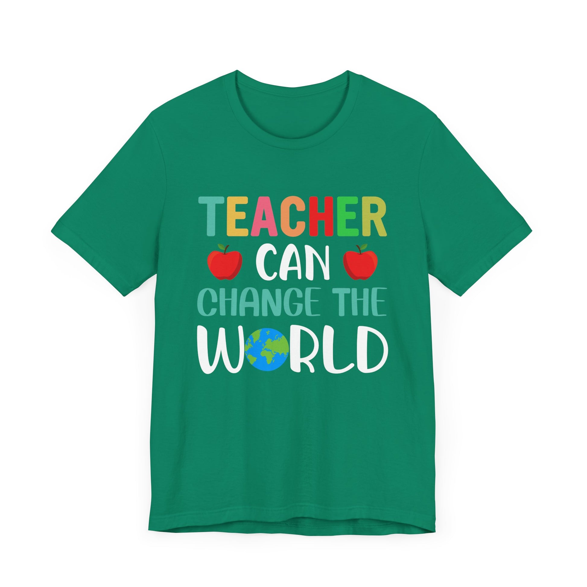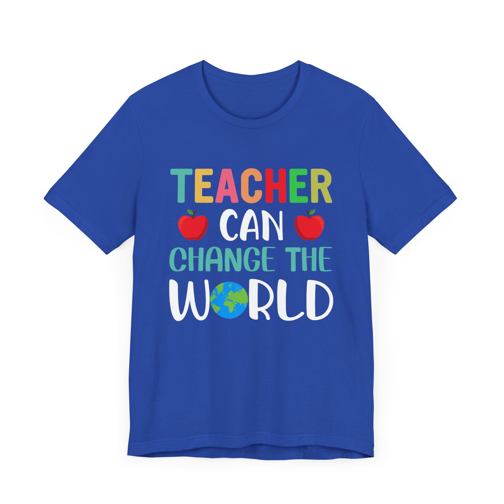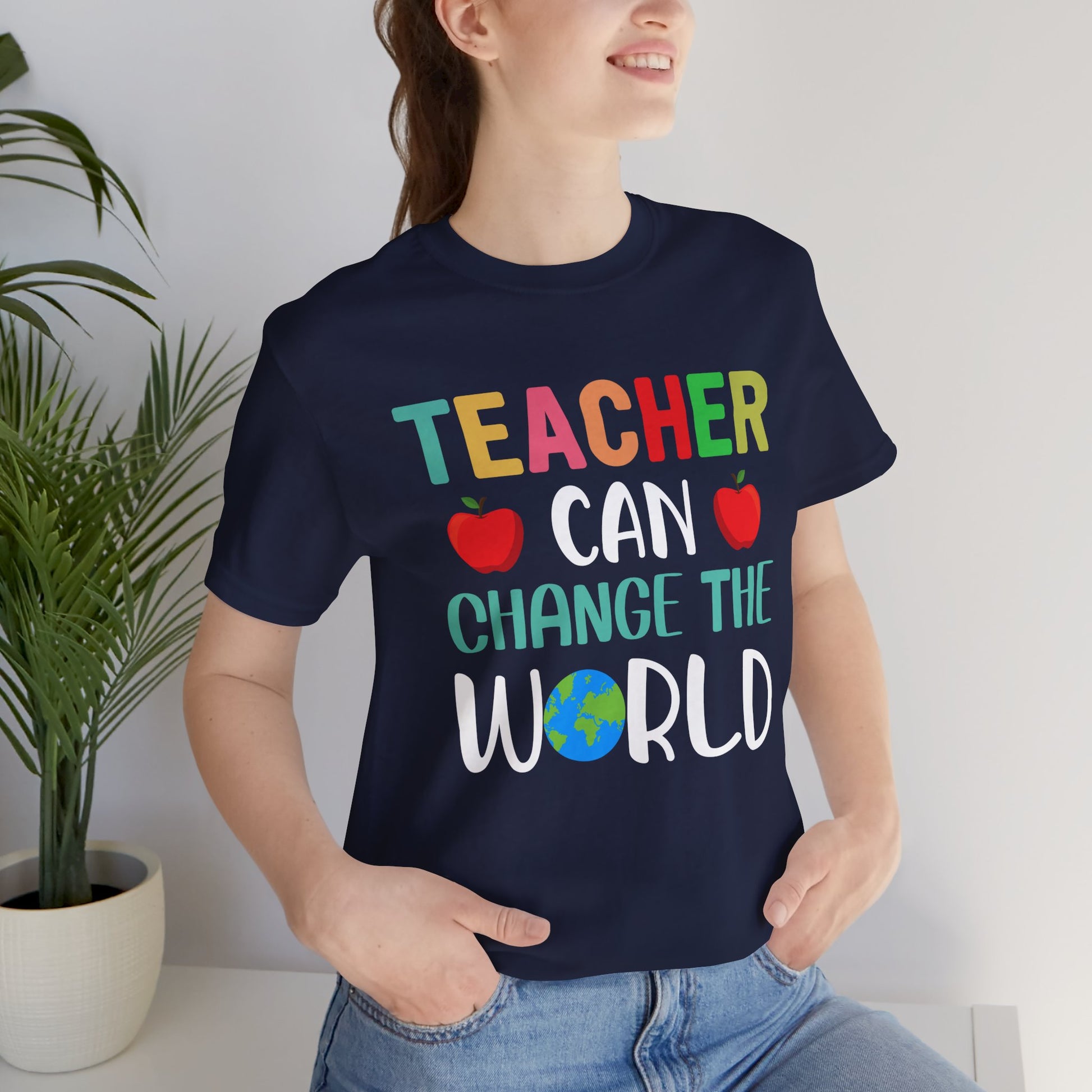 - Inspirational Design: Featuring the empowering phrase "Teacher Can Change The World," this tee highlights the significant role teachers play in influencing and inspiring their students.