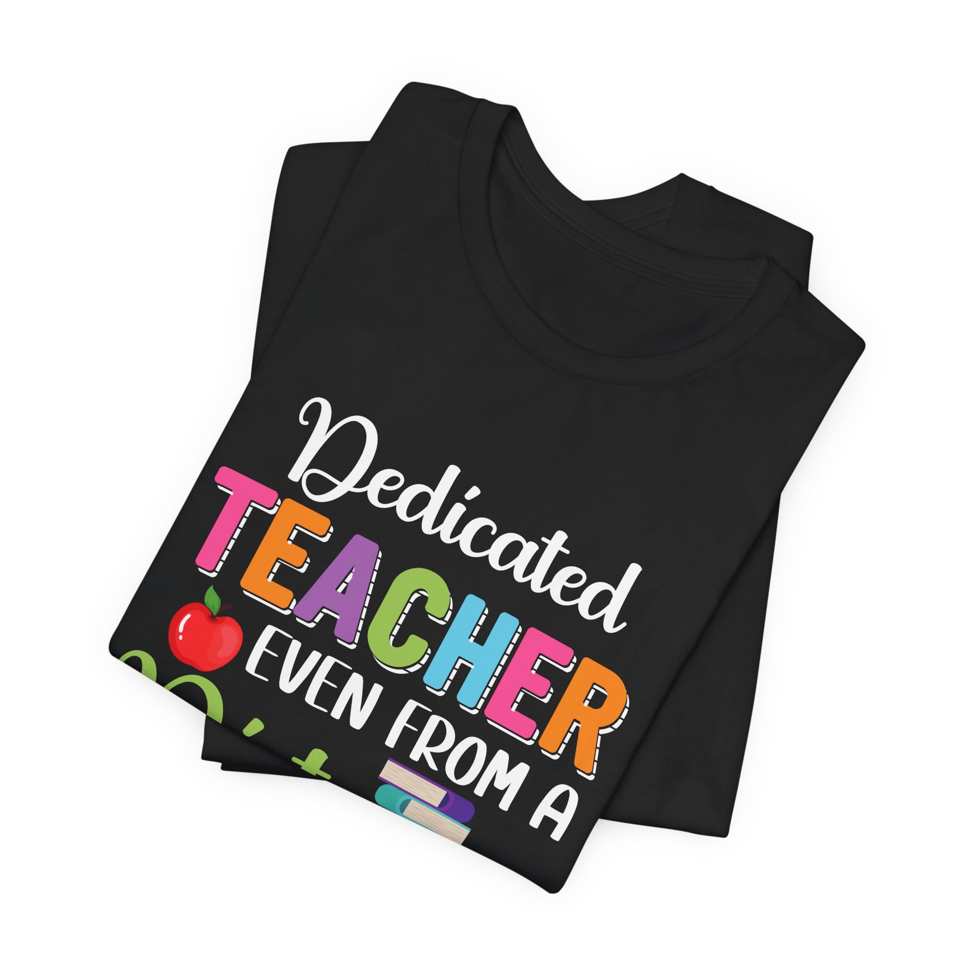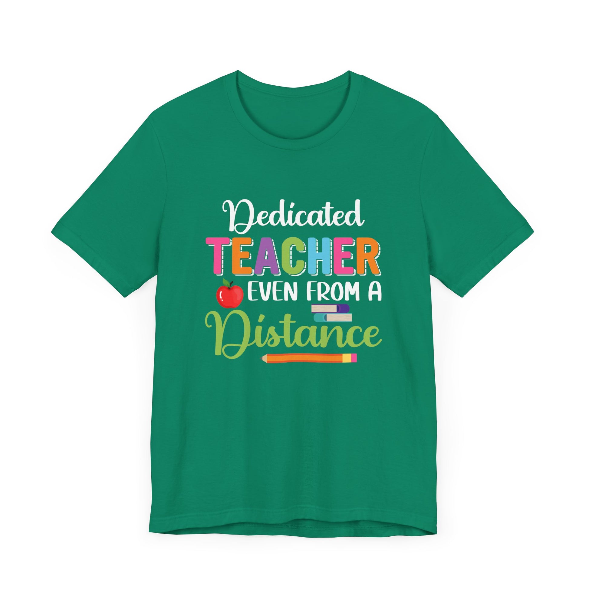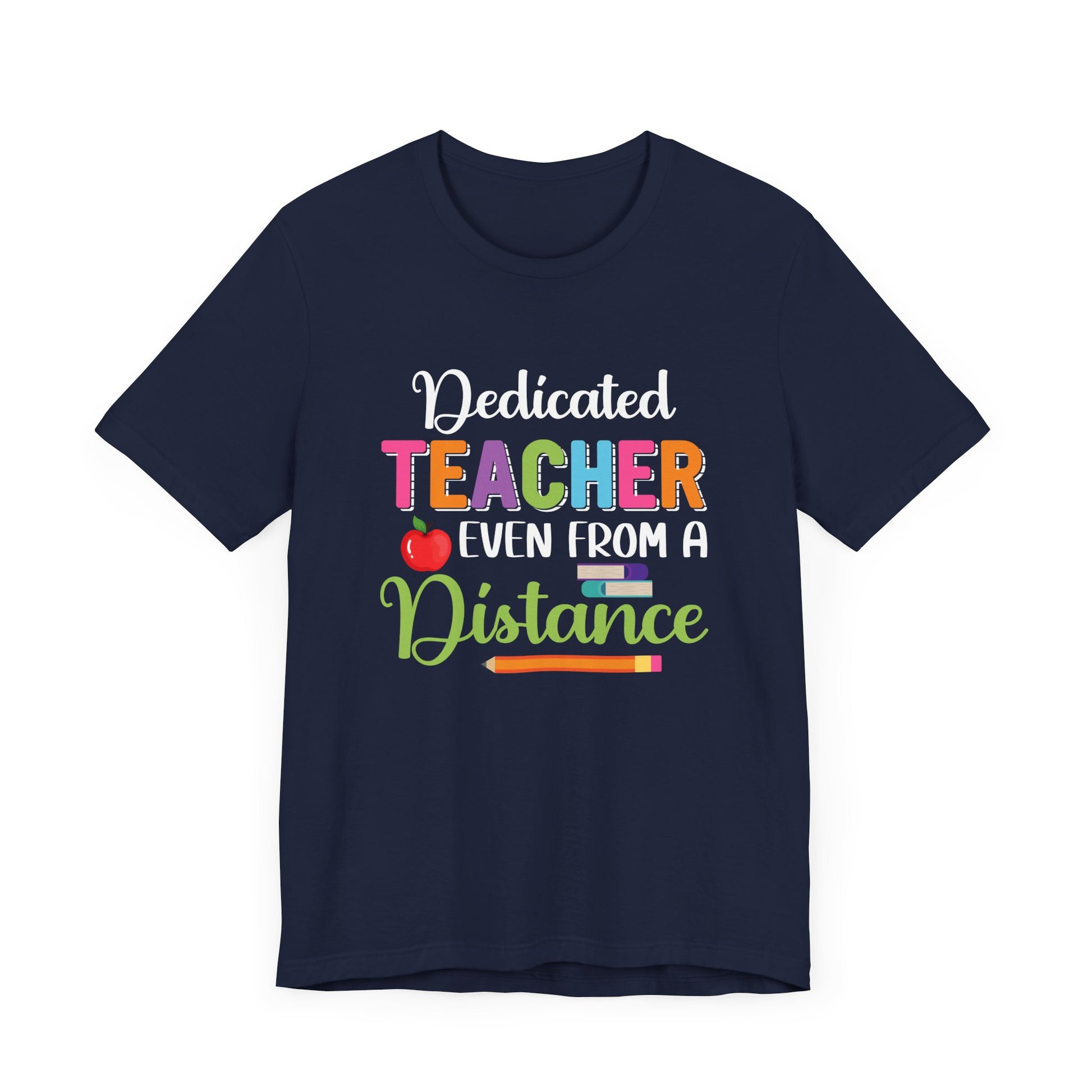 - Inspirational Design: Featuring the phrase "Dedicated Teacher Even From A Distance," this tee beautifully captures the spirit of remote teaching.