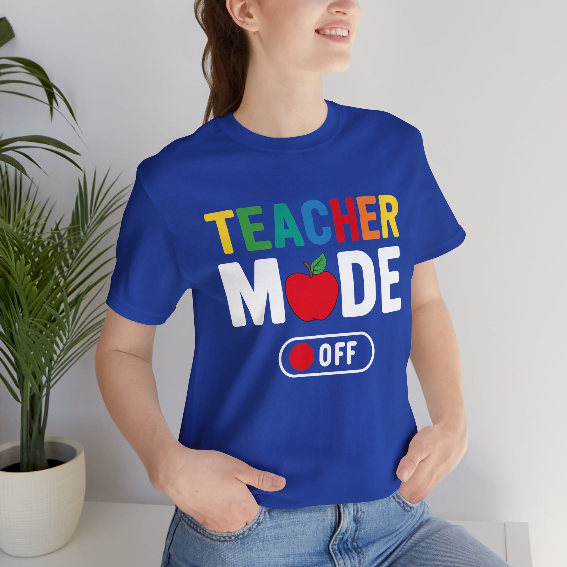 - Playful Design: Featuring the casual and humorous phrase "Teacher Mode Off," this tee is perfect for signaling that it’s time to step away from the classroom and enjoy some personal time.