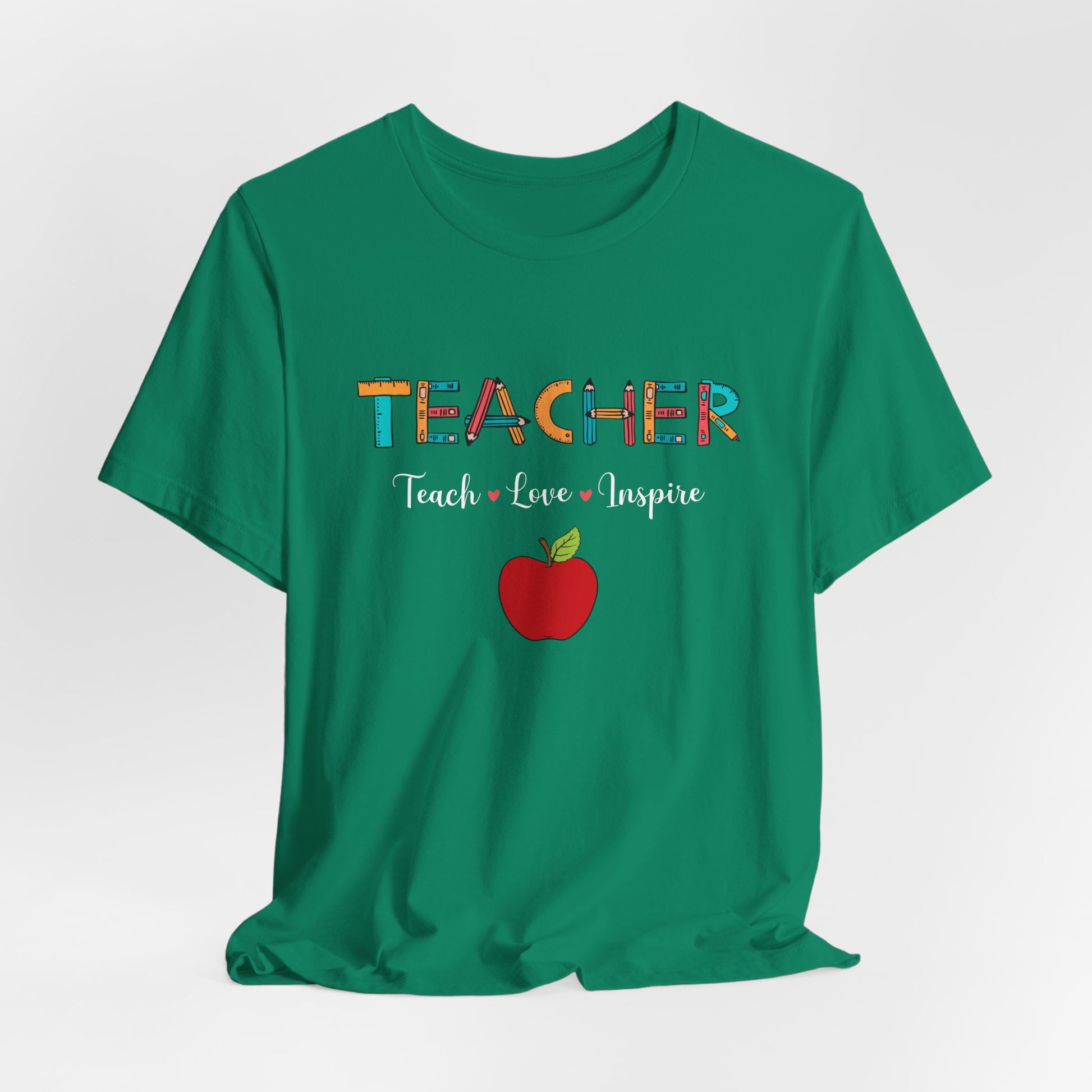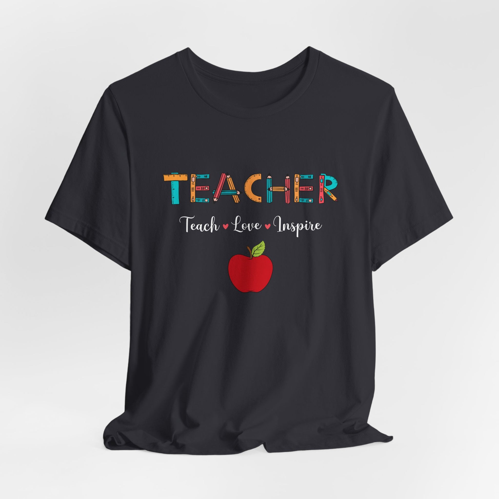 - Inspiring Design: Featuring the uplifting phrase "Teach, Love, Inspire," this tee highlights the essential roles that teaching, caring, and motivating play in education.