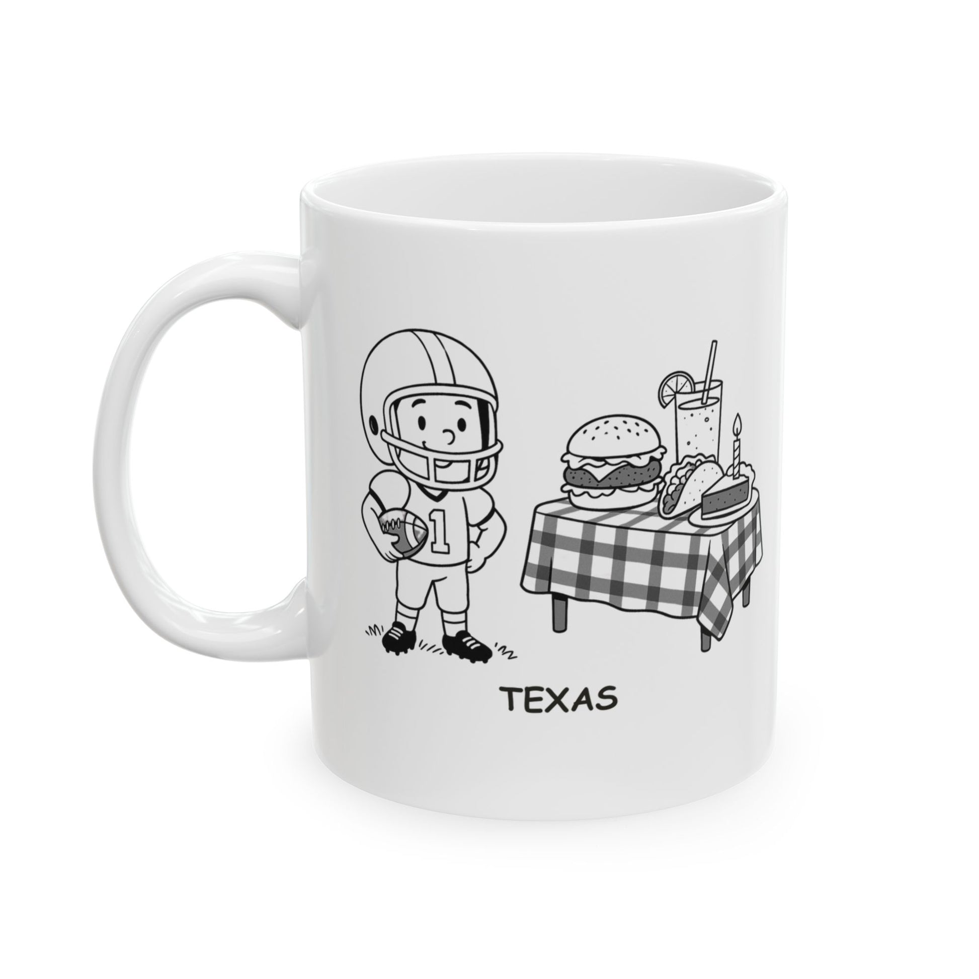 In Texas, Friday nights mean football, family, and unforgettable feasts. This ceramic mug celebrates the Lone Star State’s love for big games and even bigger meals. Whether you’re gearing up for kickoff or gathering around the table, this mug is perfect for your coffee, sweet tea, or any game-night beverage. Available in 11oz and 15oz sizes, it’s a great gift for proud Texans, sports fans, and anyone who believes every meal—and every victory—is a reason to celebrate.