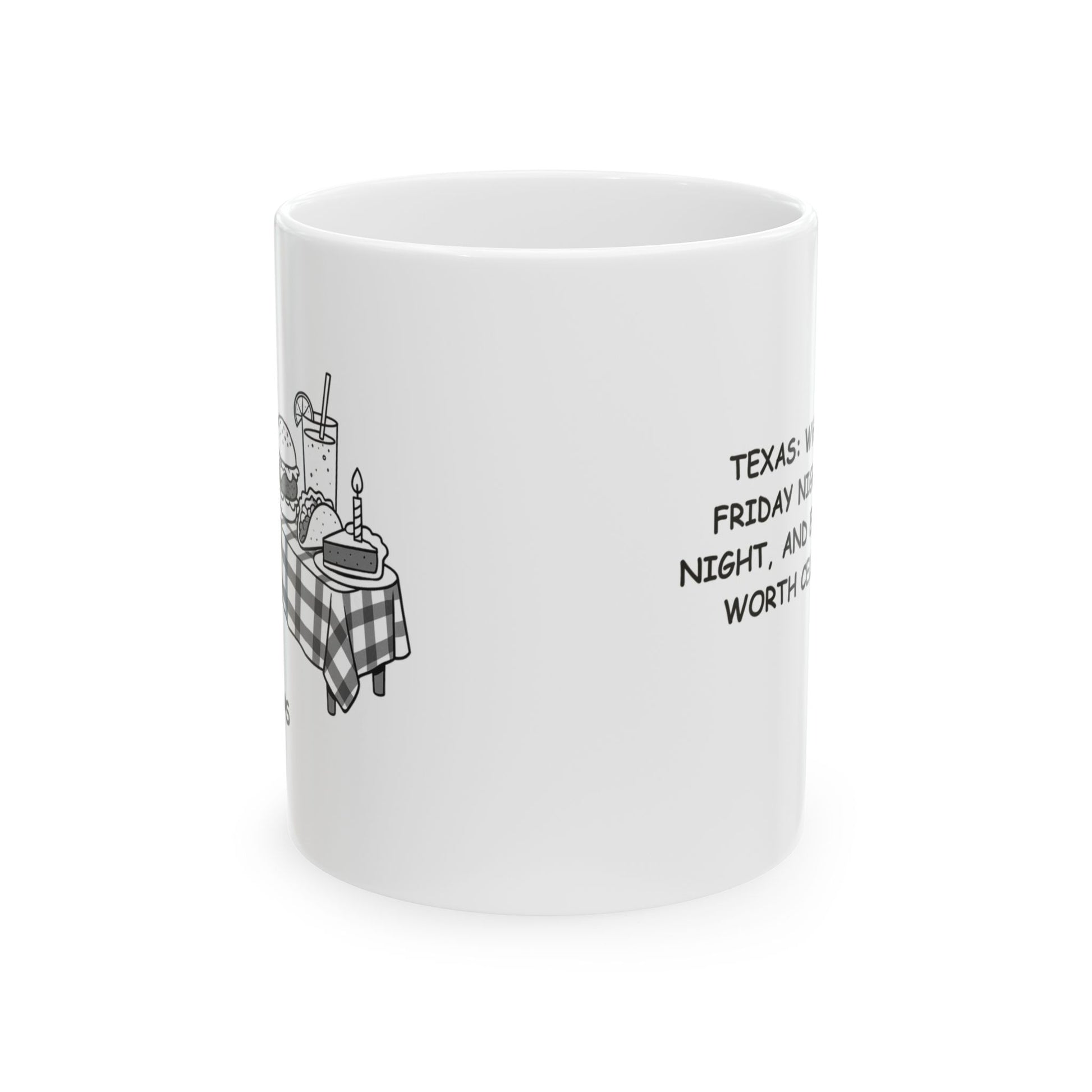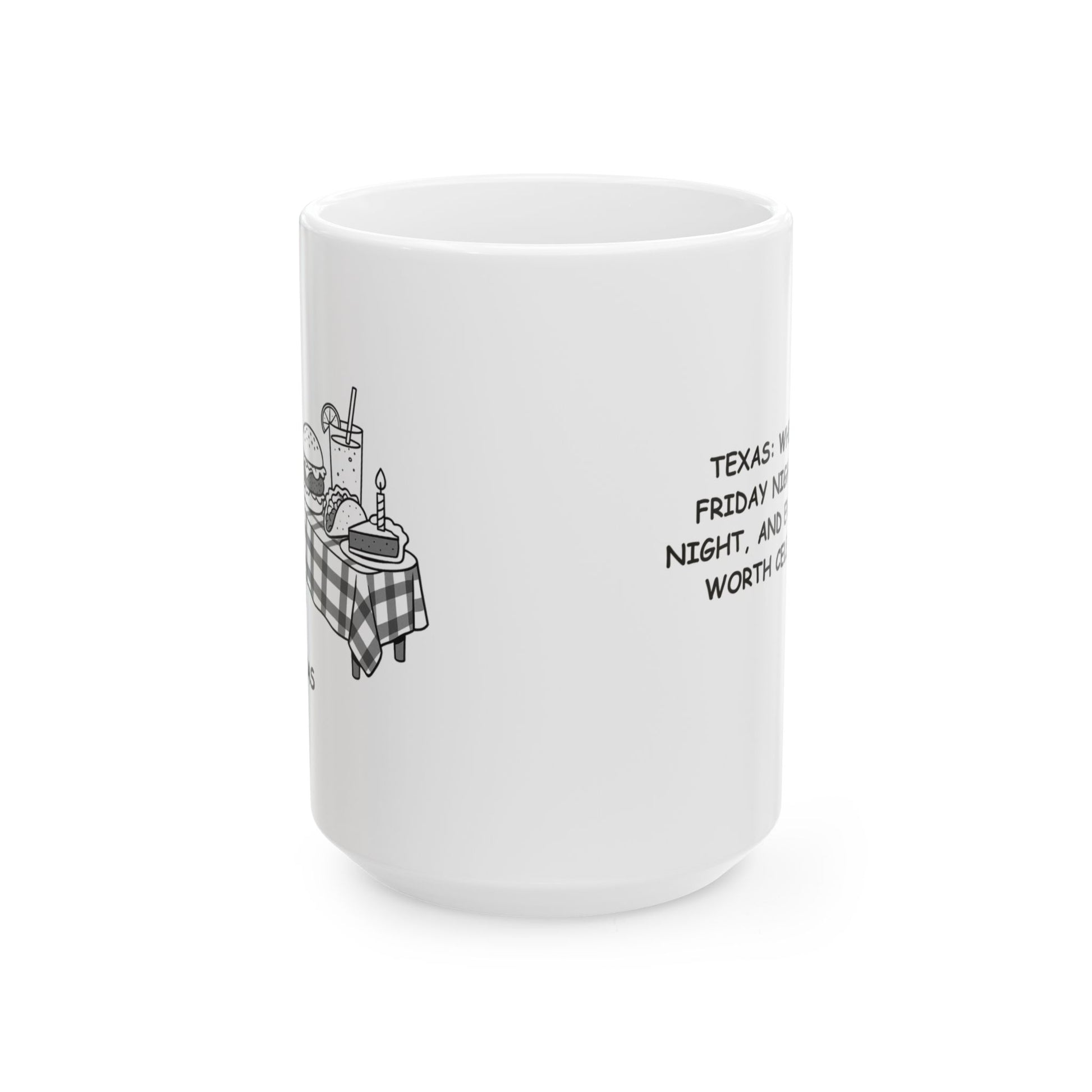 "Texas: Where every Friday night is game night, and every meal is worth celebrating." Ceramic Mug - 12765
